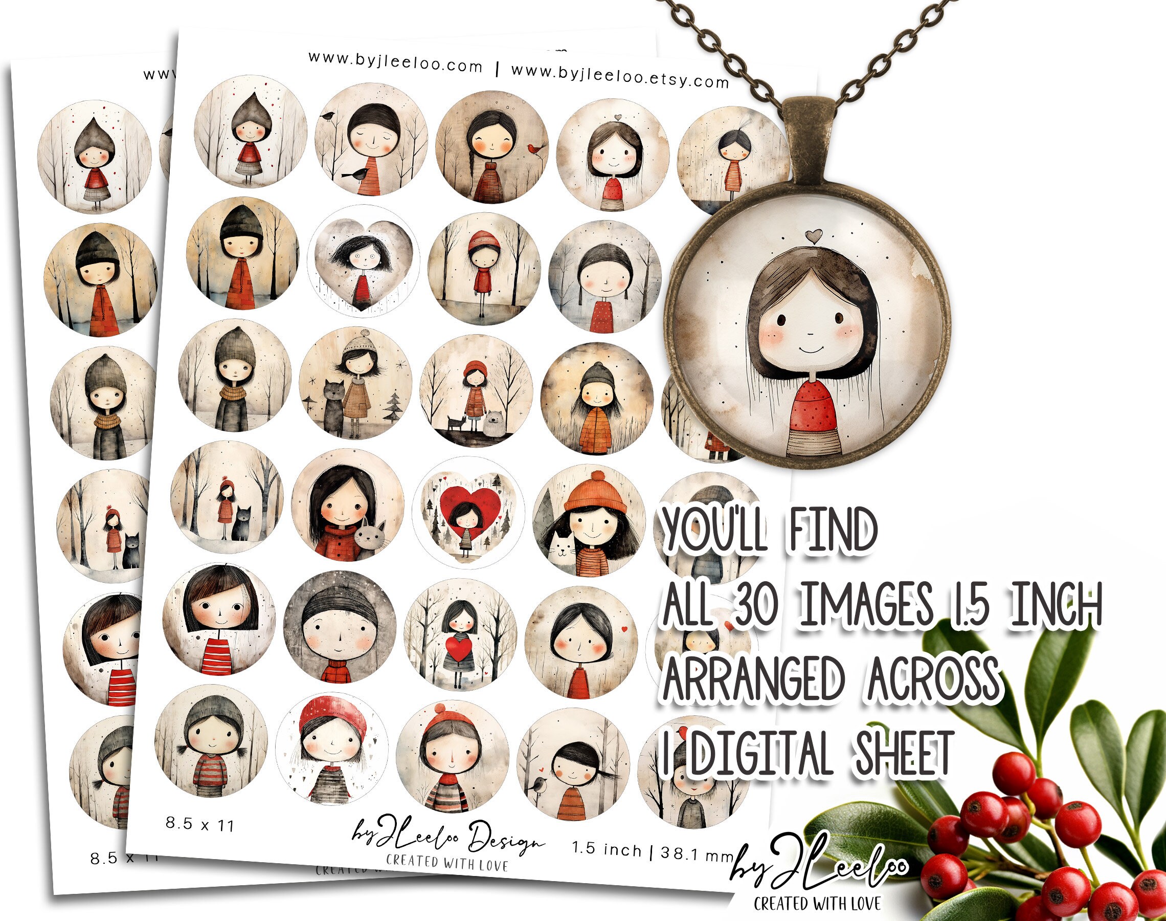 โ๏ธ Whimsical Winter Bliss Collection: Captivating, circular portraits of joyful Christmas girlsโperfect for jewelry, resin crafts, and festive decorations. โ๏ธ