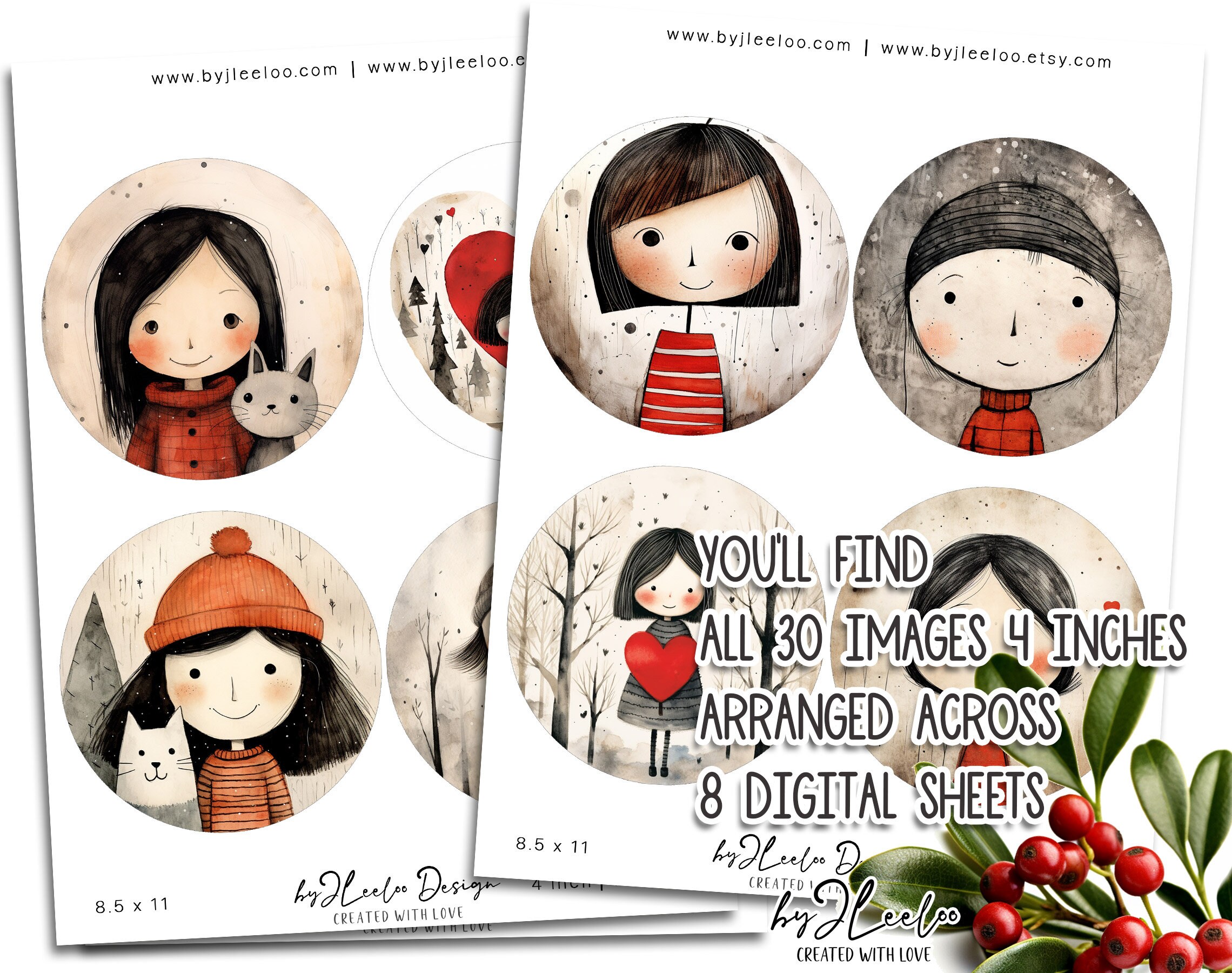 ๐ Welcome to Winter Blissโa collection of delightful circular portraits capturing the festive spirit of Christmas. These charming images, inspired by beloved artists, feature modern sketches and dynamic lines. Perfect for crafting unique jewelry and resin projects, they bring a touch of joy to your creations. Elevate your festive decor with these whimsical illustrations or infuse playfulness into your scrapbooking and journaling. Let Winter Bliss be the heartwarming companion to your creative endeavors, adding a sprinkle of holiday magic to every project. ๐