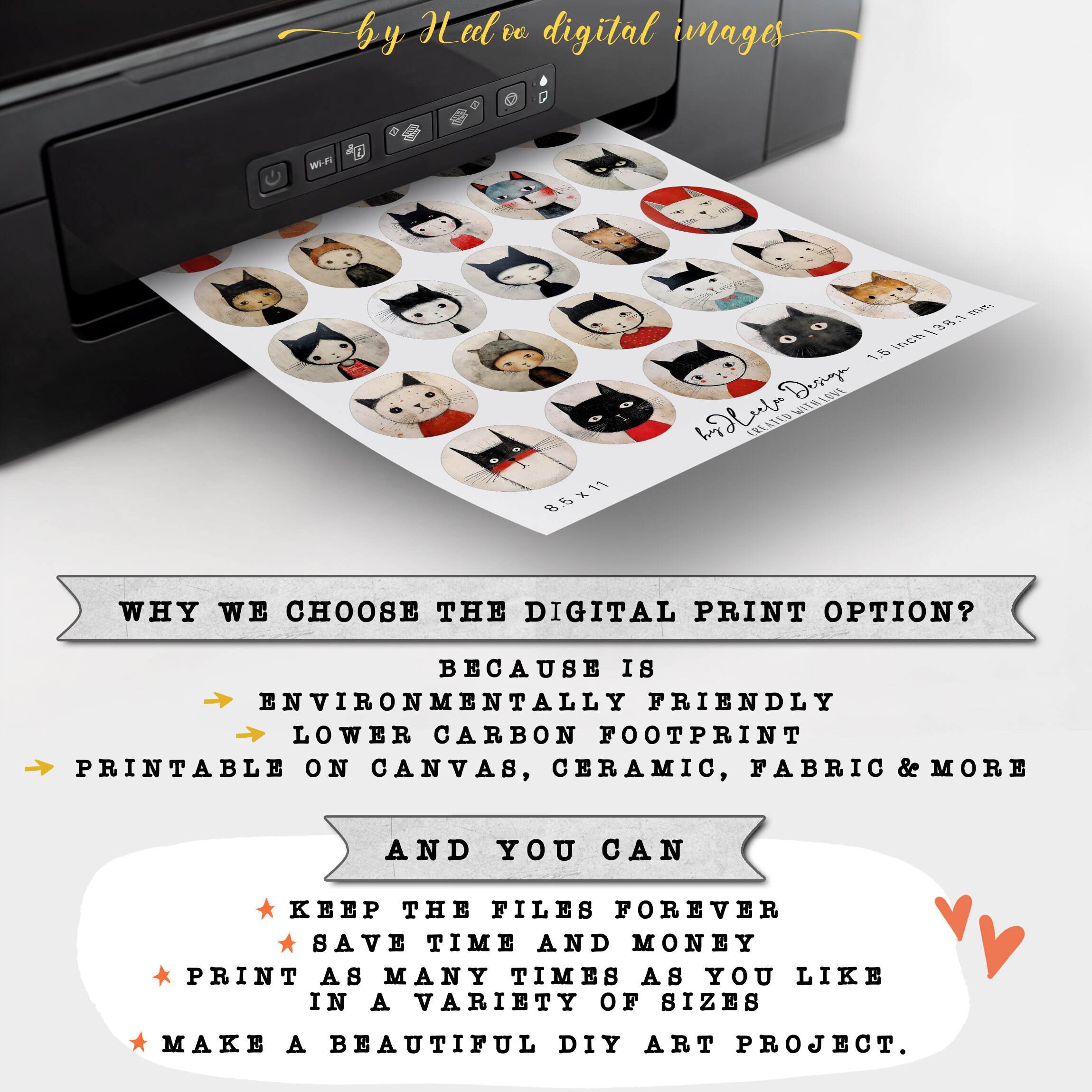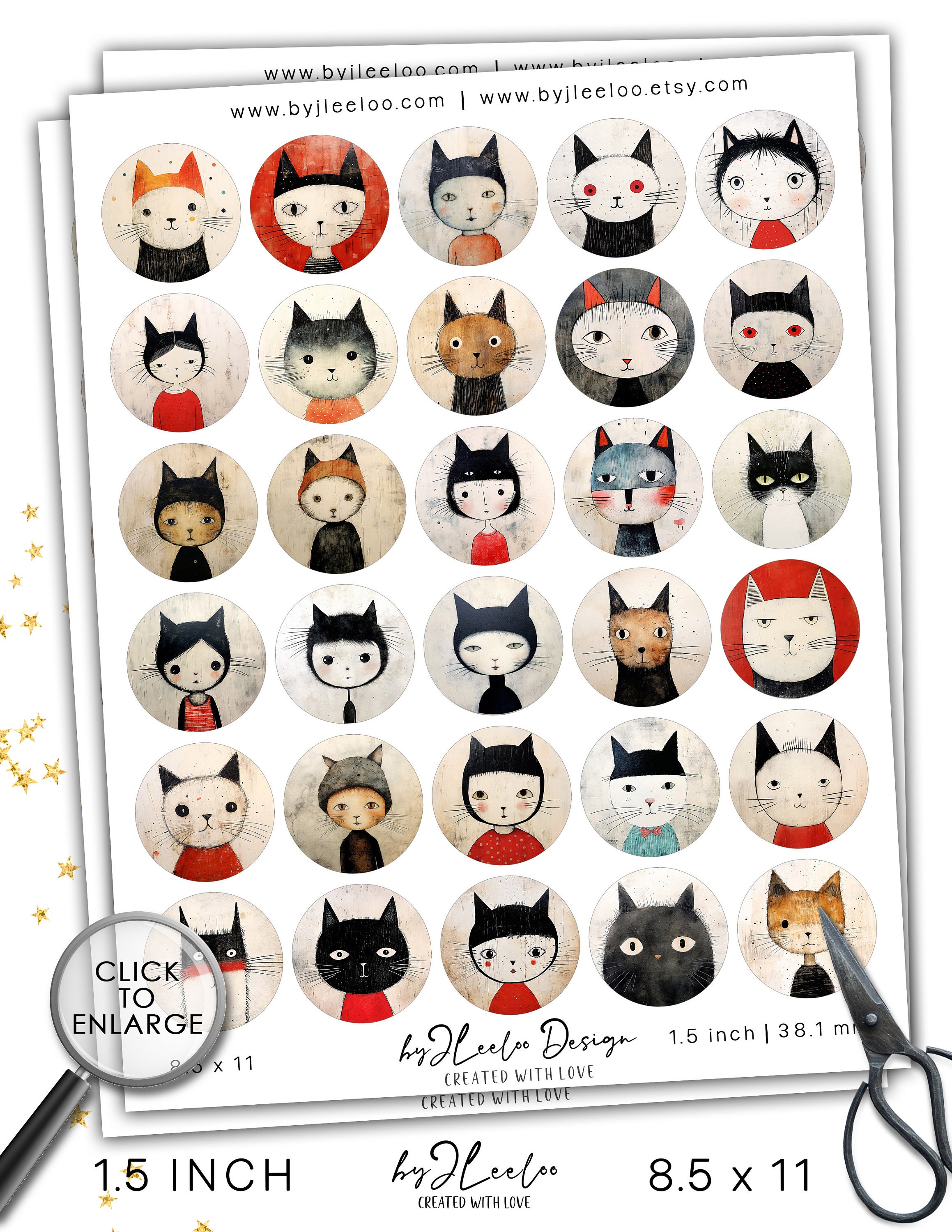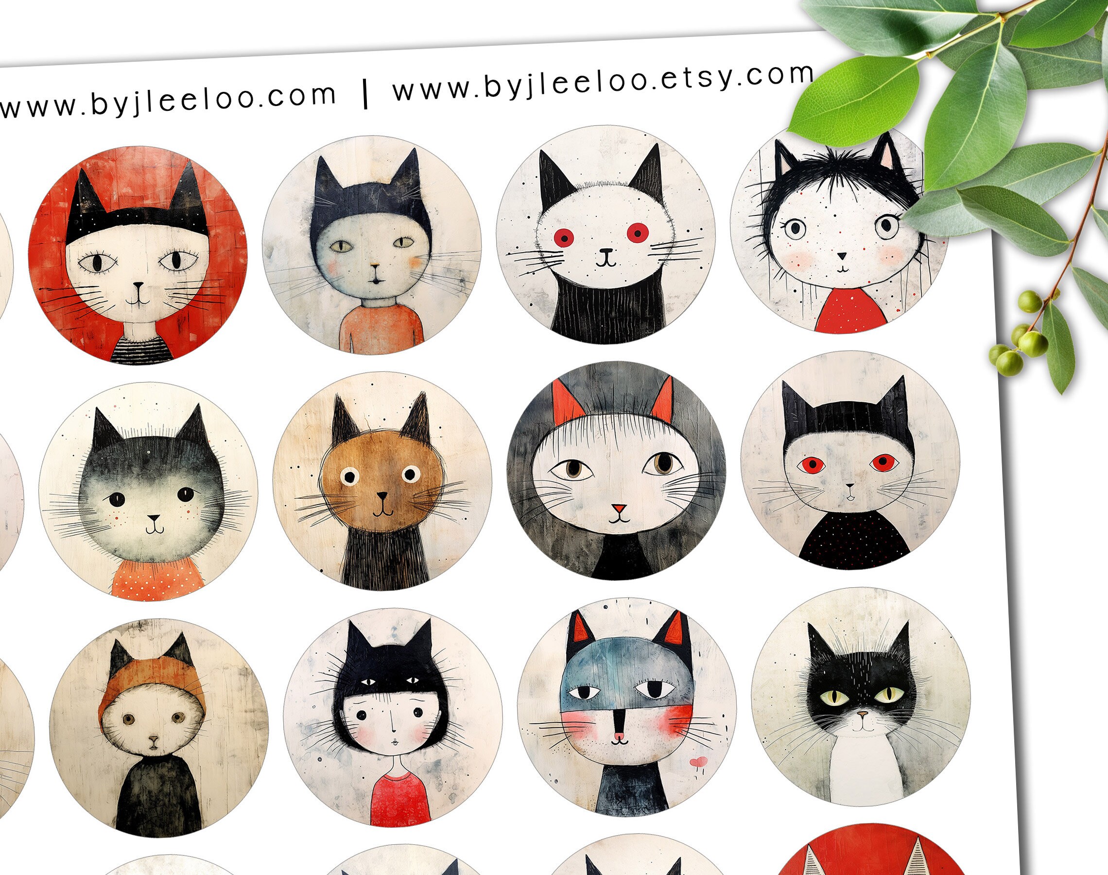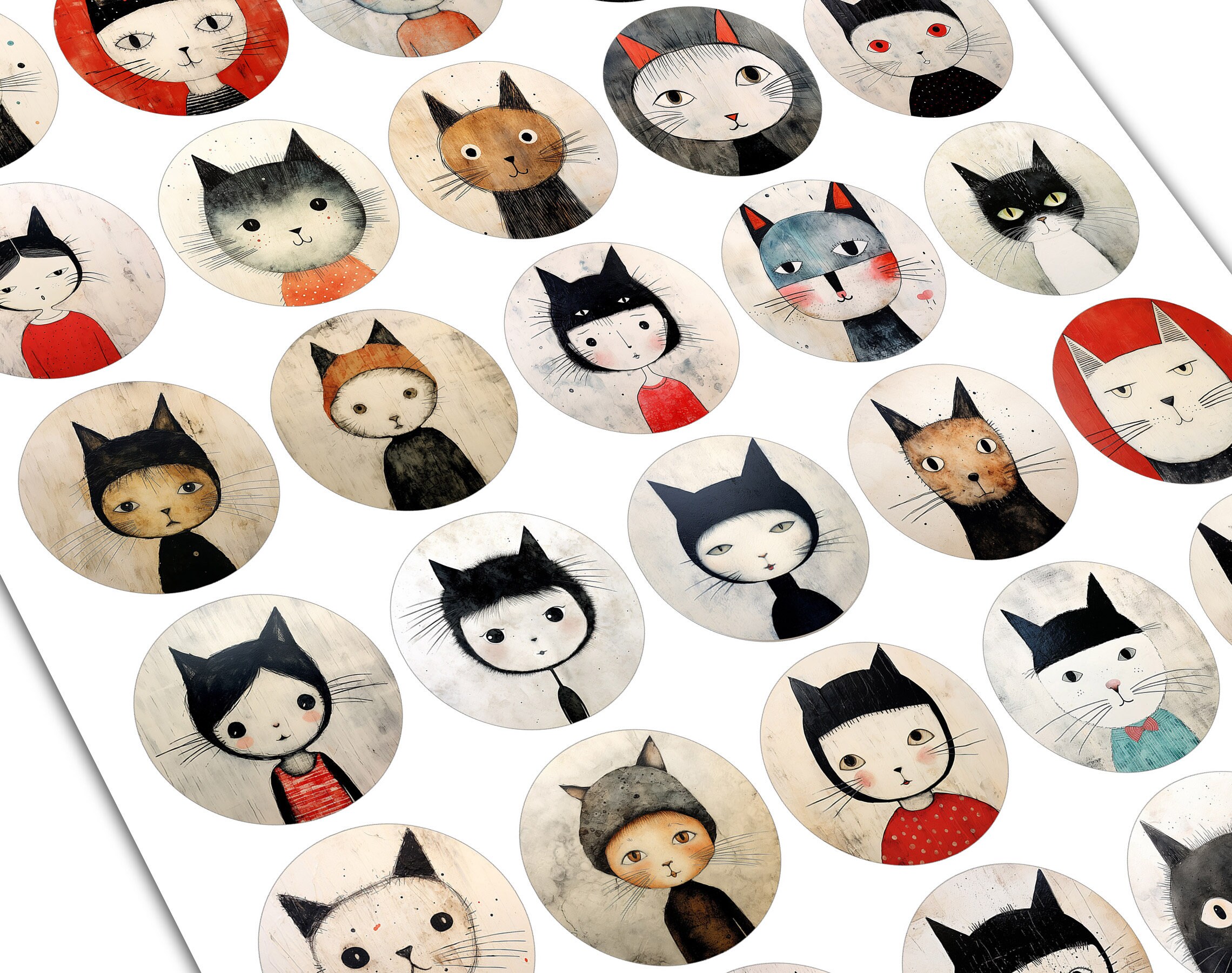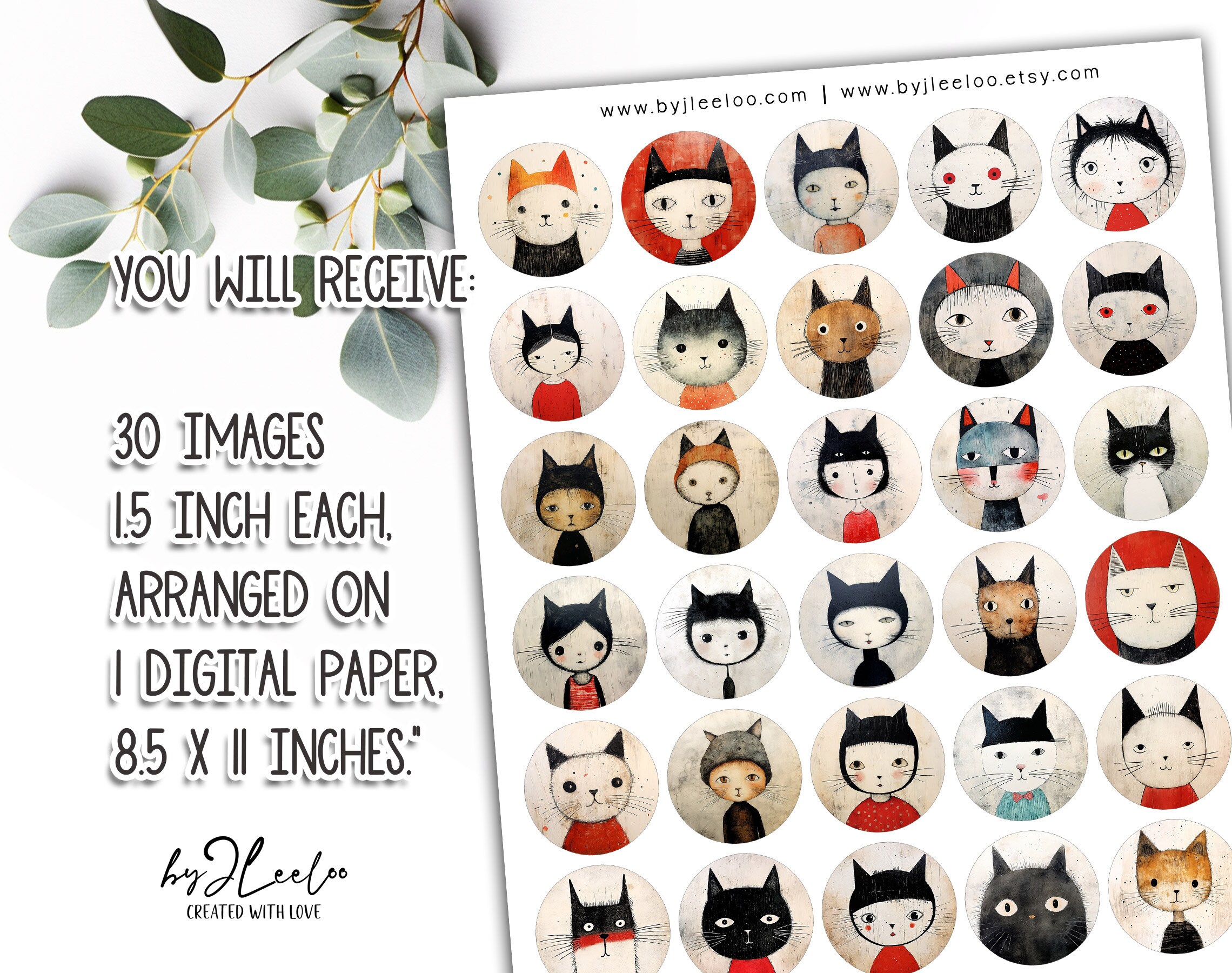 ๐ Discover WHIMSICAL CATS, delightful round images featuring minimalistic kids cat faces. Ideal for jewelry, resin crafts, festive decor, scrapbooking, and playful journaling labels.