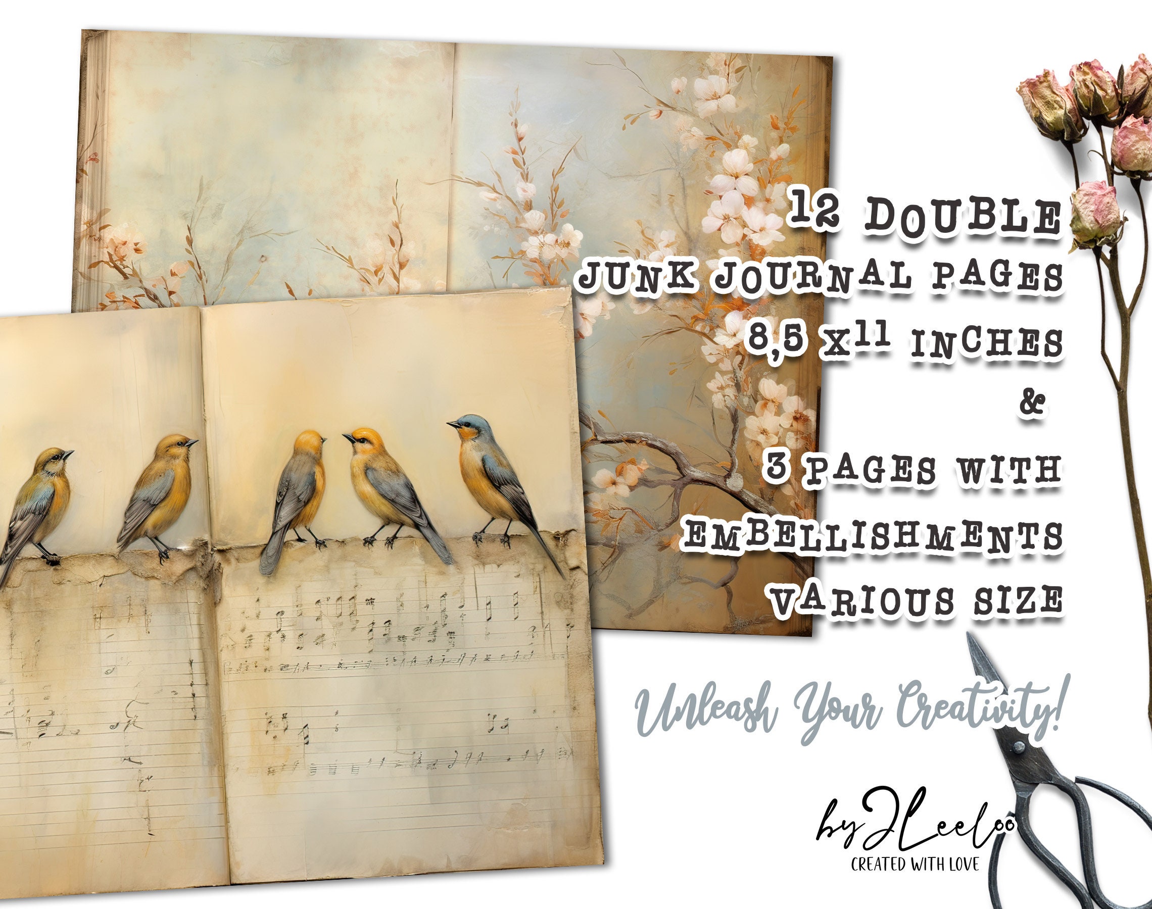 12 junk journal blank pages | double pages in 8,5 x 11 inch paper