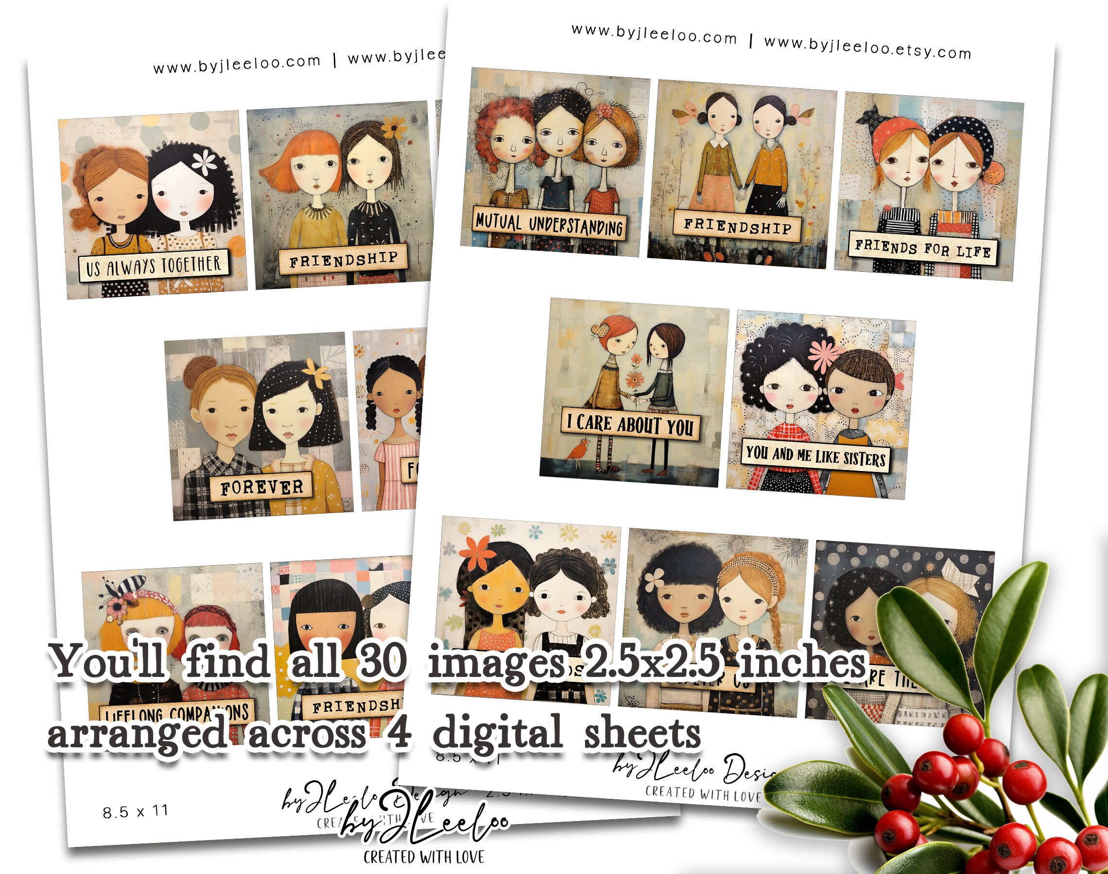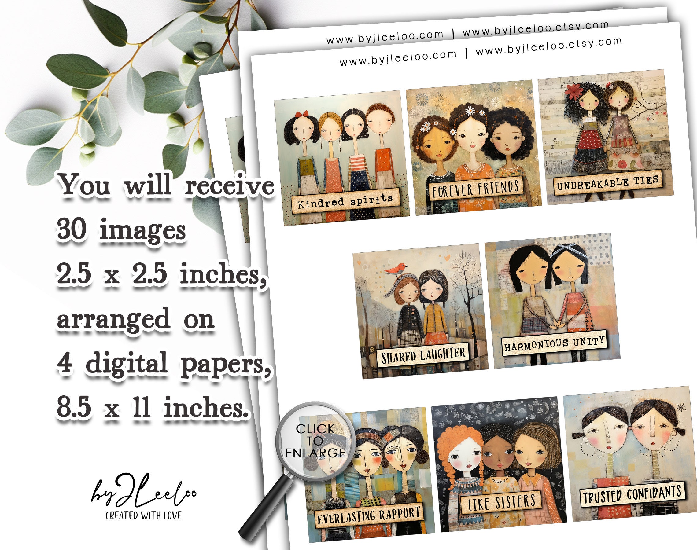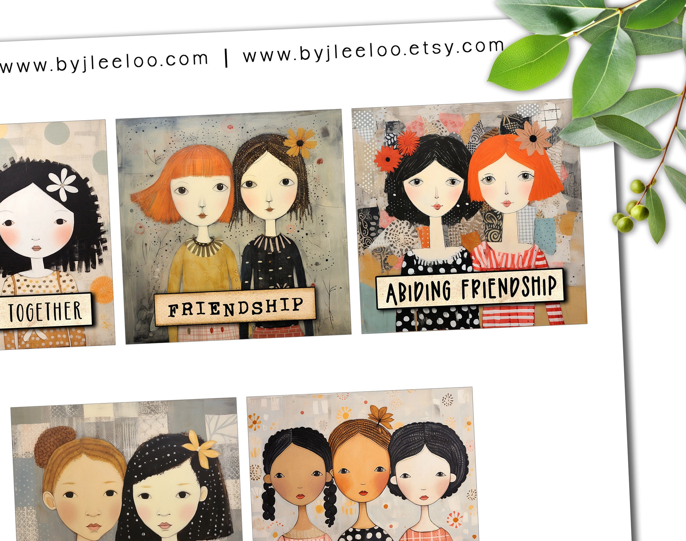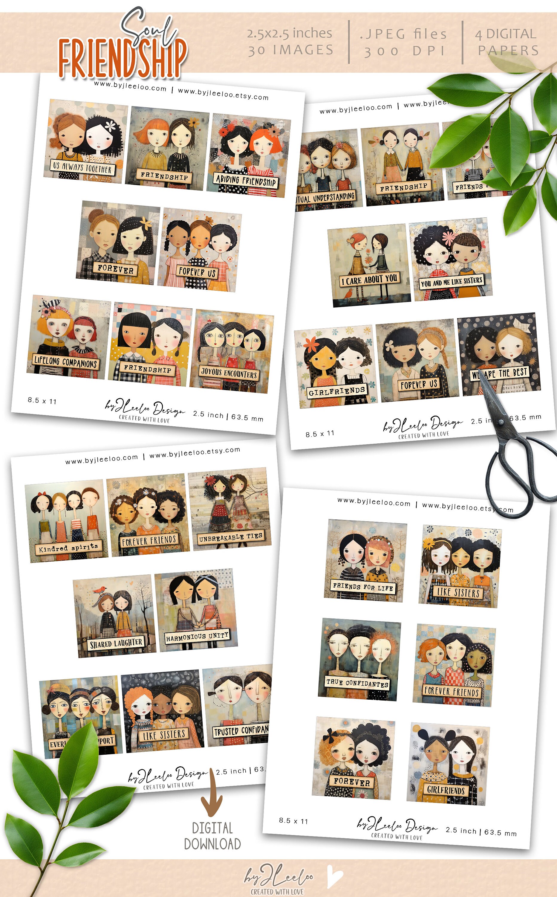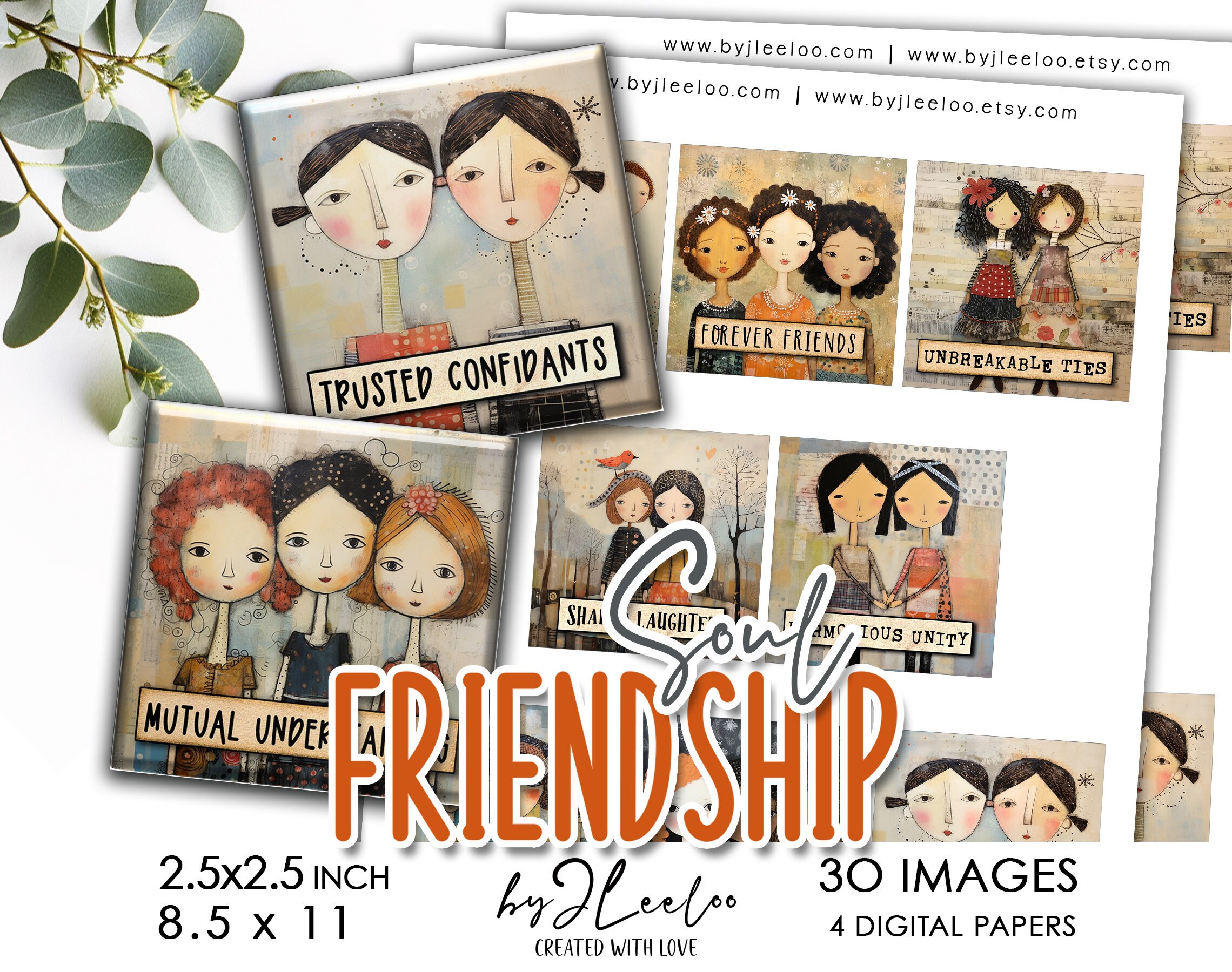 SOUL FRIENDSHIP 2.5x2.5 inch printable | Supplies folk art pendant, charm images, gift for girlfriend, charm for friend, altered art | qu583