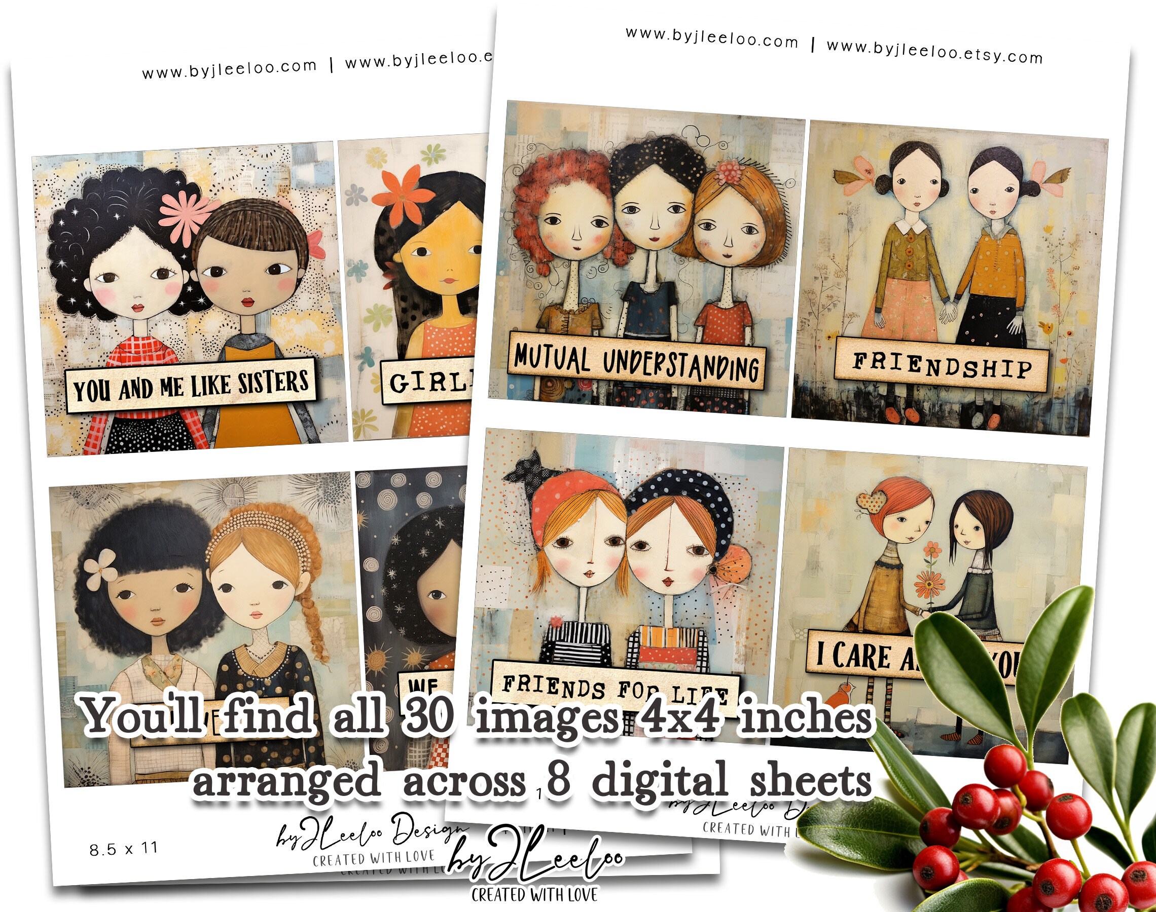 SOUL FRIENDSHIP 4x4 inch printable | Square supplies for coaster decoration mirror magnet and craft gift for friends and girls DIY | qu585