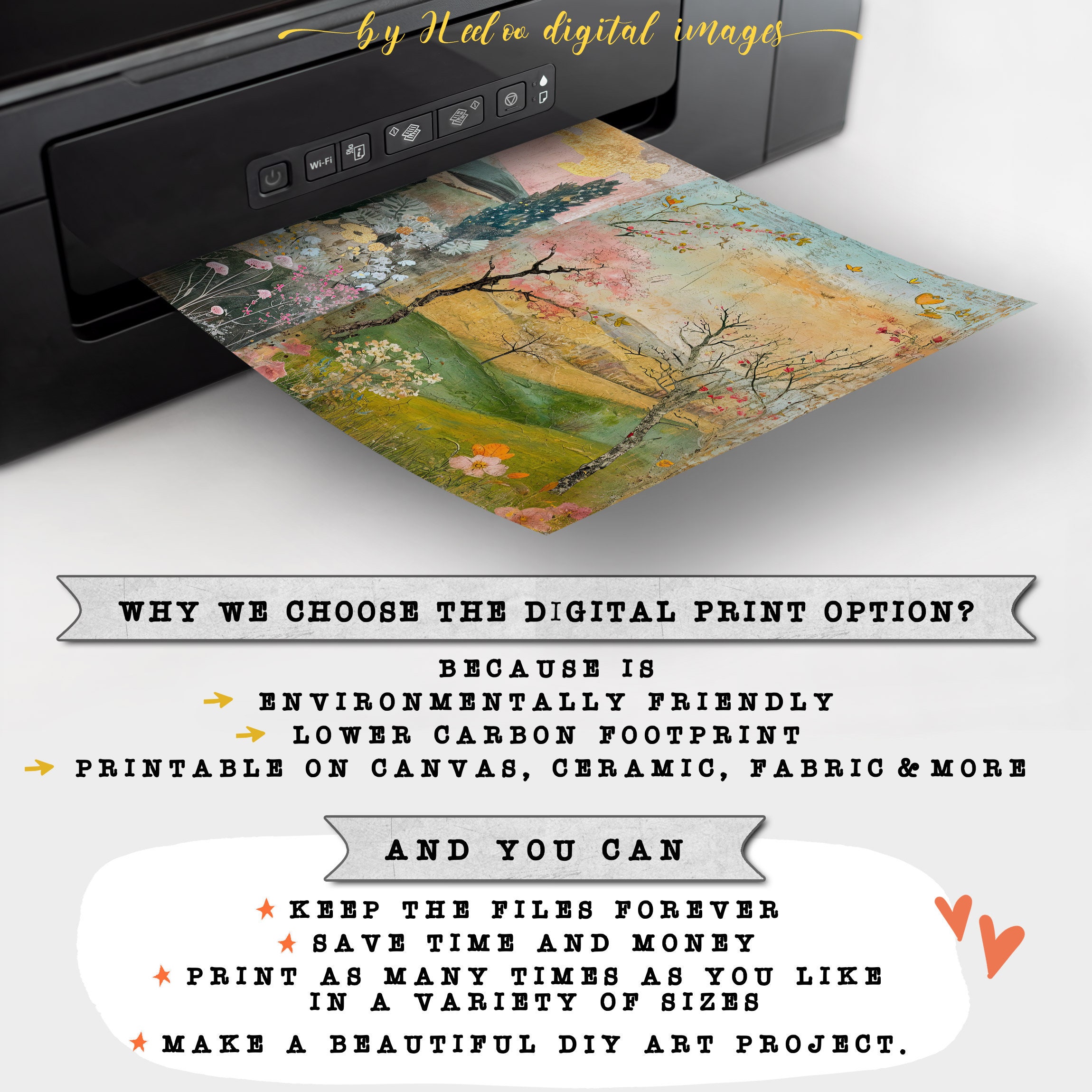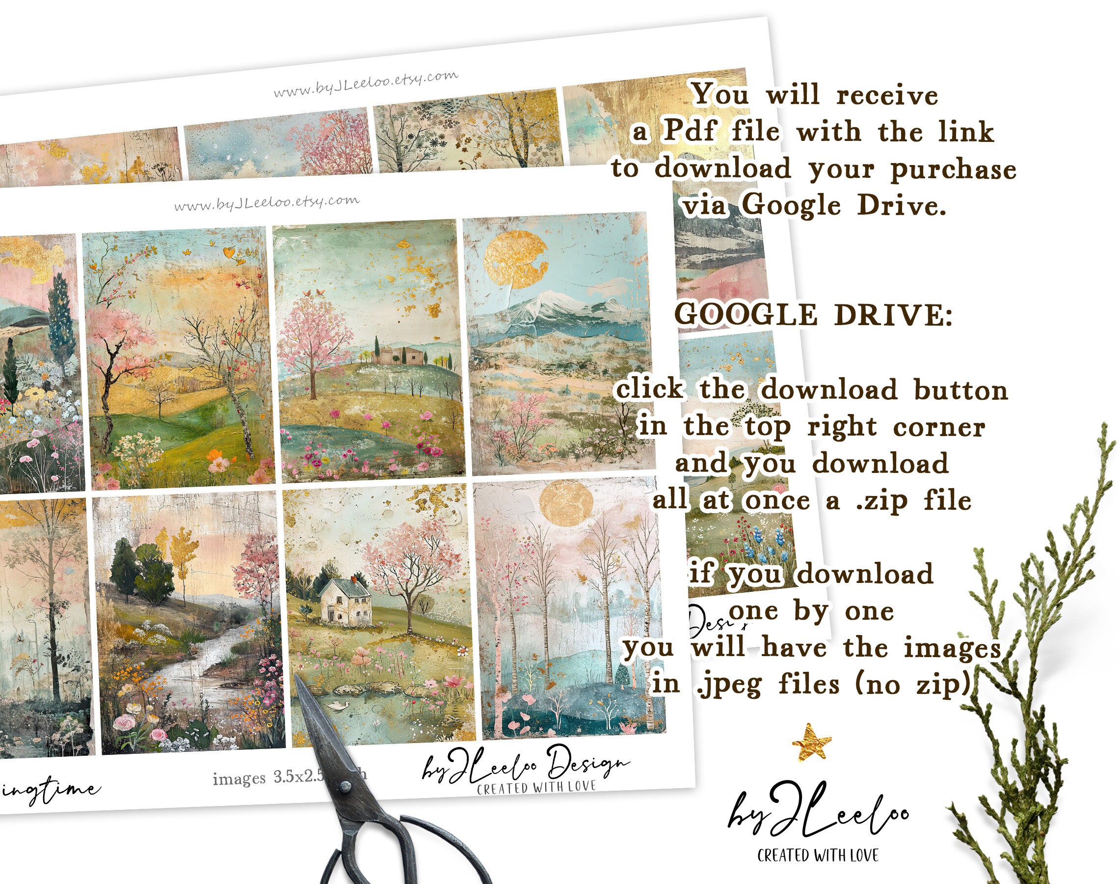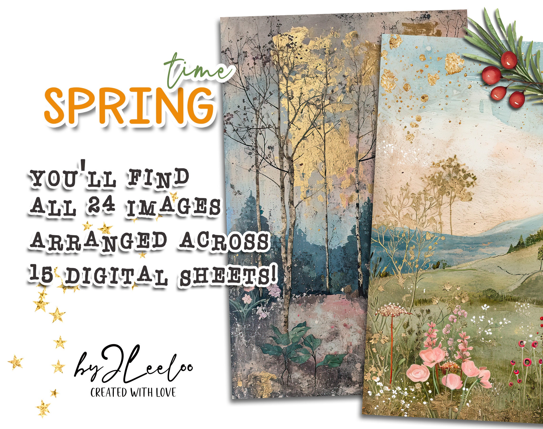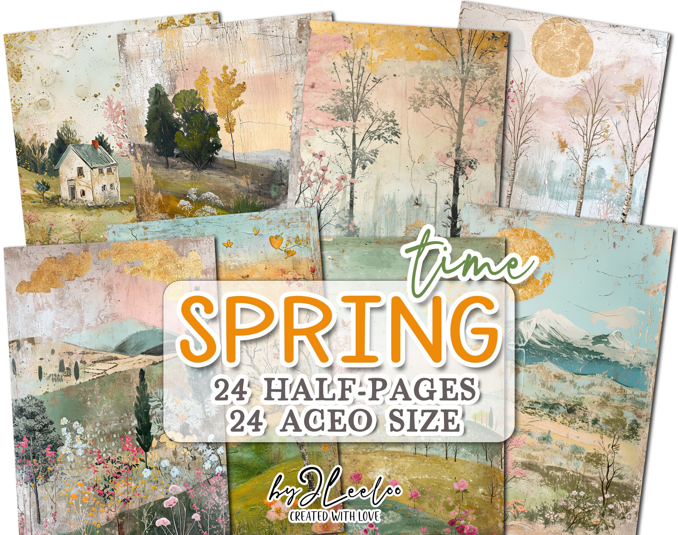 SPRINGTIME half pages aceo print for spring junk journal Mixed Media | Hand-drawn painting supplies card collage diary gold foil | pp697