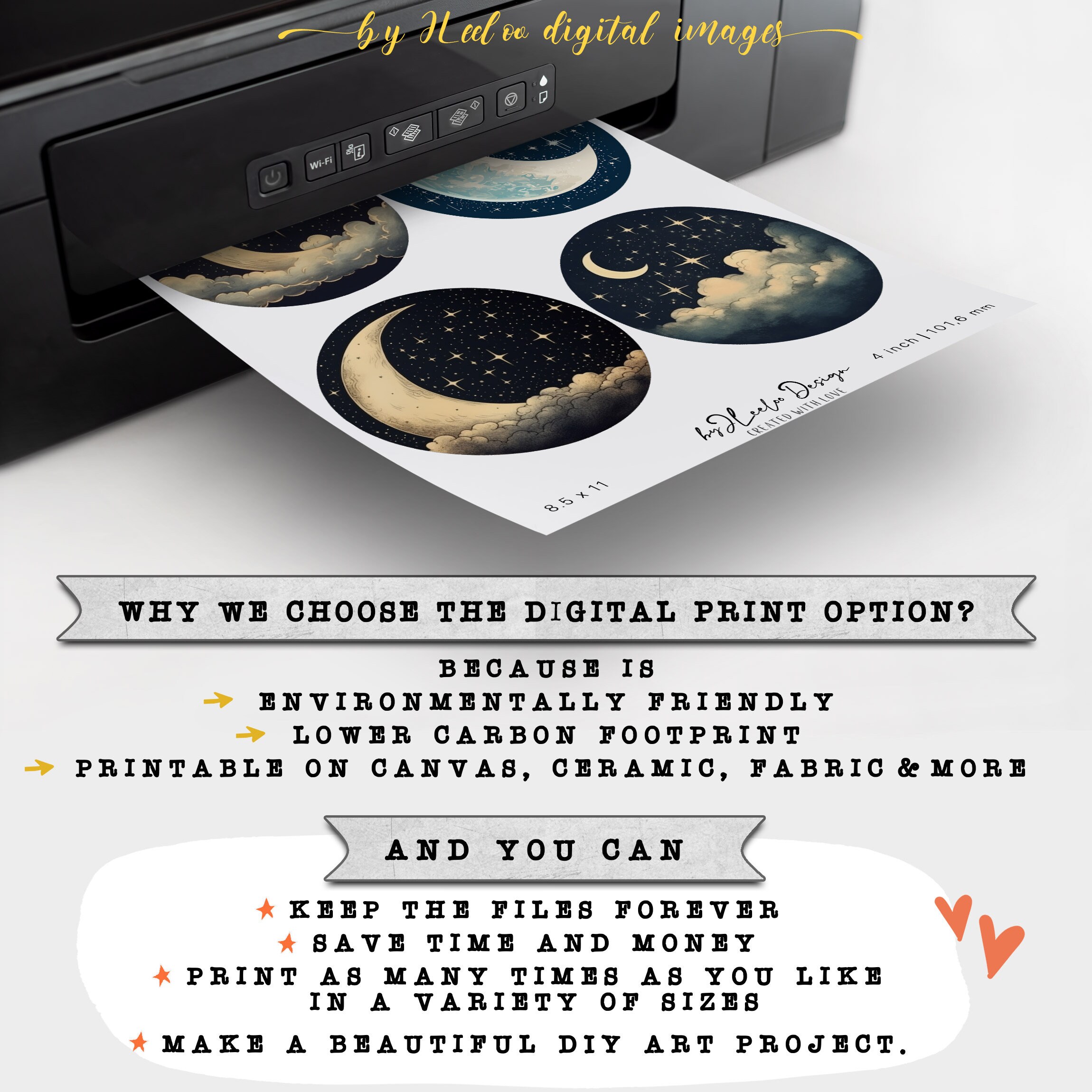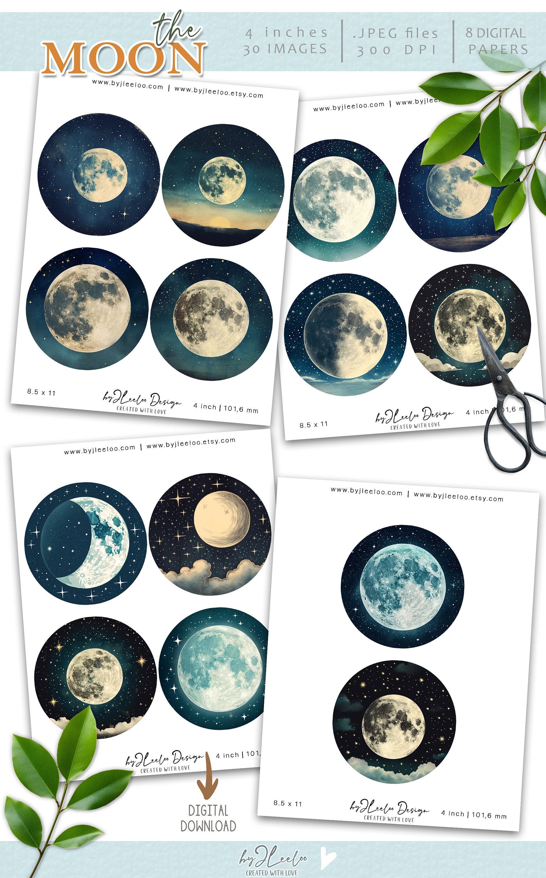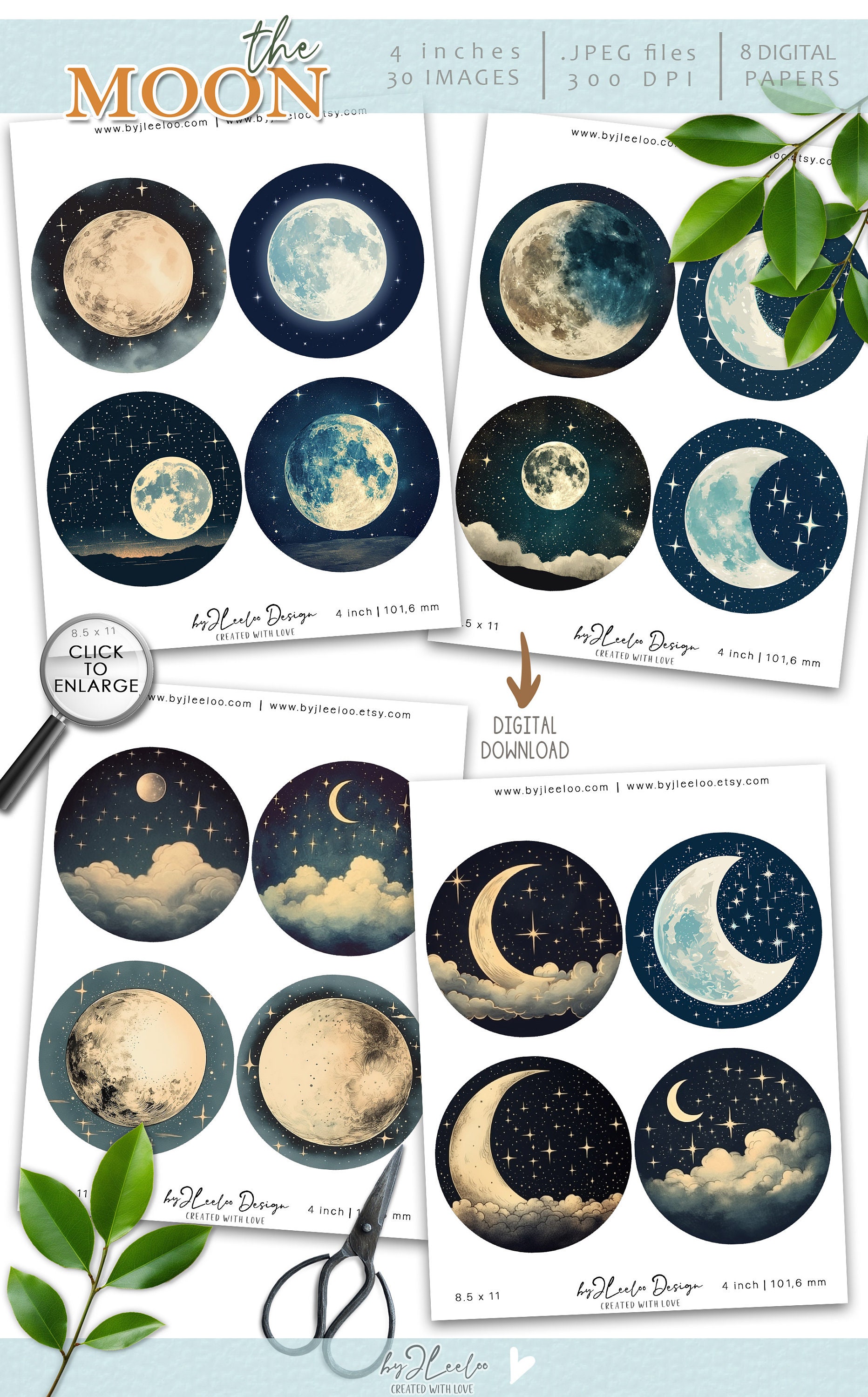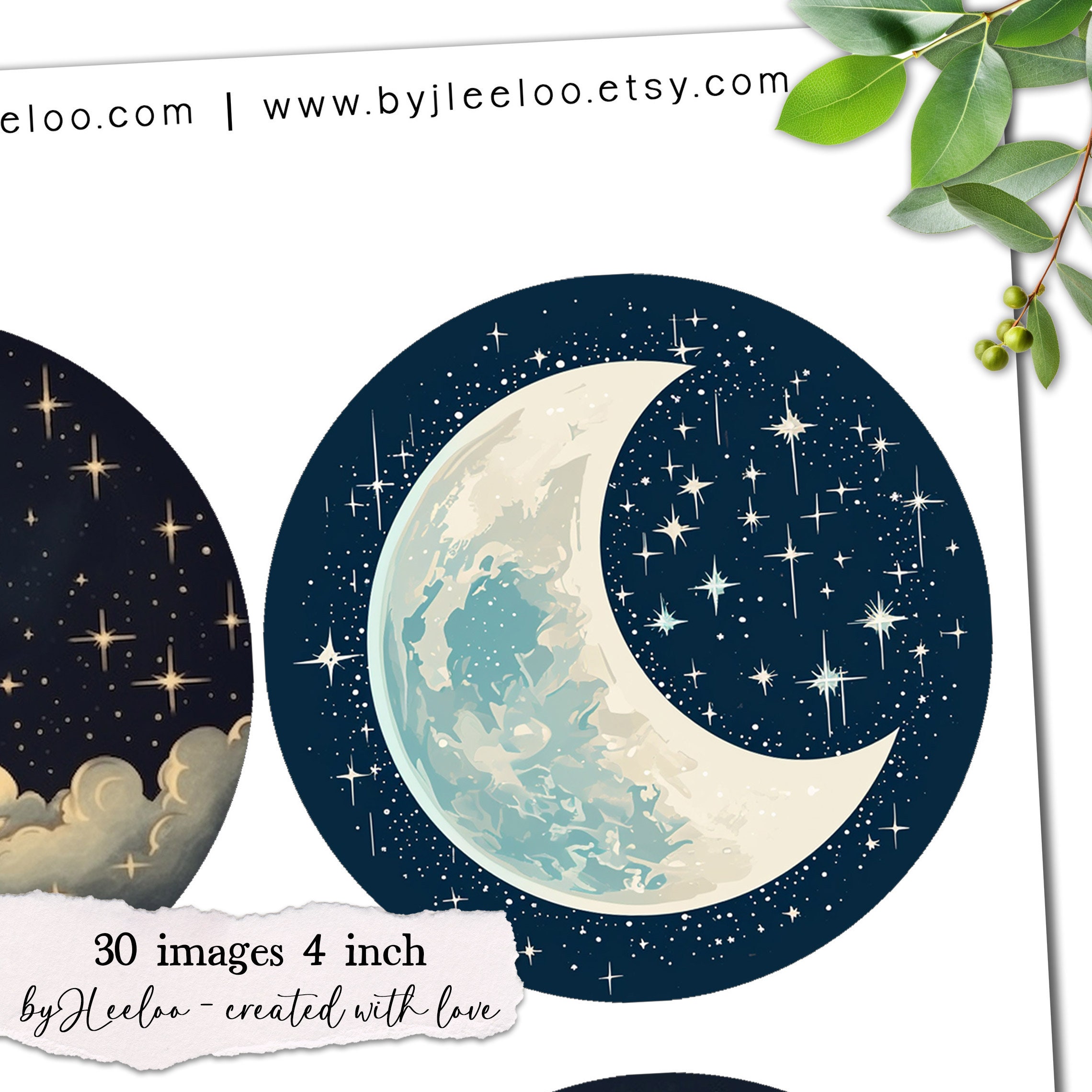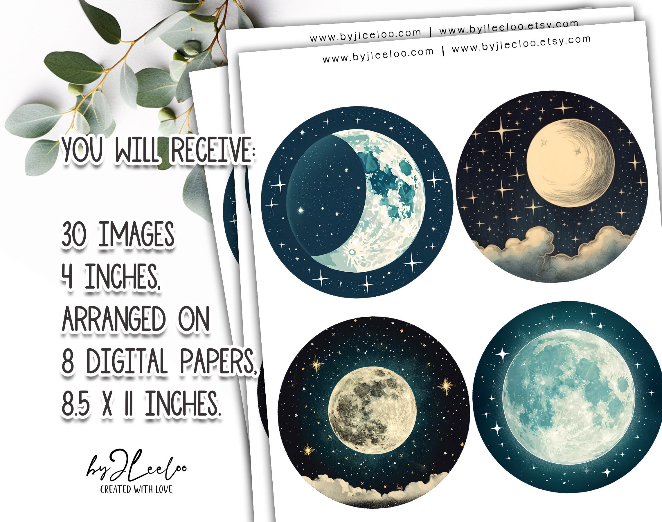 THE MOON 4 inch circle printable | Mystical round supplies for coaster decoration mirror magnet sticker | craft instant download DIY | tn739