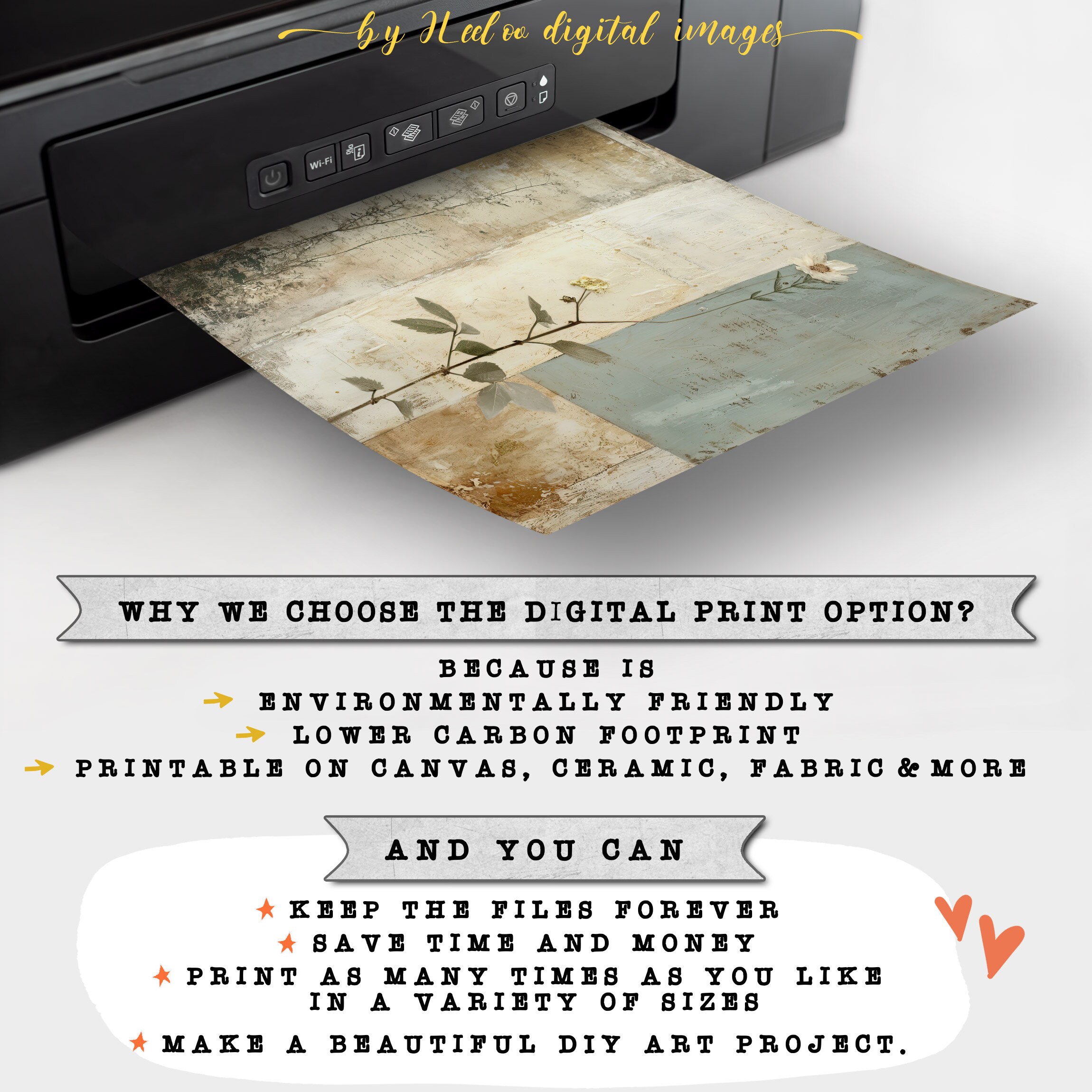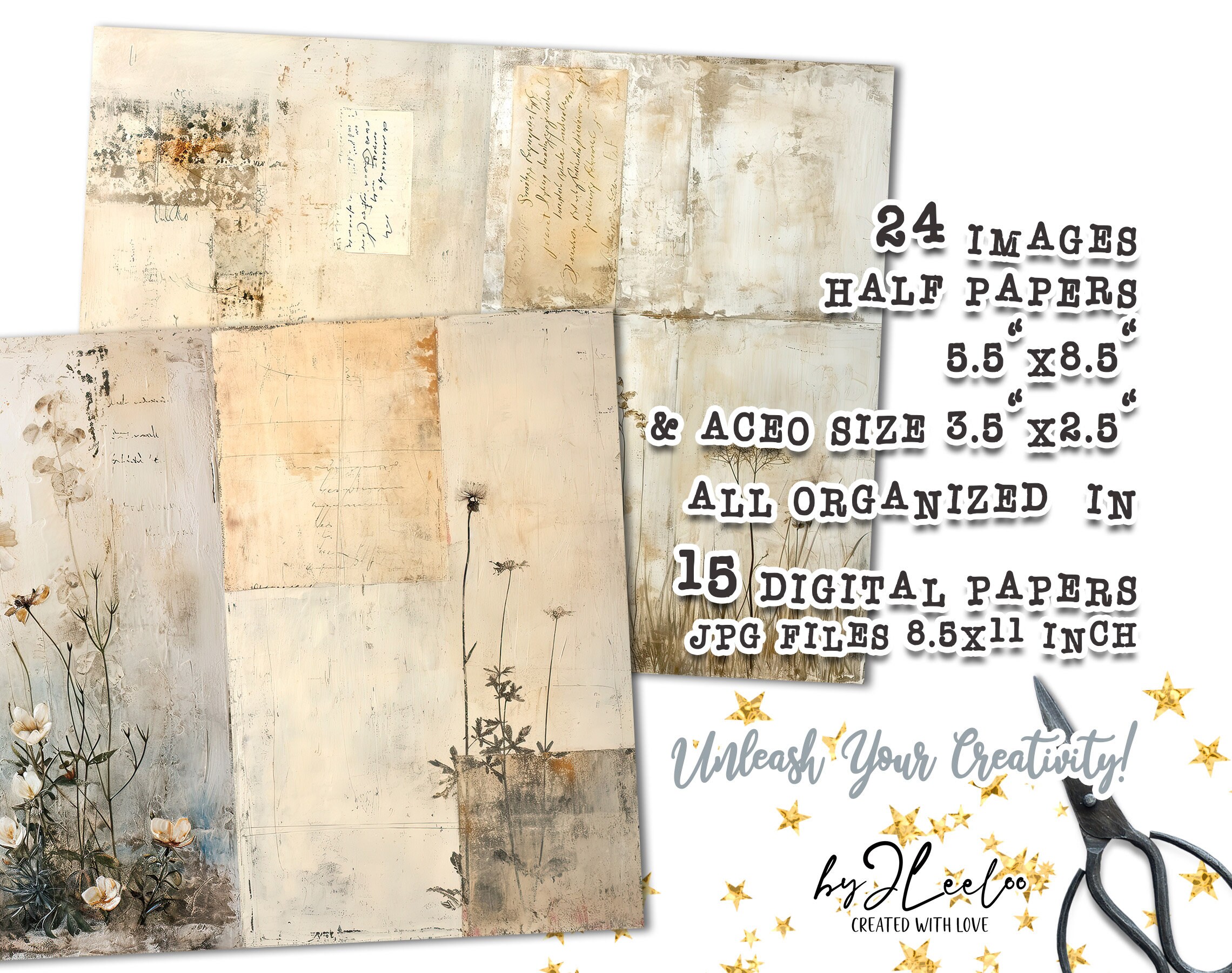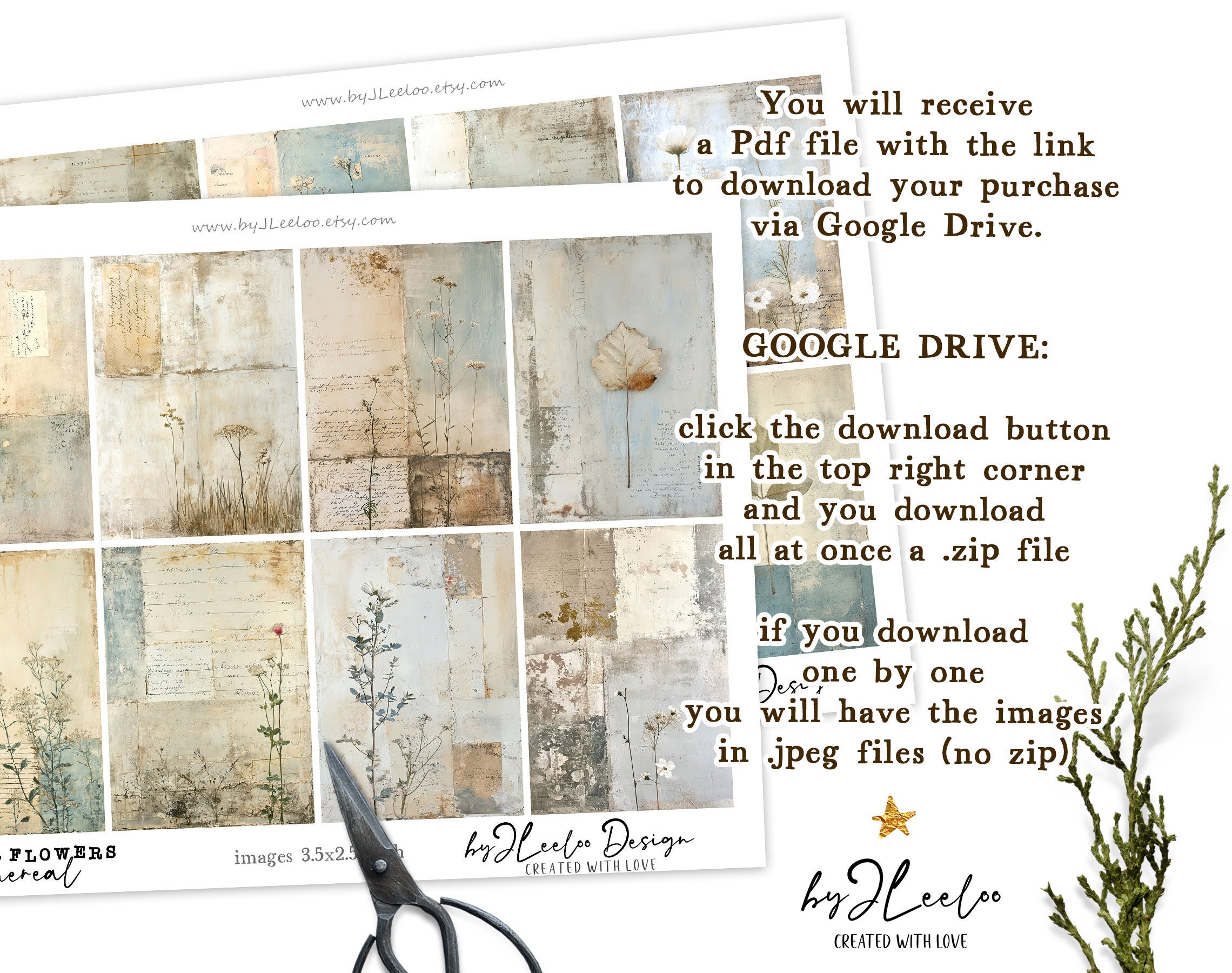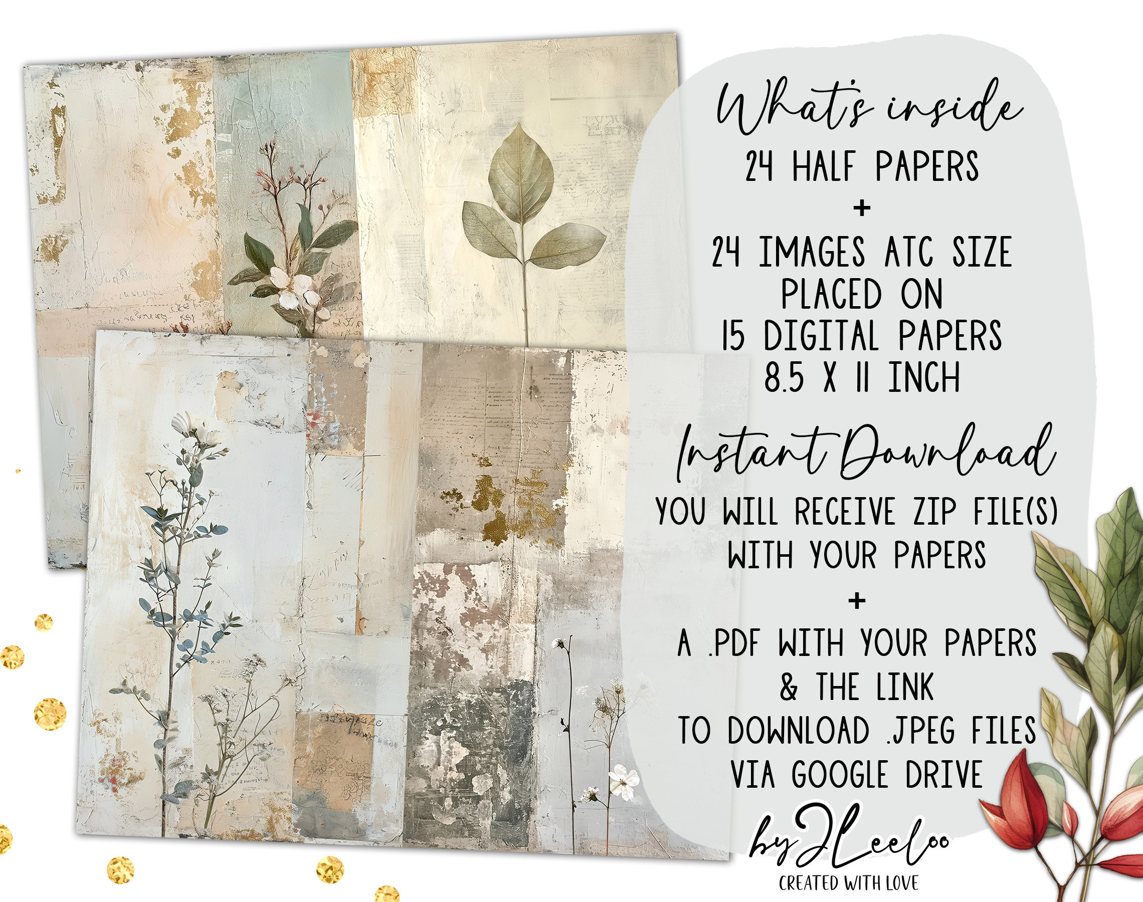 ETHEREAL FLOWERS half pages printable | Botanical junk journal Mixed Media supplies | Distressed french ephemera collage paper card collage diary | pp710