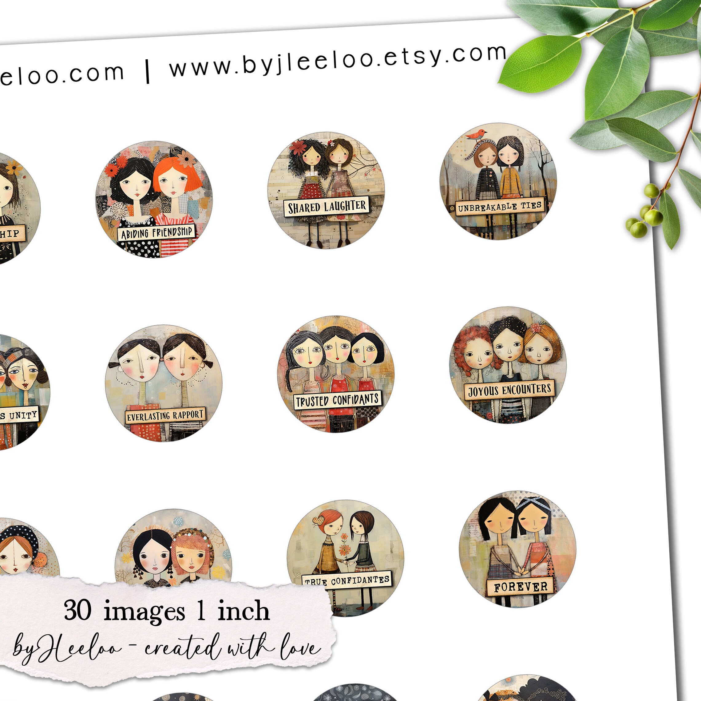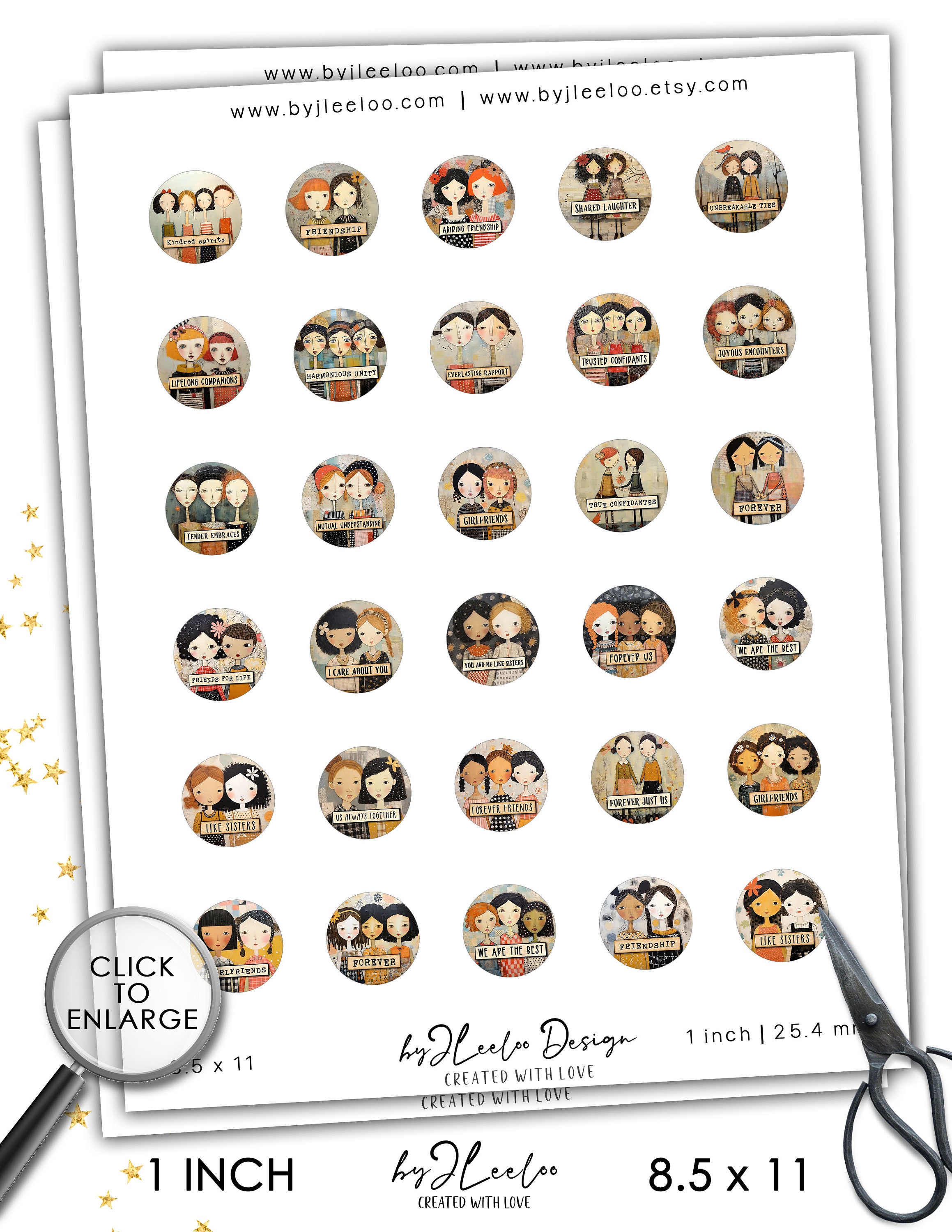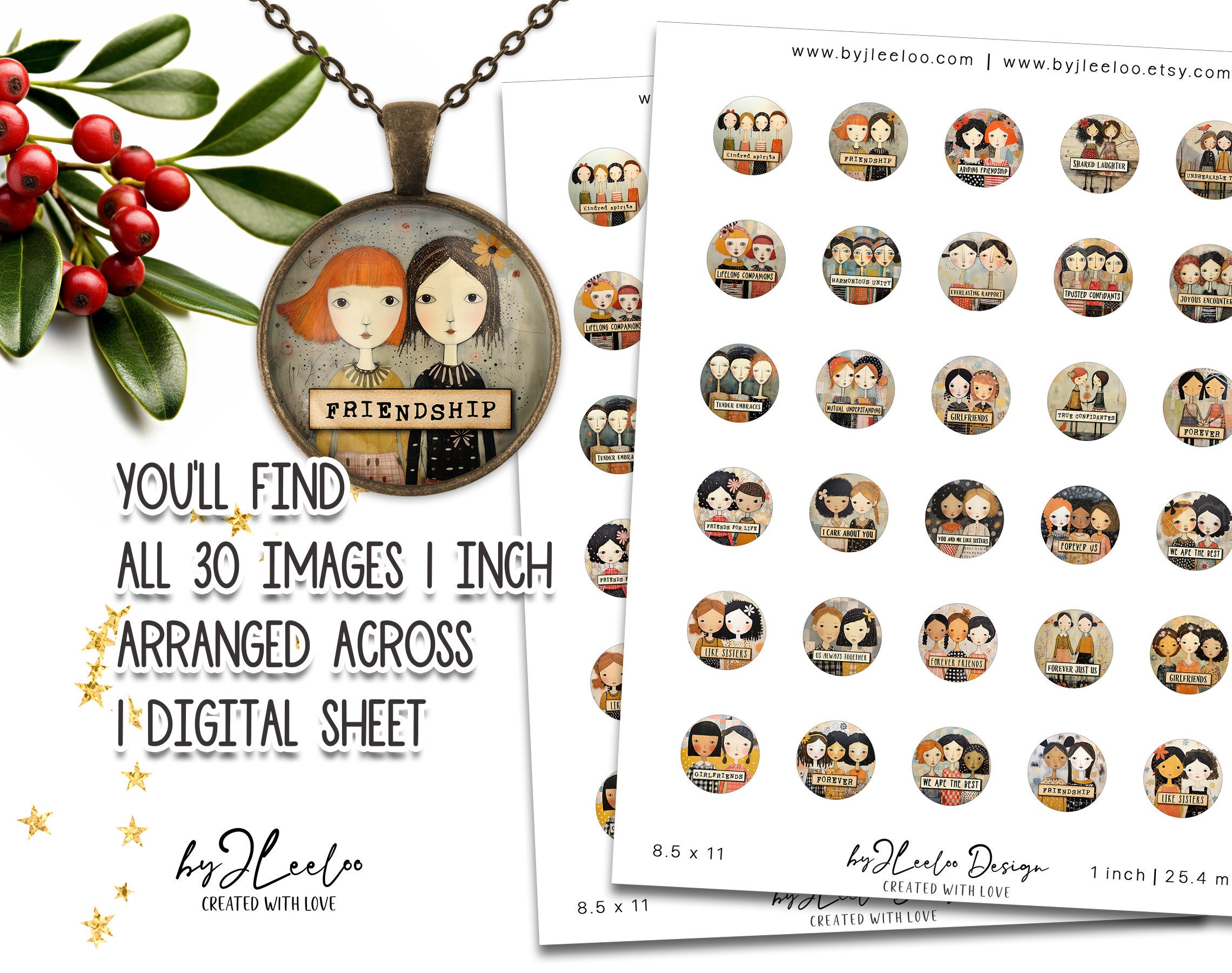 SOUL FRIENDSHIP 1 inch printable | supplies round pendants | Digital glass cabochon, charms, sticker, mirror, pin | Gift for girls | | tn746