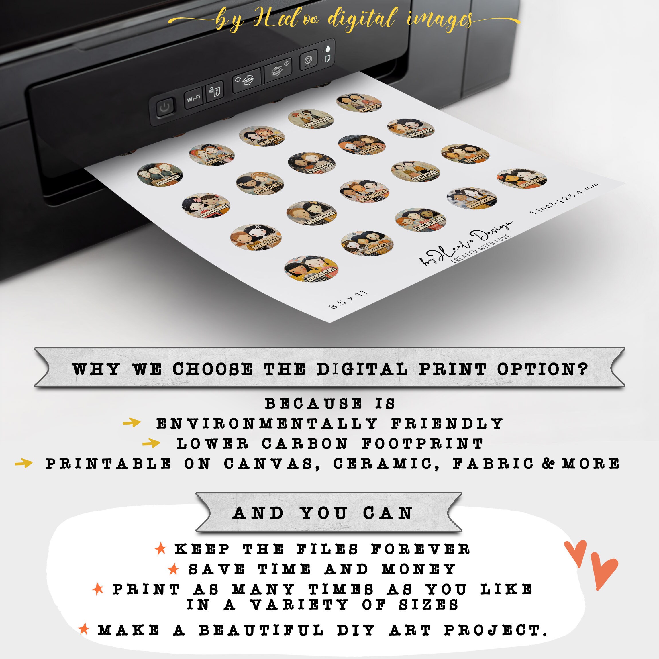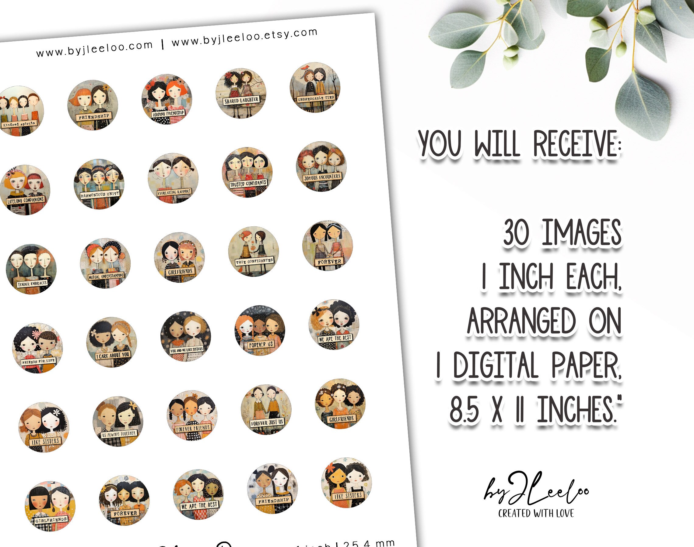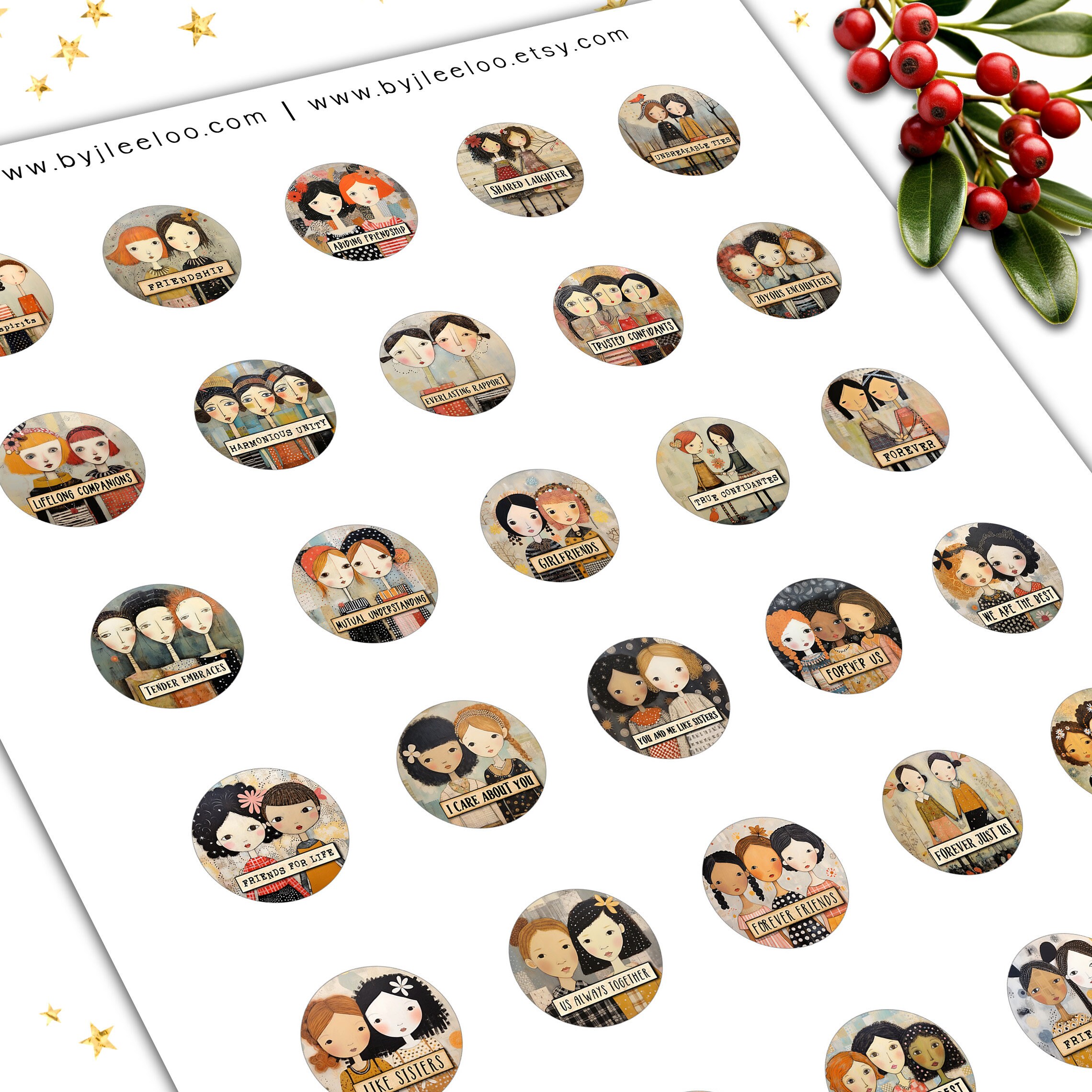 SOUL FRIENDSHIP 1 inch printable | supplies round pendants | Digital glass cabochon, charms, sticker, mirror, pin | Gift for girls | | tn746