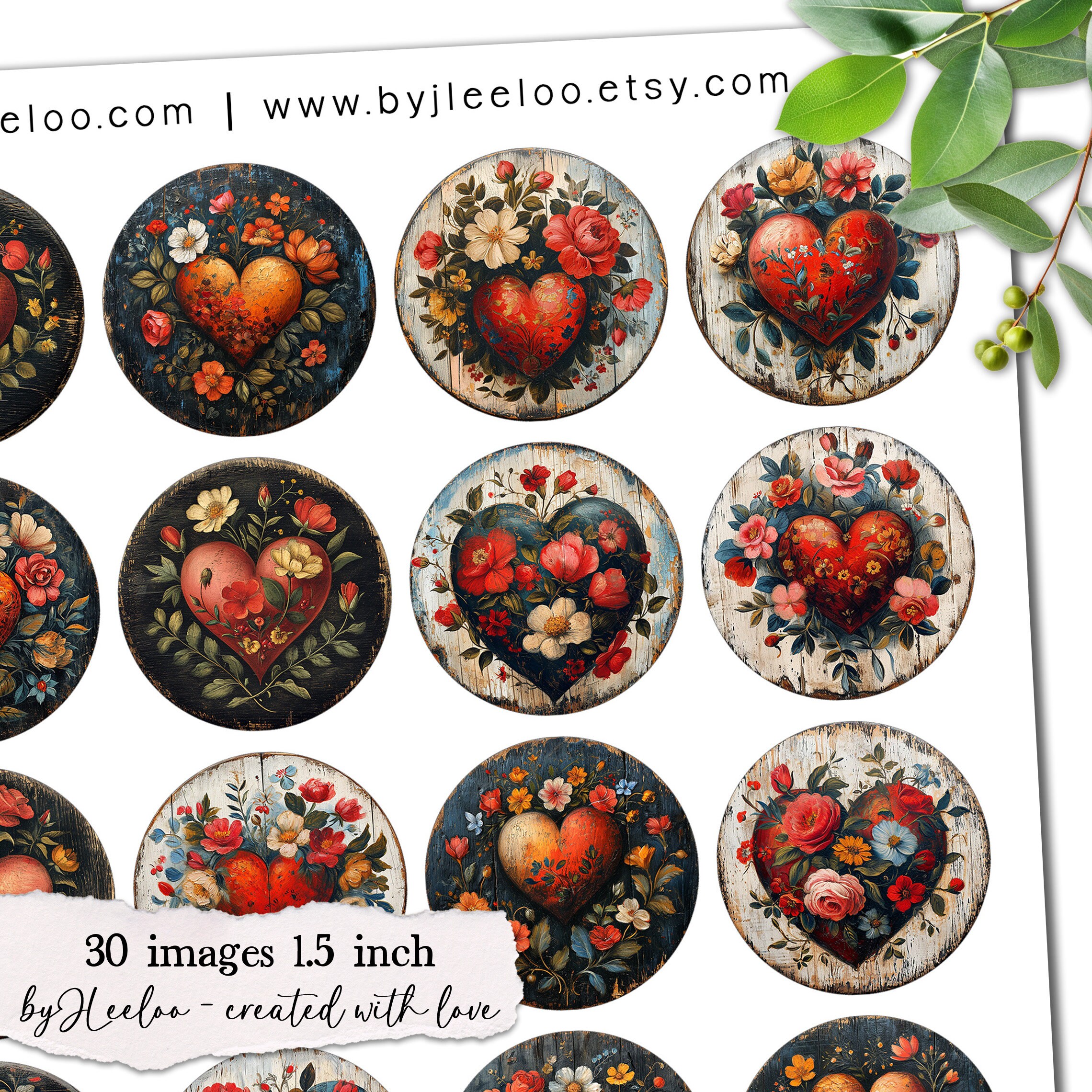 ๐๐ฟ Explore the rustic charm of our collection featuring 30 digital images capturing the timeless beauty of oil-painted hearts and flowers on dark or light wooden backgrounds. Perfect for Valentine's Day, these images are meticulously crafted to adorn pendants, paper art, labels, junk journals, stickers, and more. Immerse yourself in the warmth of these exquisite designs, blending love and nature seamlessly โจ