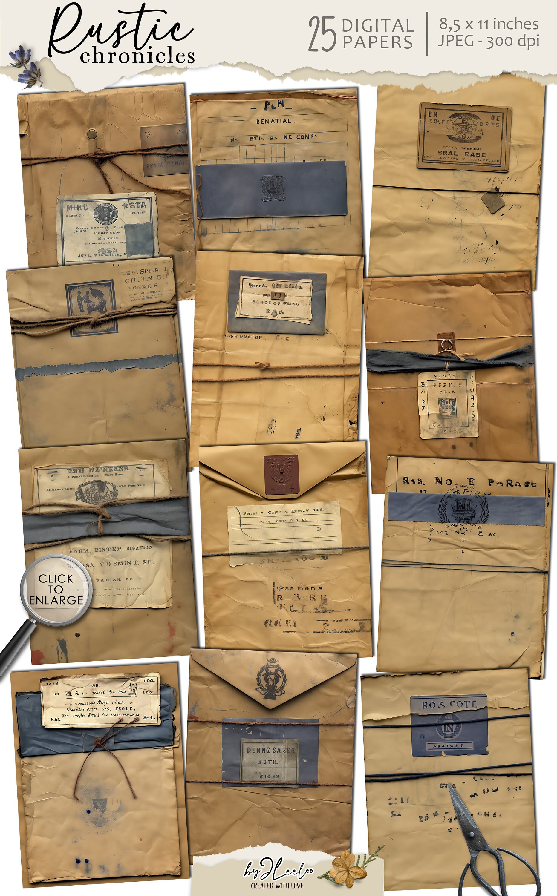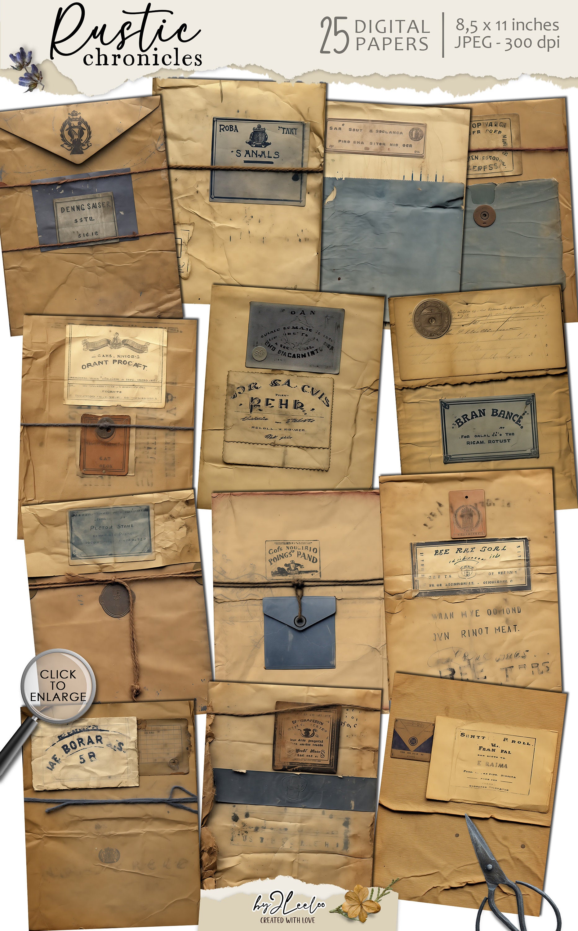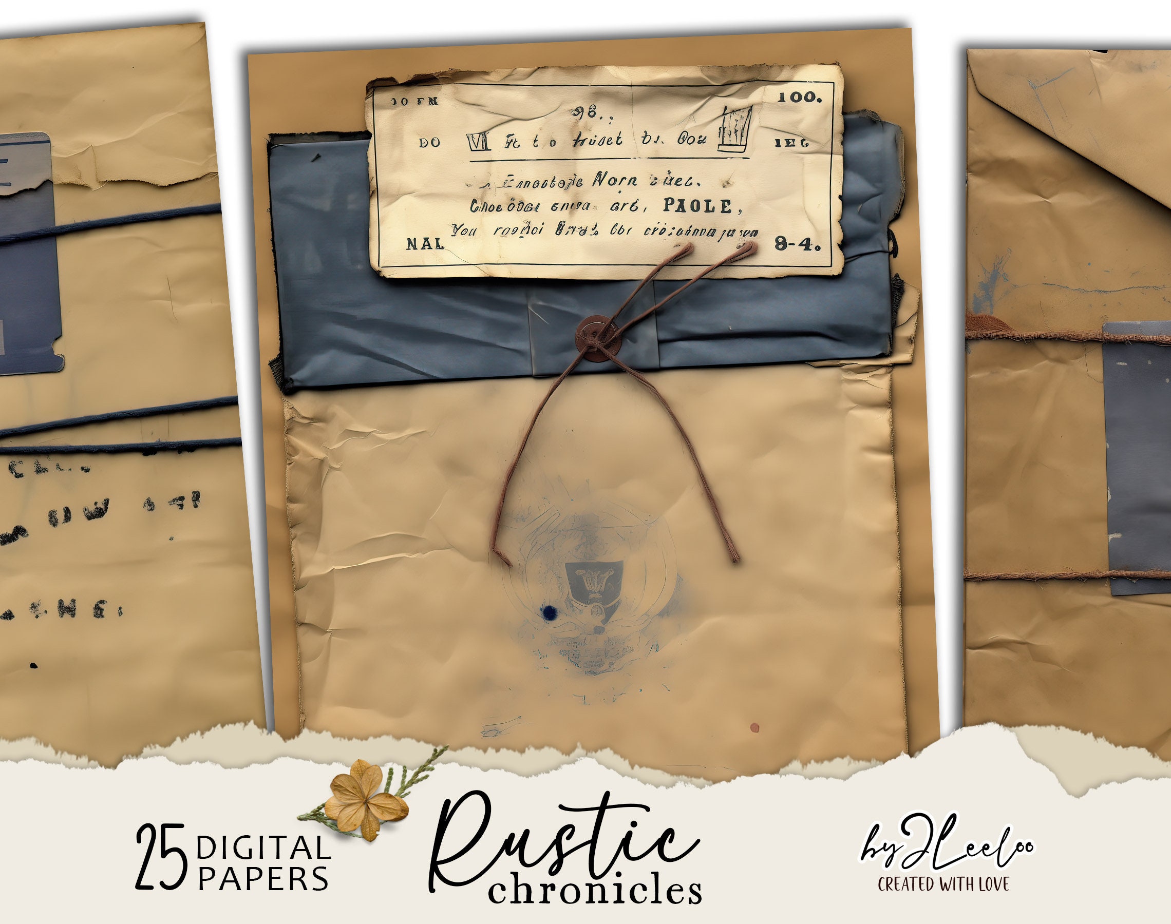 RUSTIC CHRONICLES fake vintage parcels | Junk Journal pages old parcels background Distressed grunge card collage digital ephemera | pp683