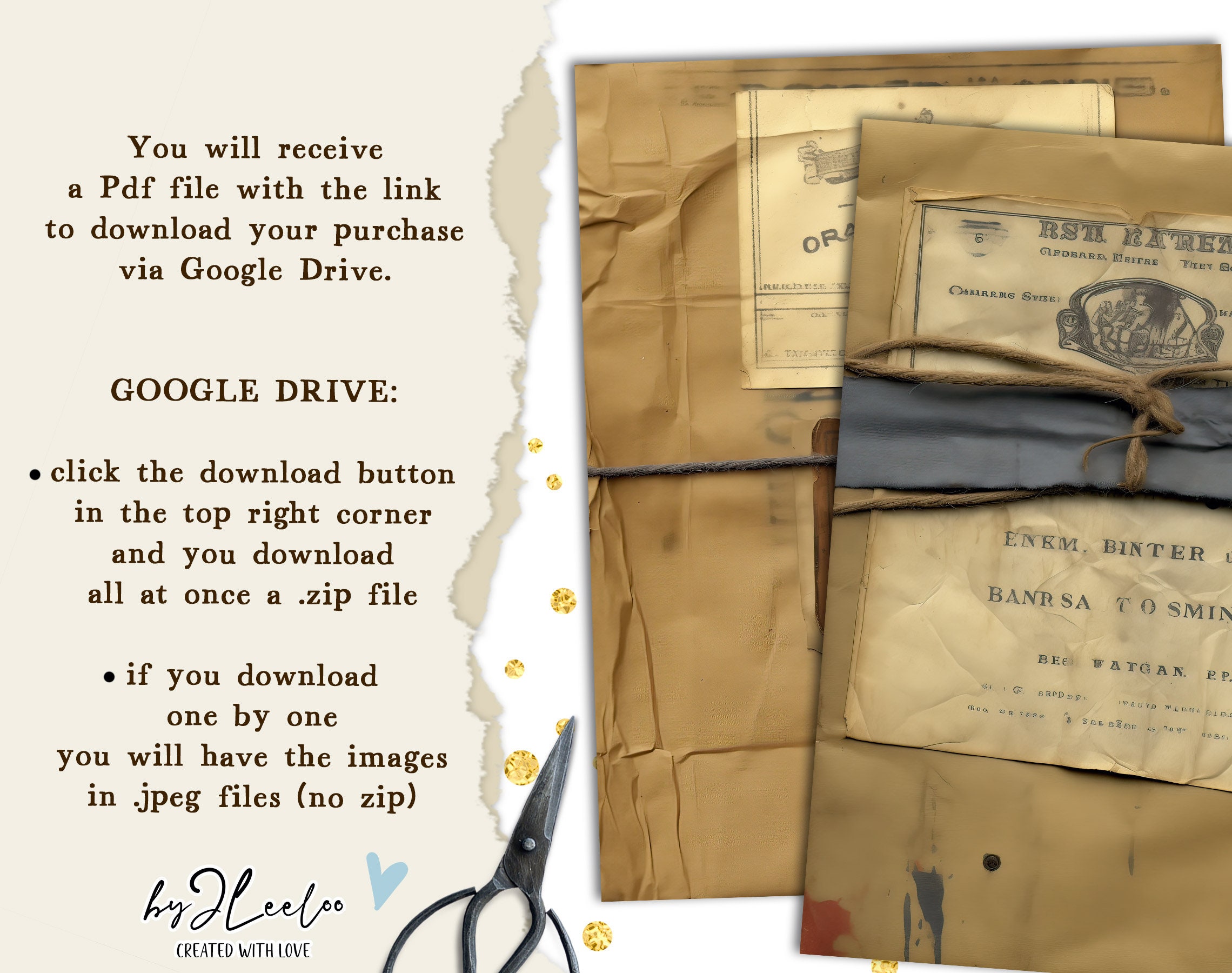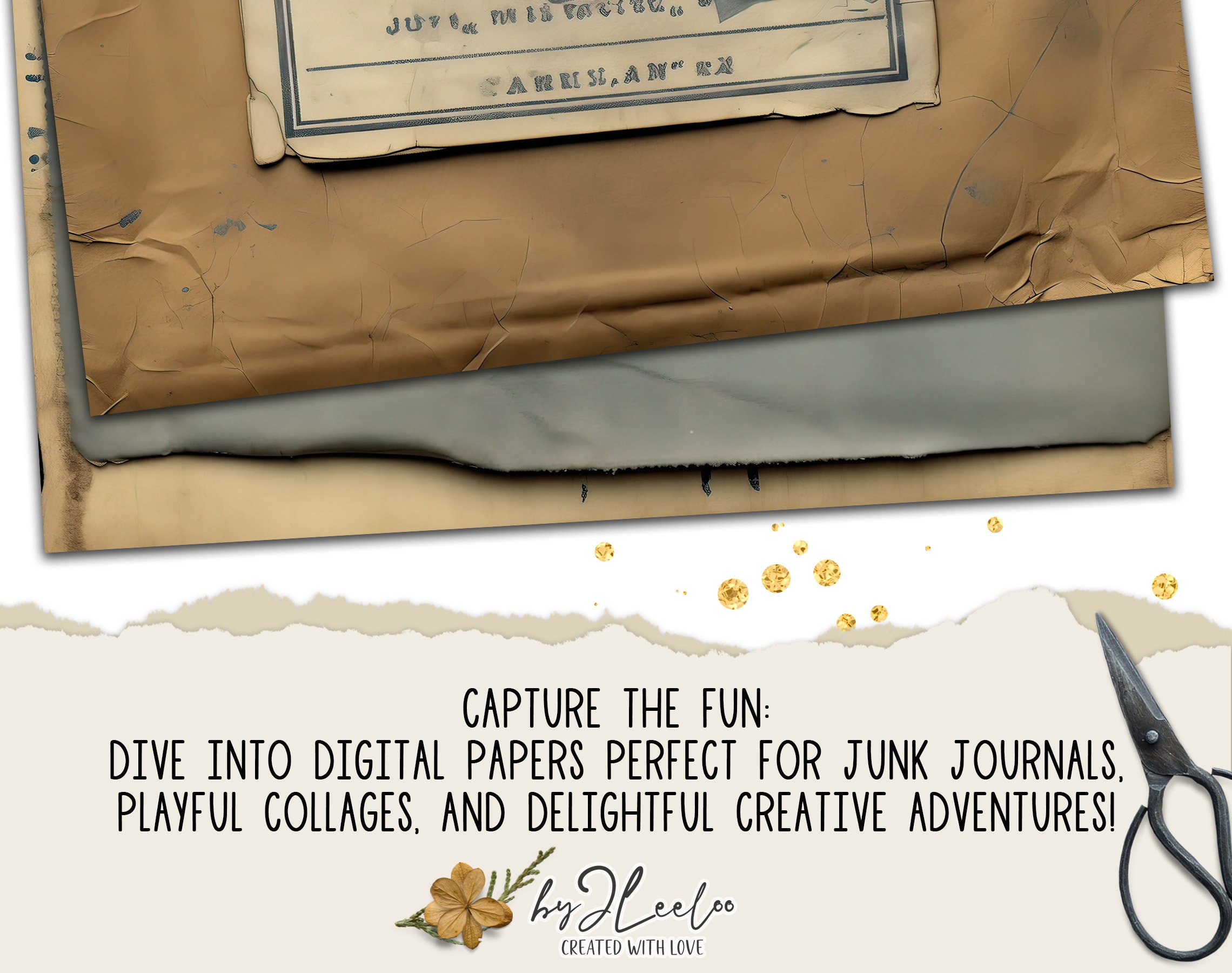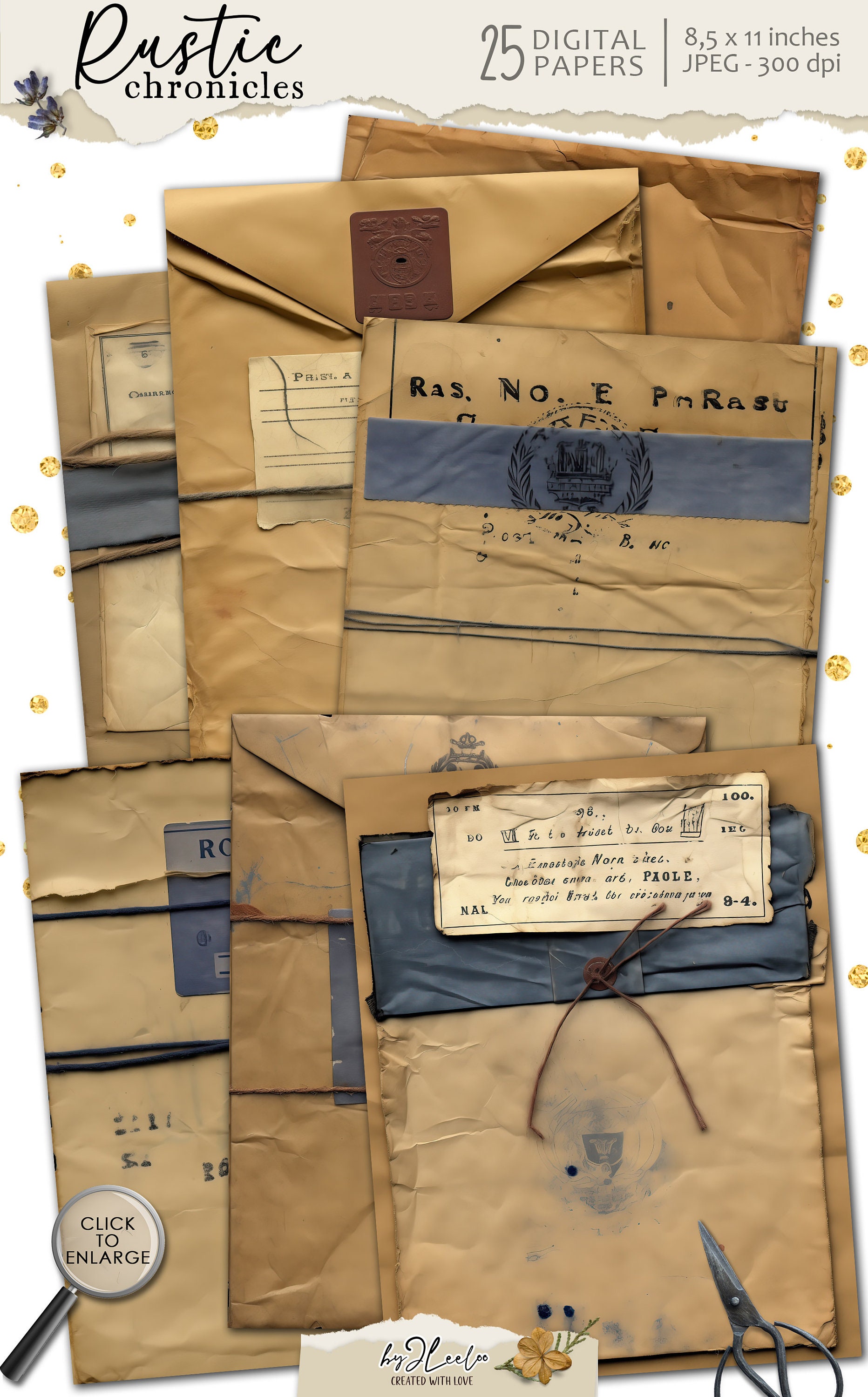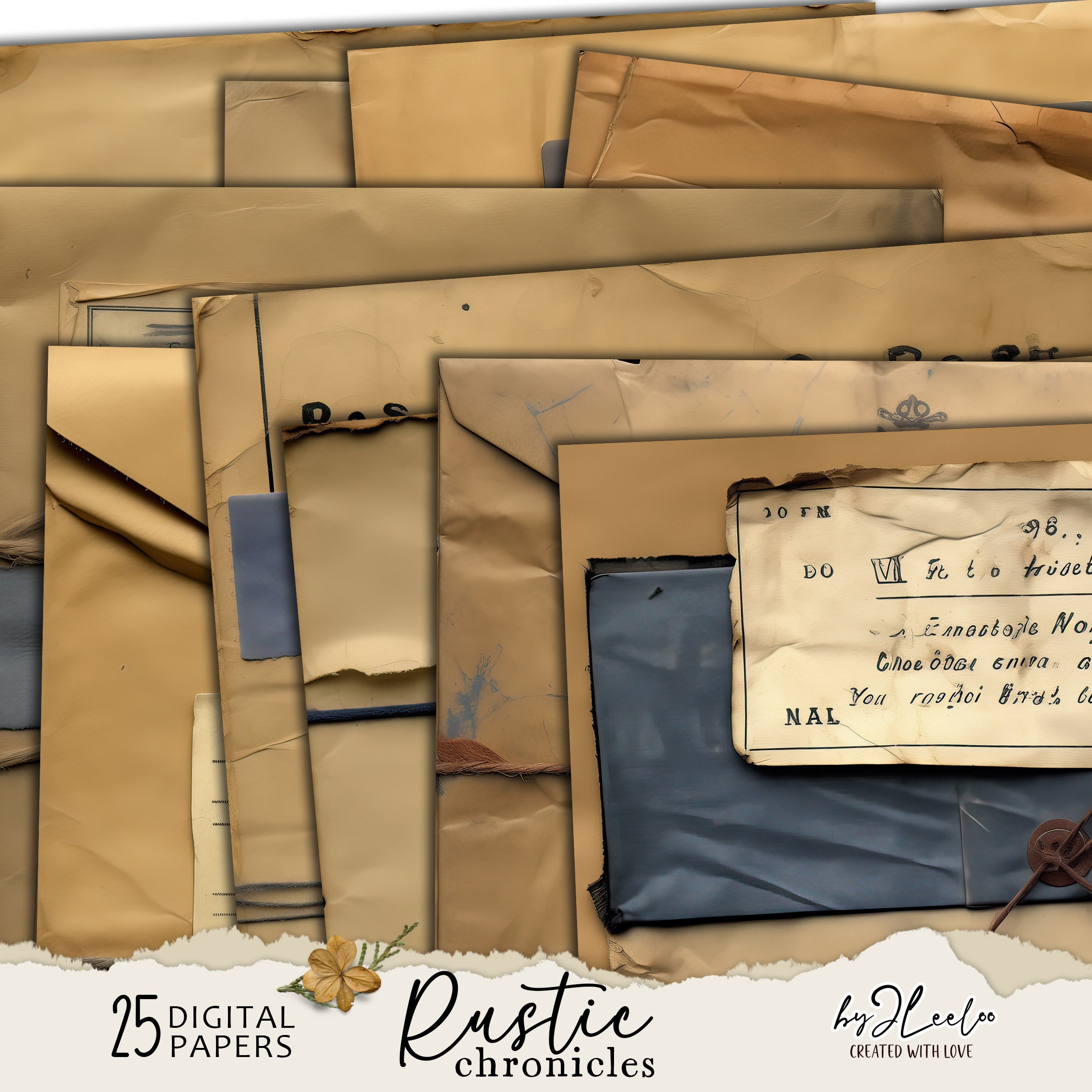 RUSTIC CHRONICLES fake vintage parcels | Junk Journal pages old parcels background Distressed grunge card collage digital ephemera | pp683