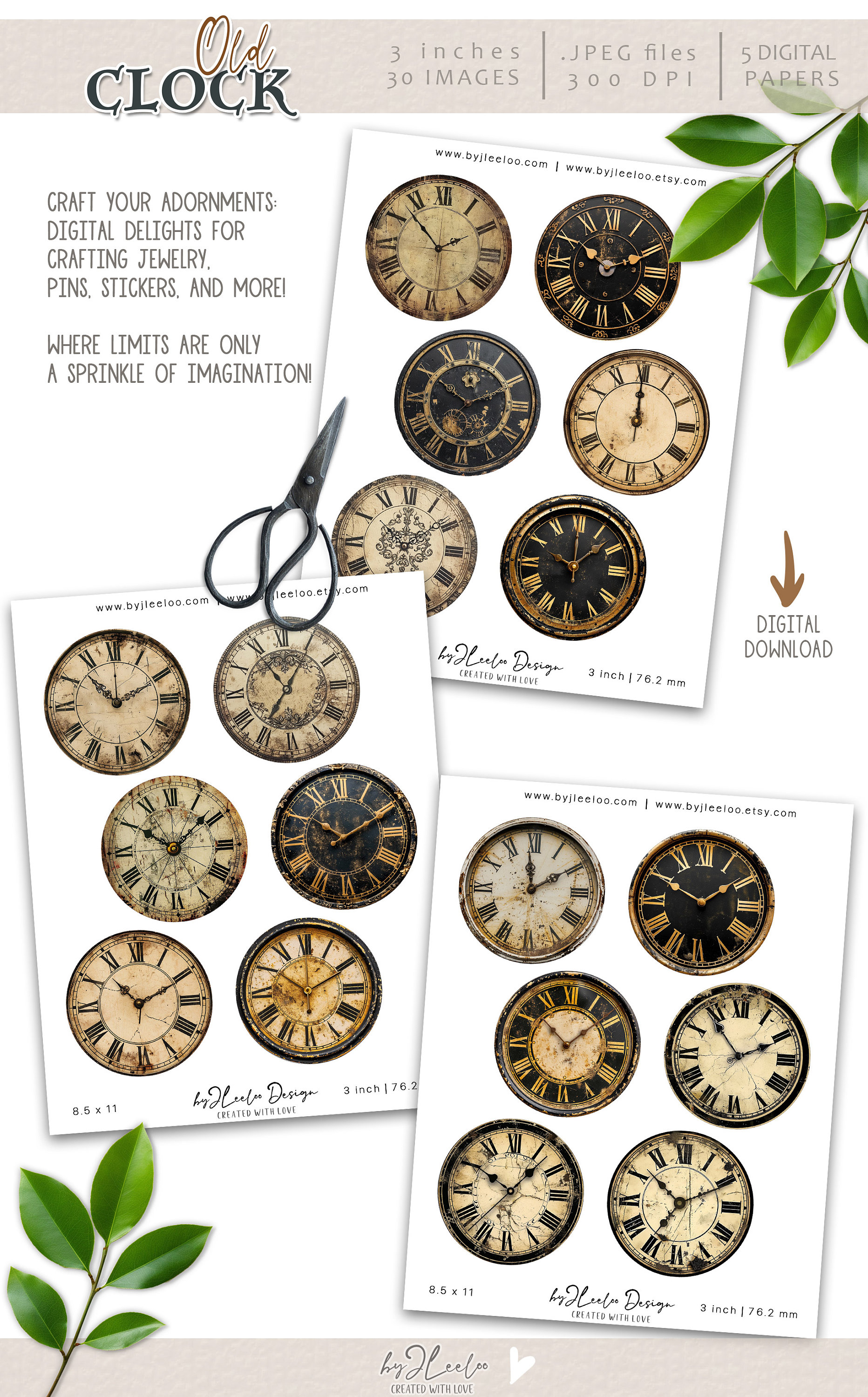 ◾ Other sizes of these images here: https://www.etsy.com/shop/byJLeeloo?search_query=old+clock