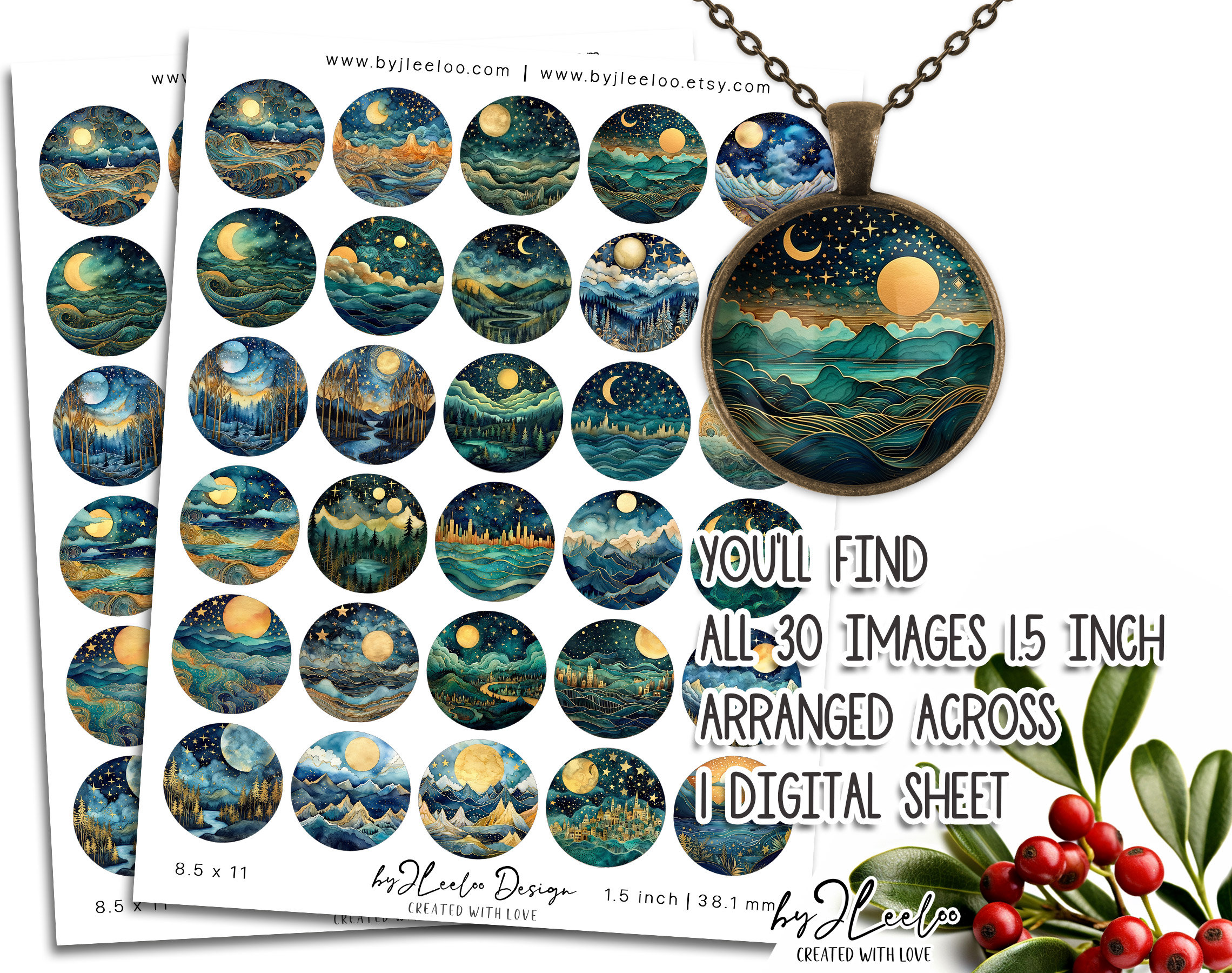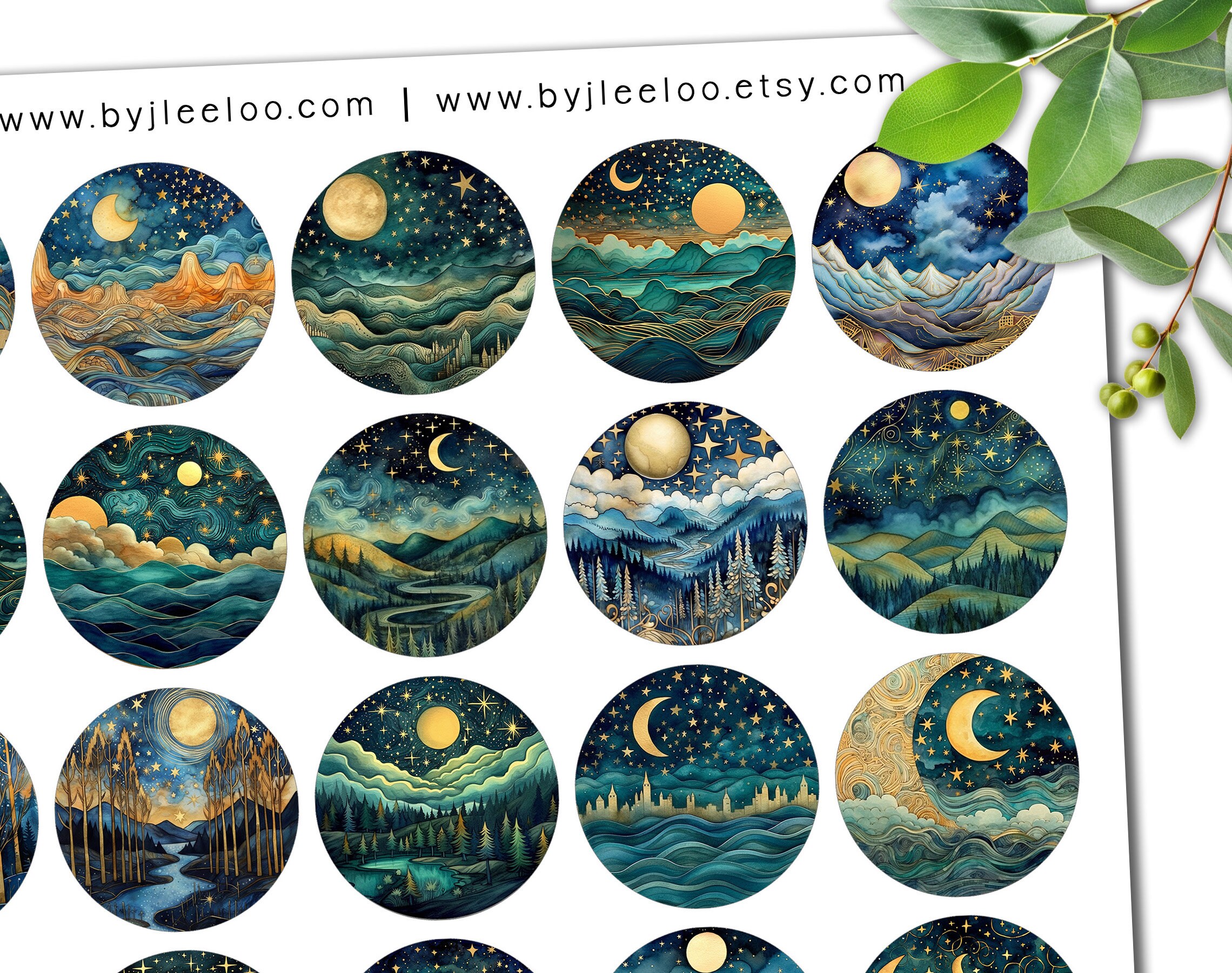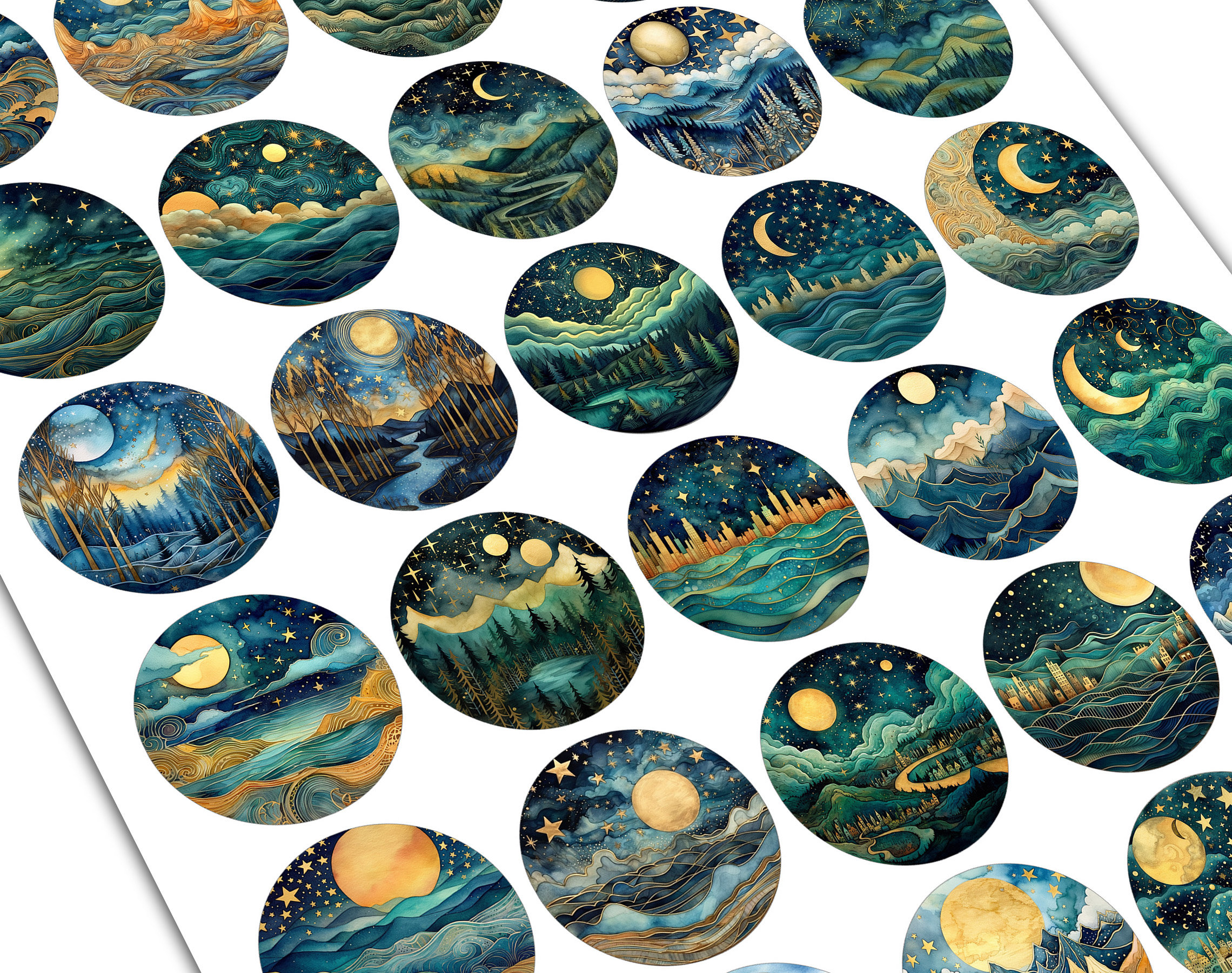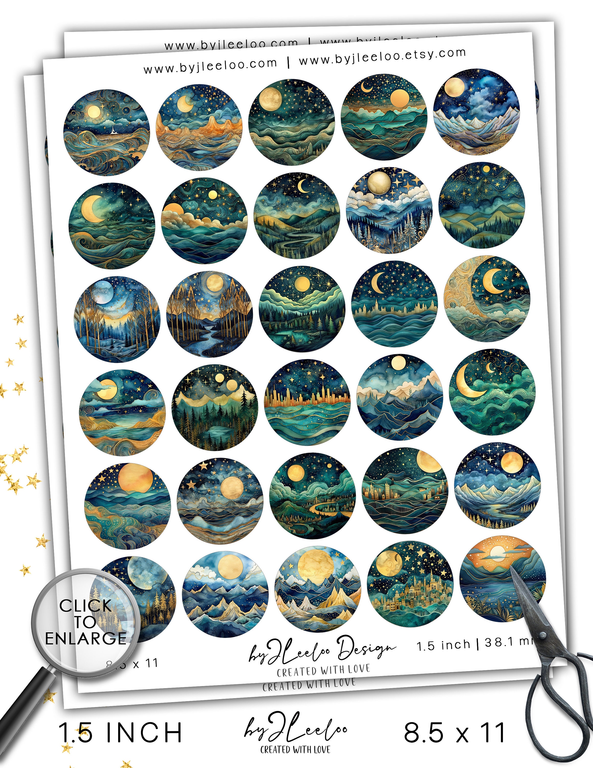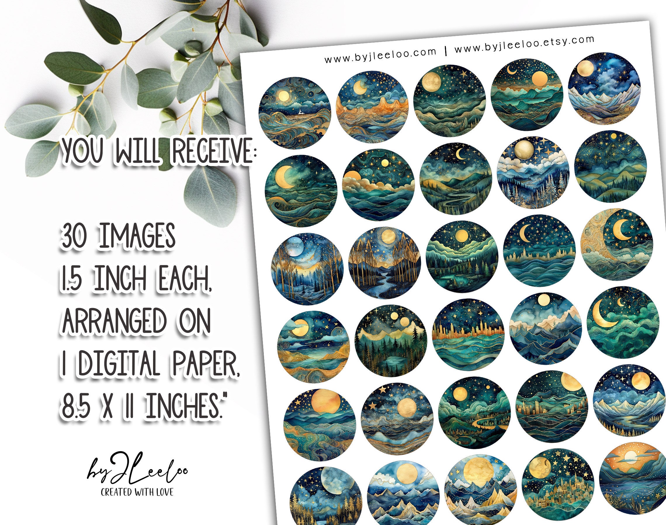 WATERCOLOR LANDSCAPE 1,5 inch circle printable | for bottle cap sticker pendant pin badge magnet mirror | graphic digital collage | tn723