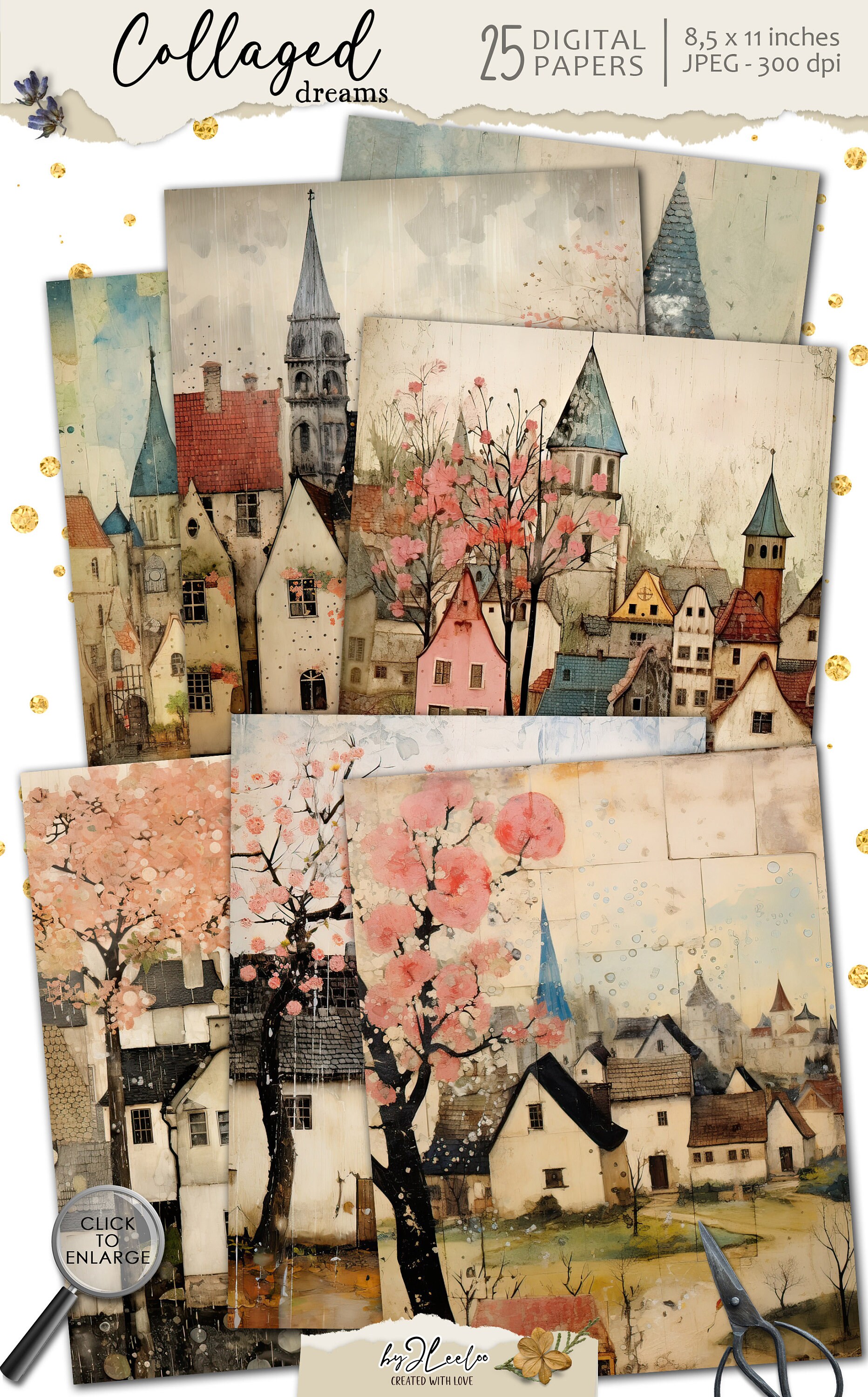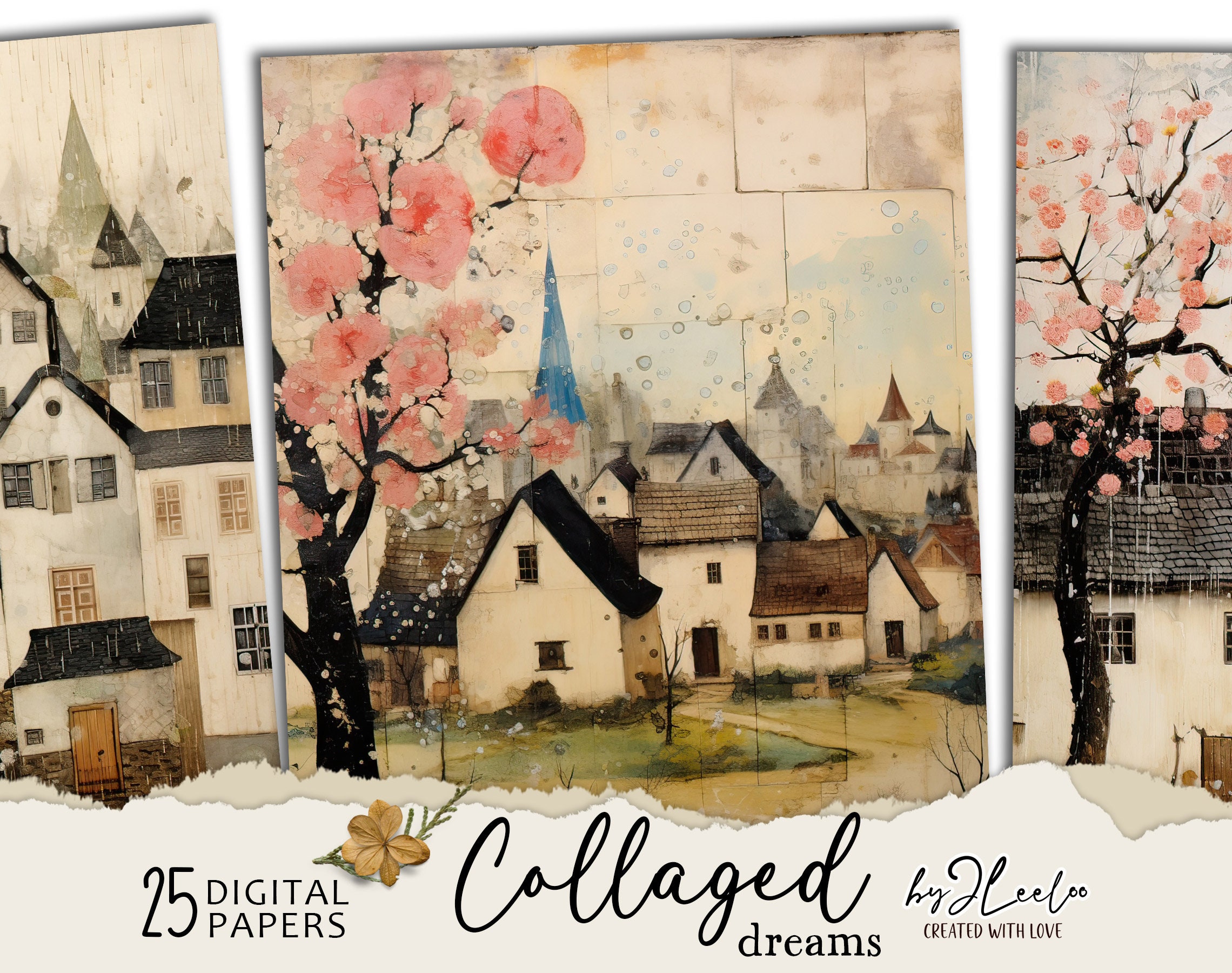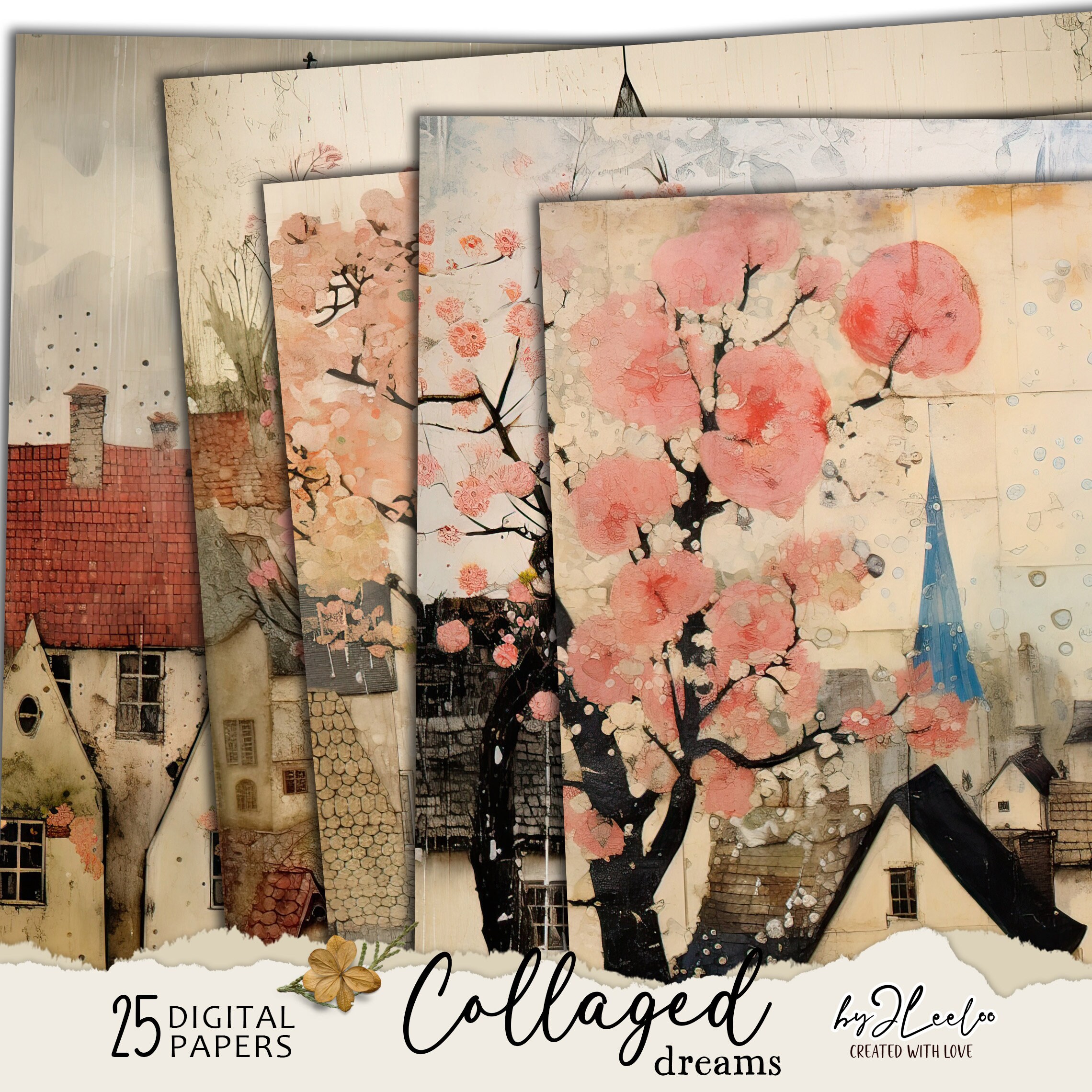 COLLAGED DREAMS vintage painting collage | Junk Journal pages background Distressed grunge card making collage digital ephemera | pp689