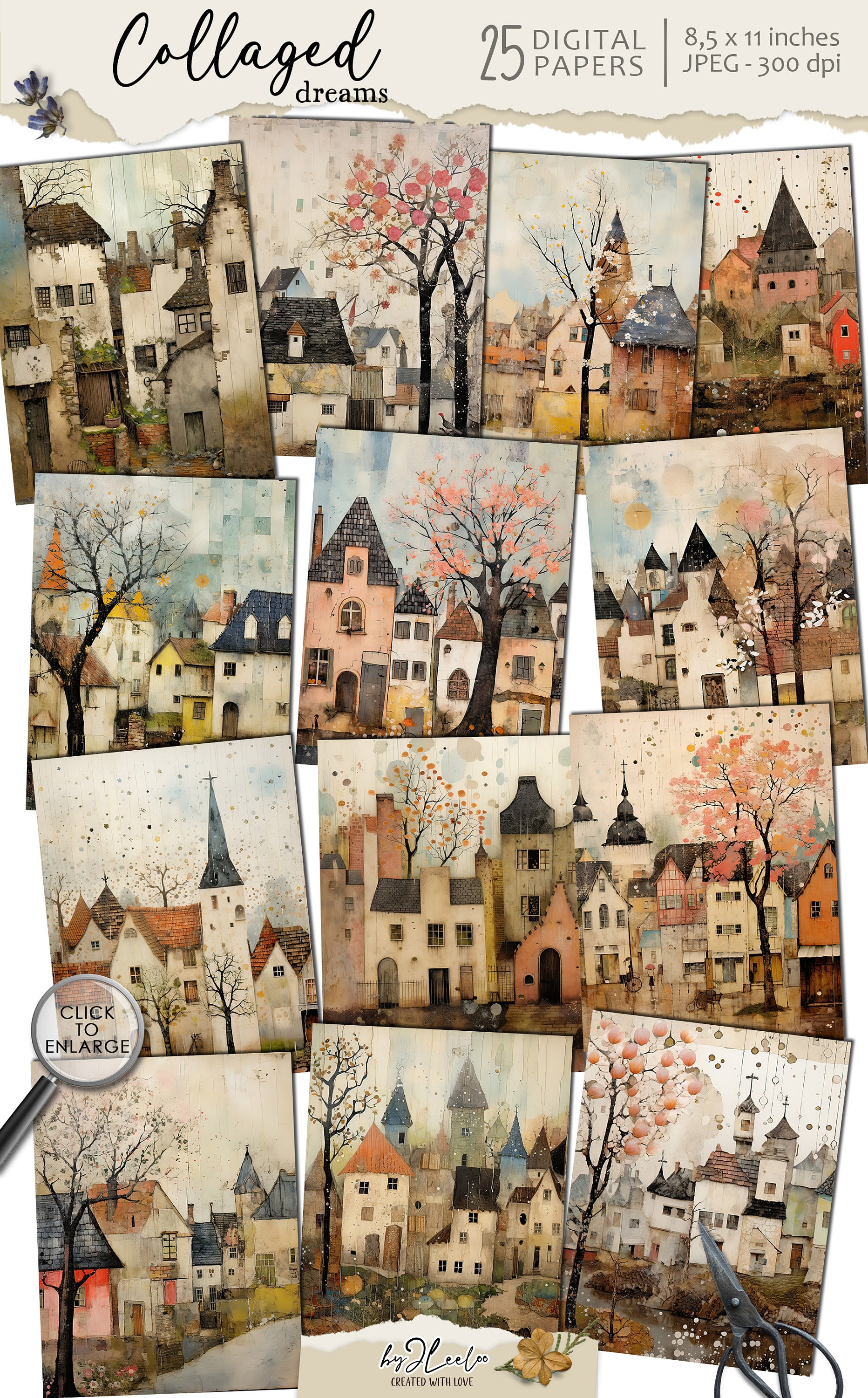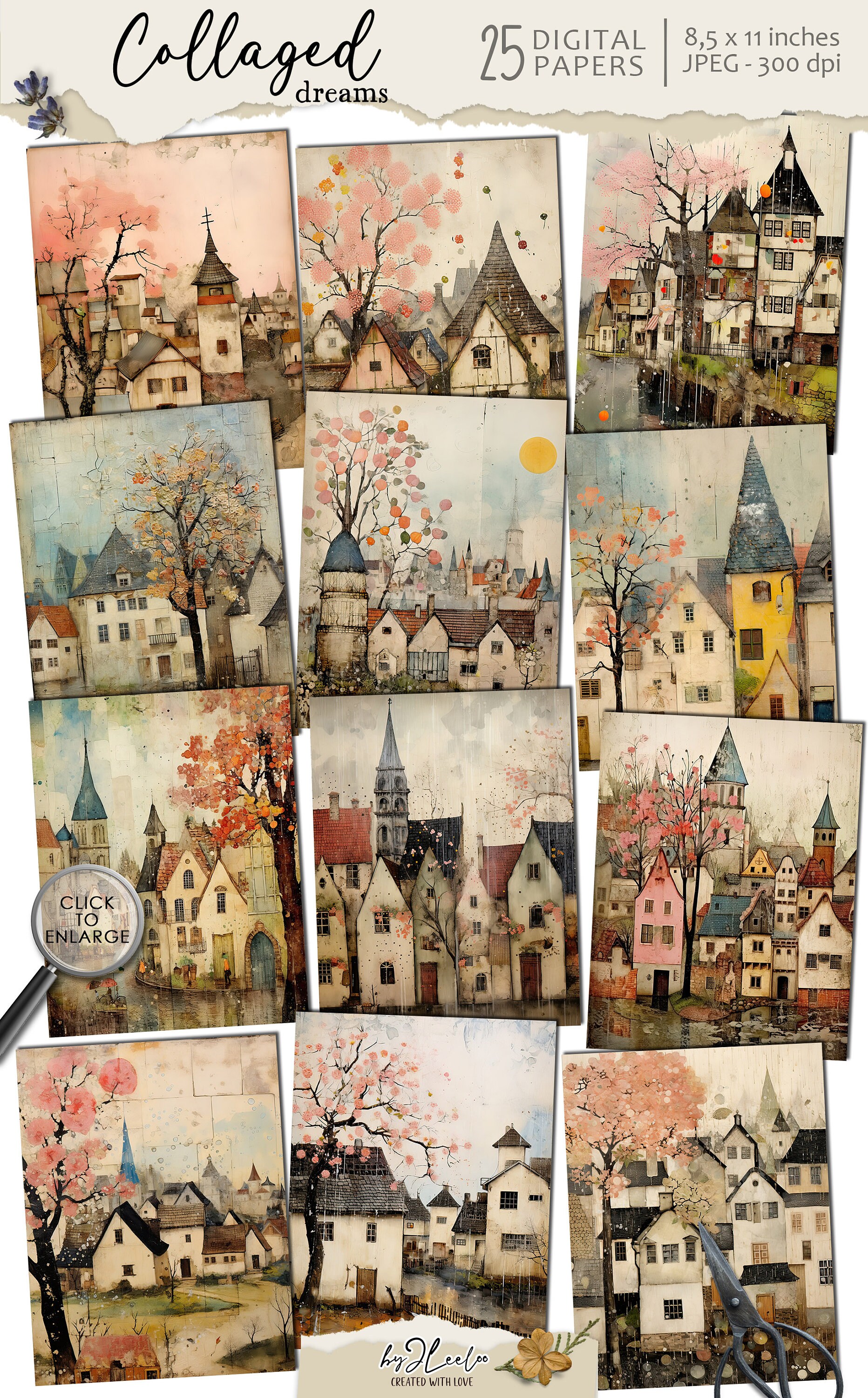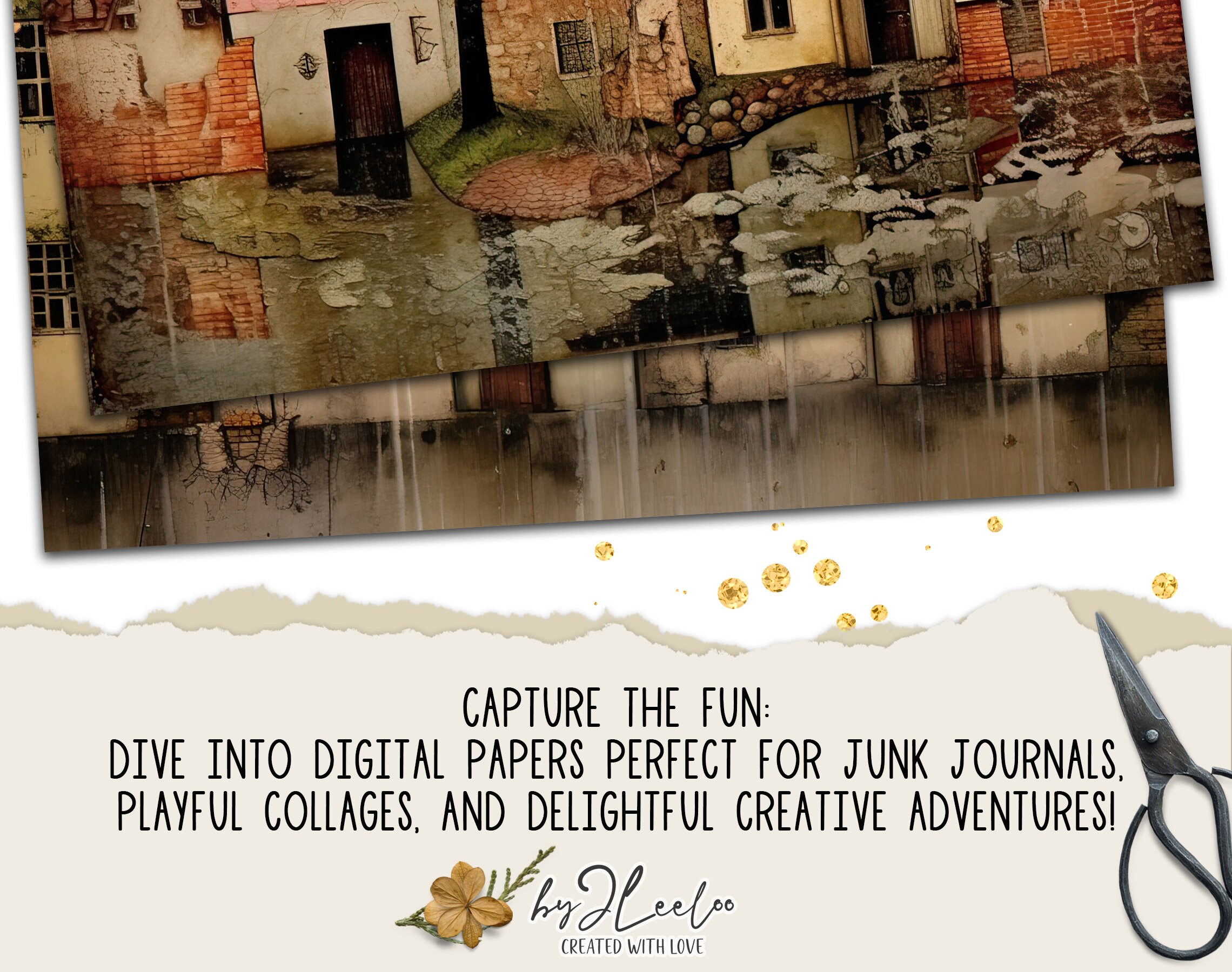 COLLAGED DREAMS vintage painting collage | Junk Journal pages background Distressed grunge card making collage digital ephemera | pp689