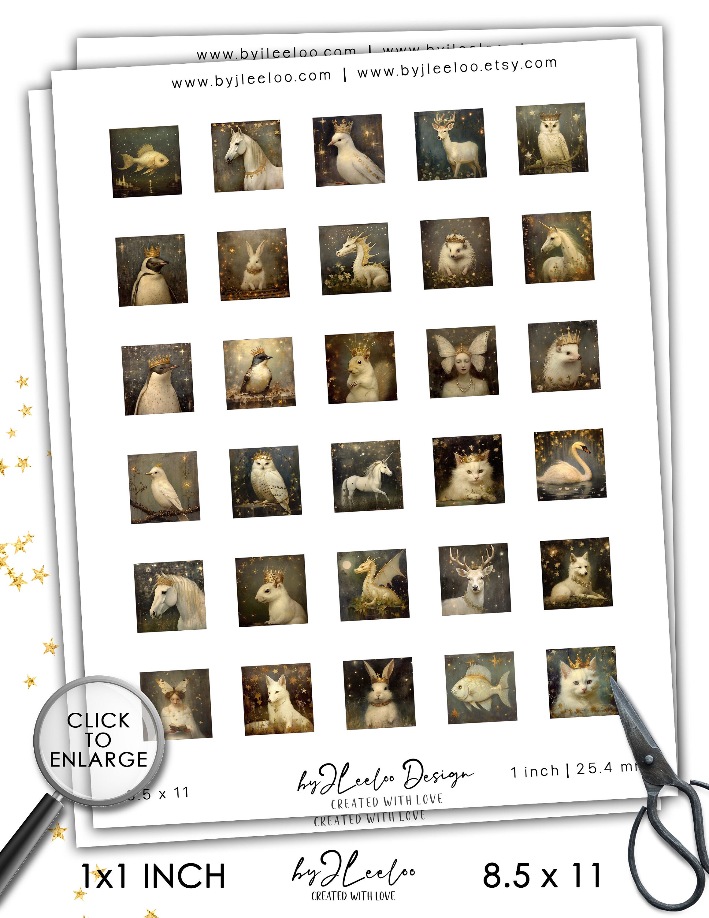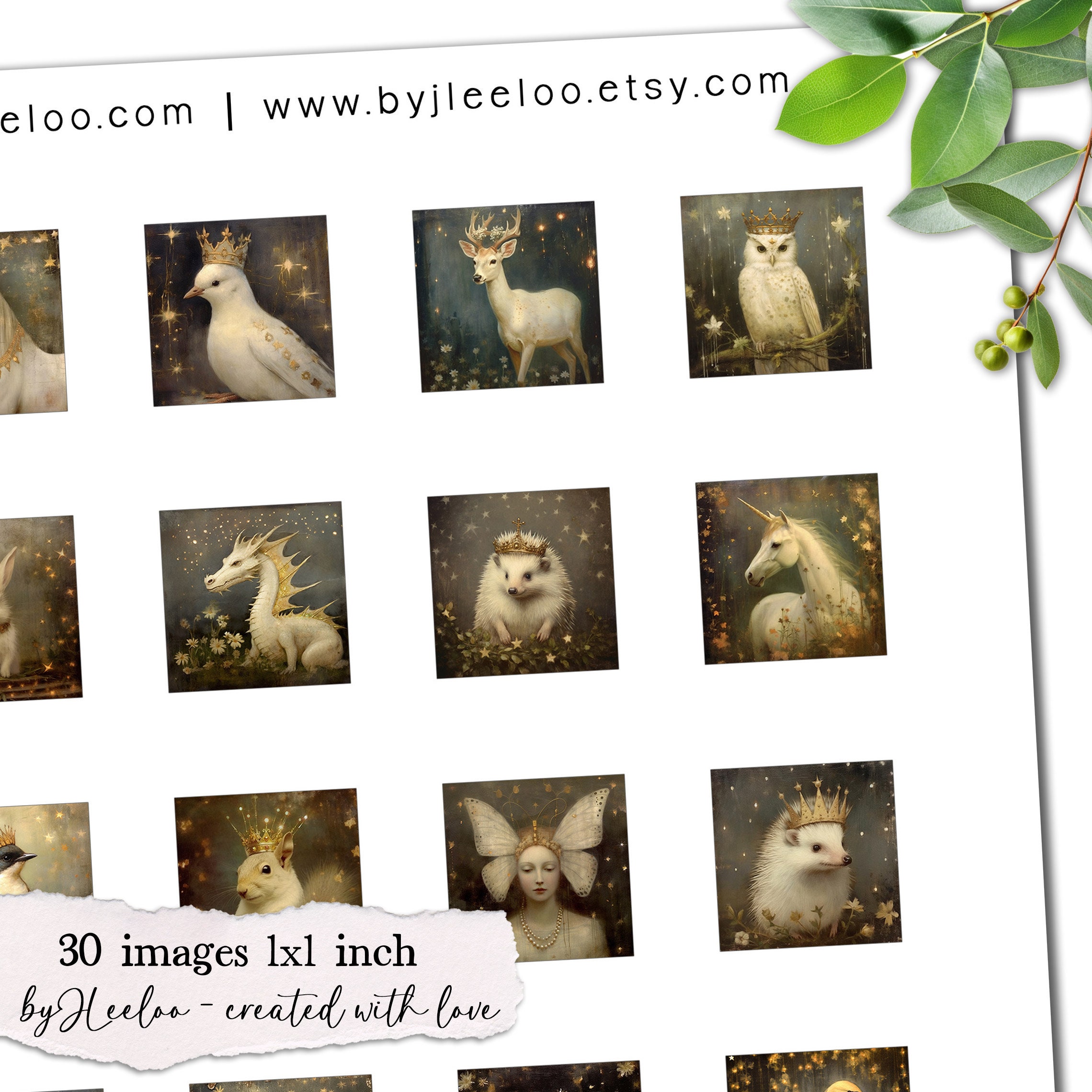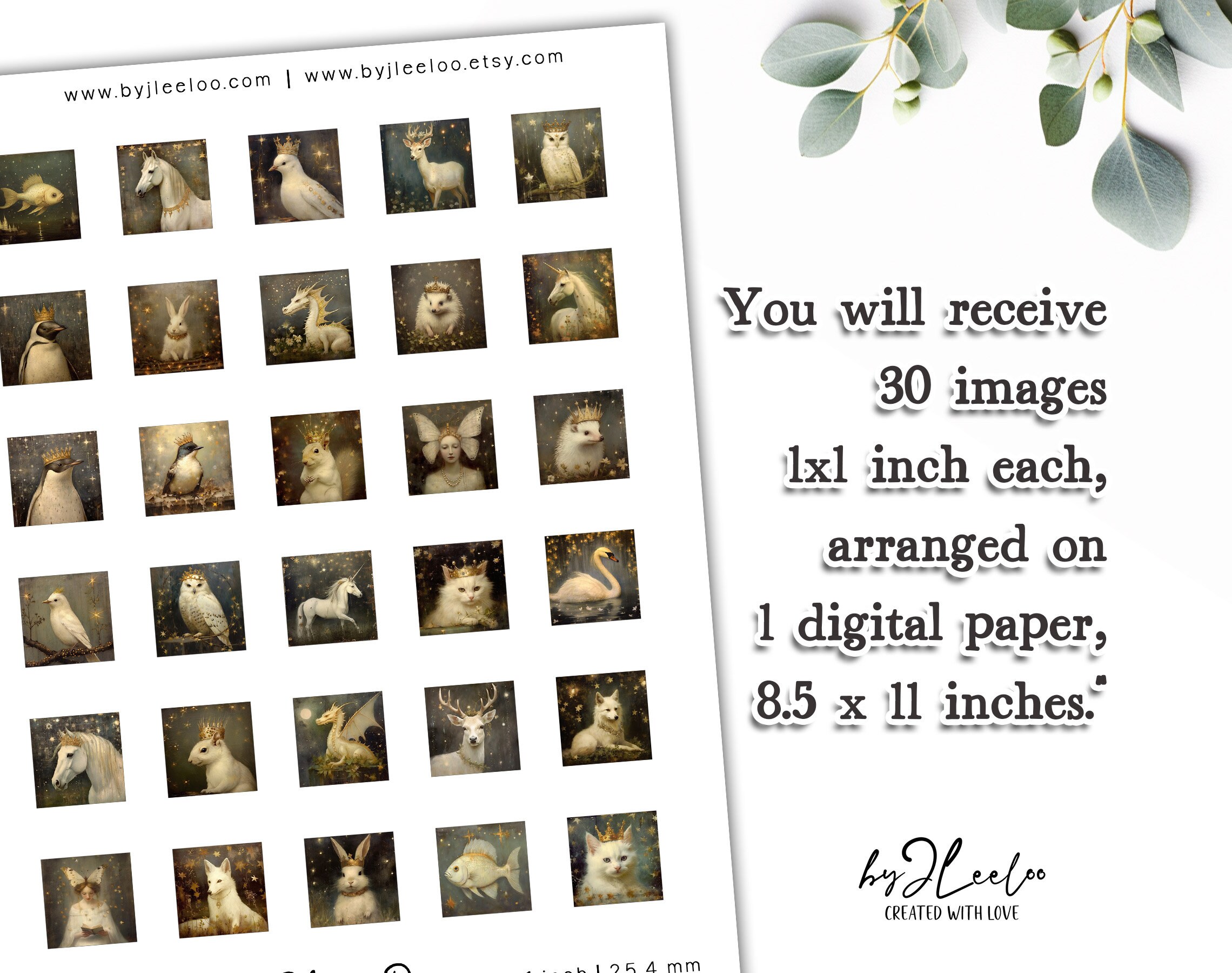 DREAMY ZOOLOGY 1 inch printable | Fantastic creatures supplies square pendant, bezel trays, glass cabochon mountings, cameo settings | qu568