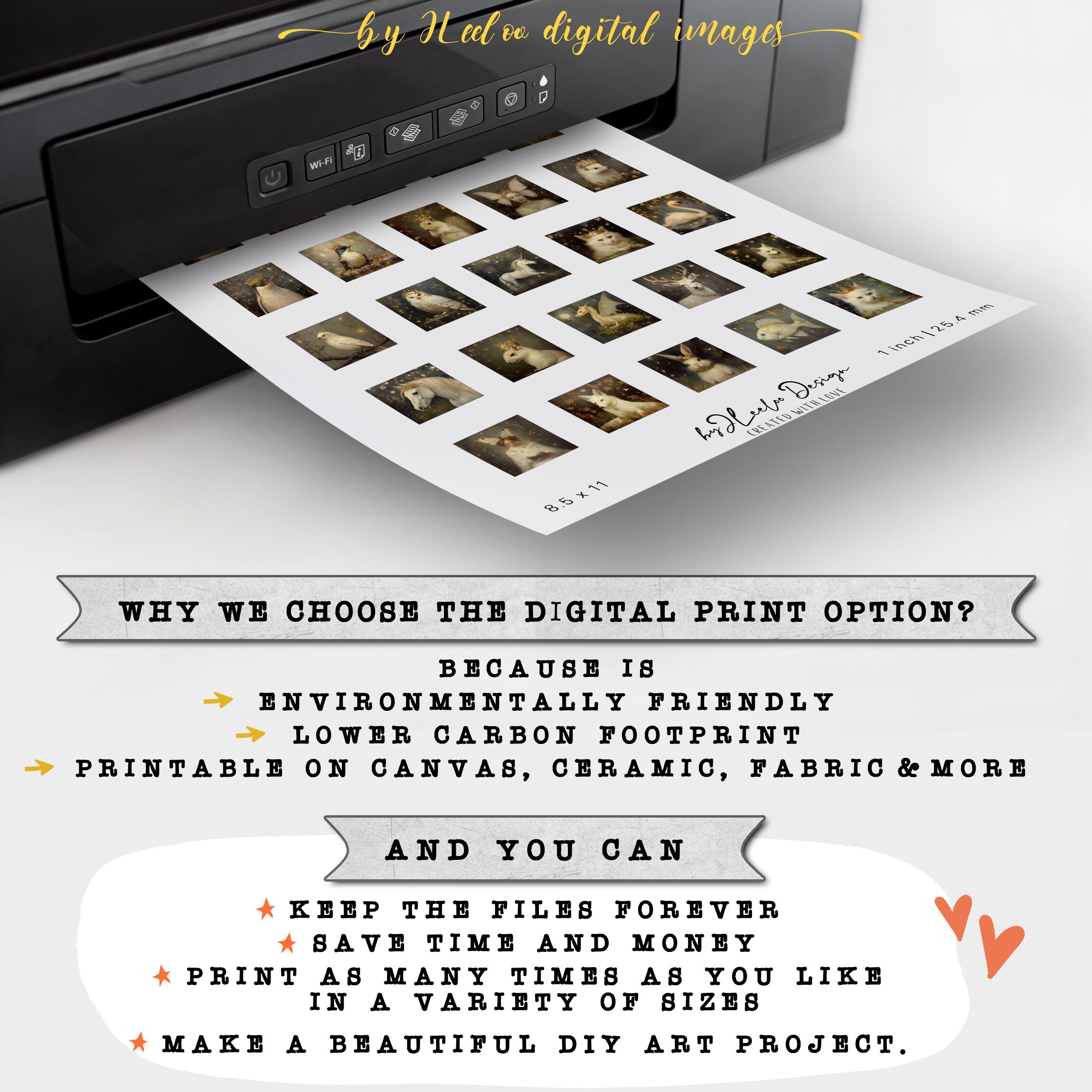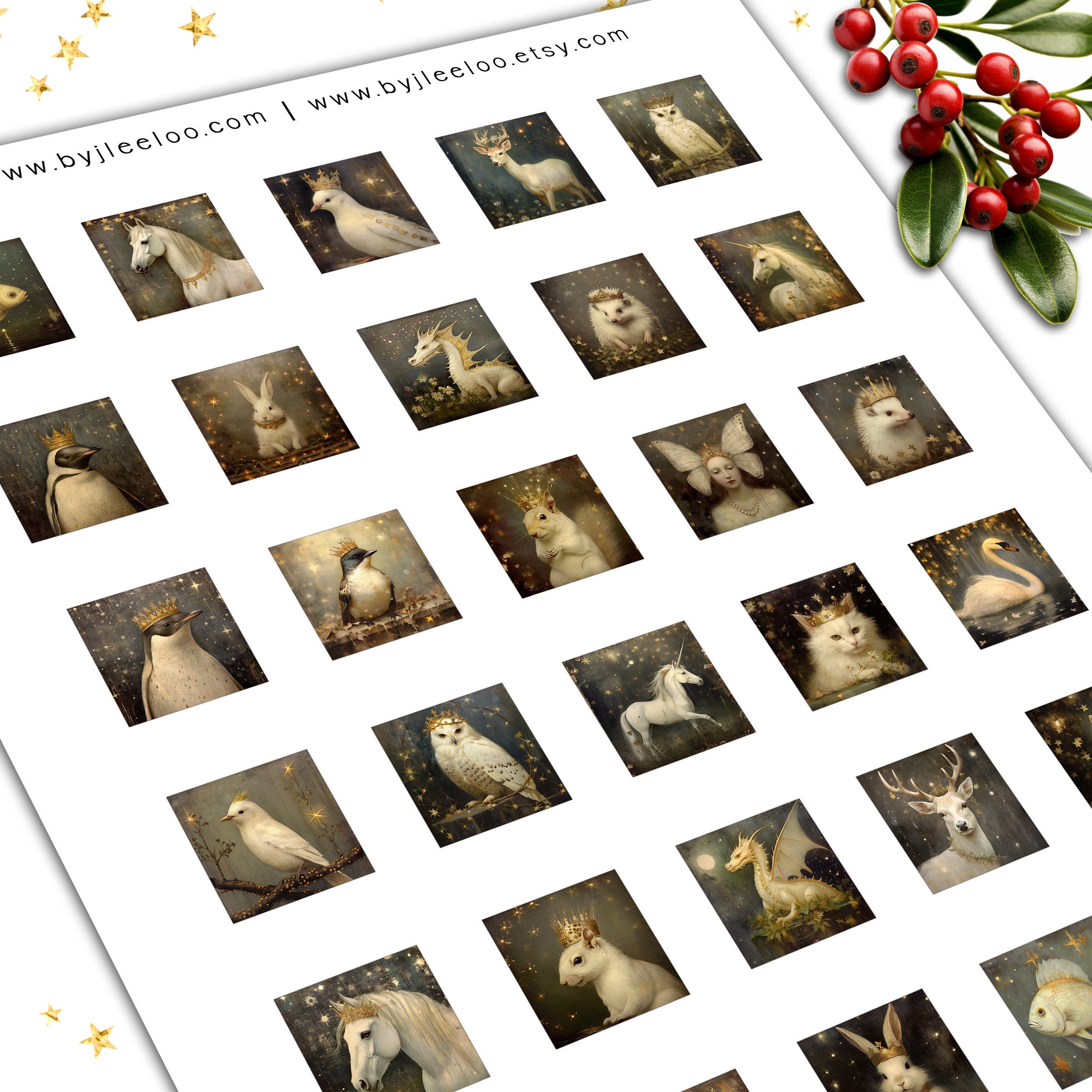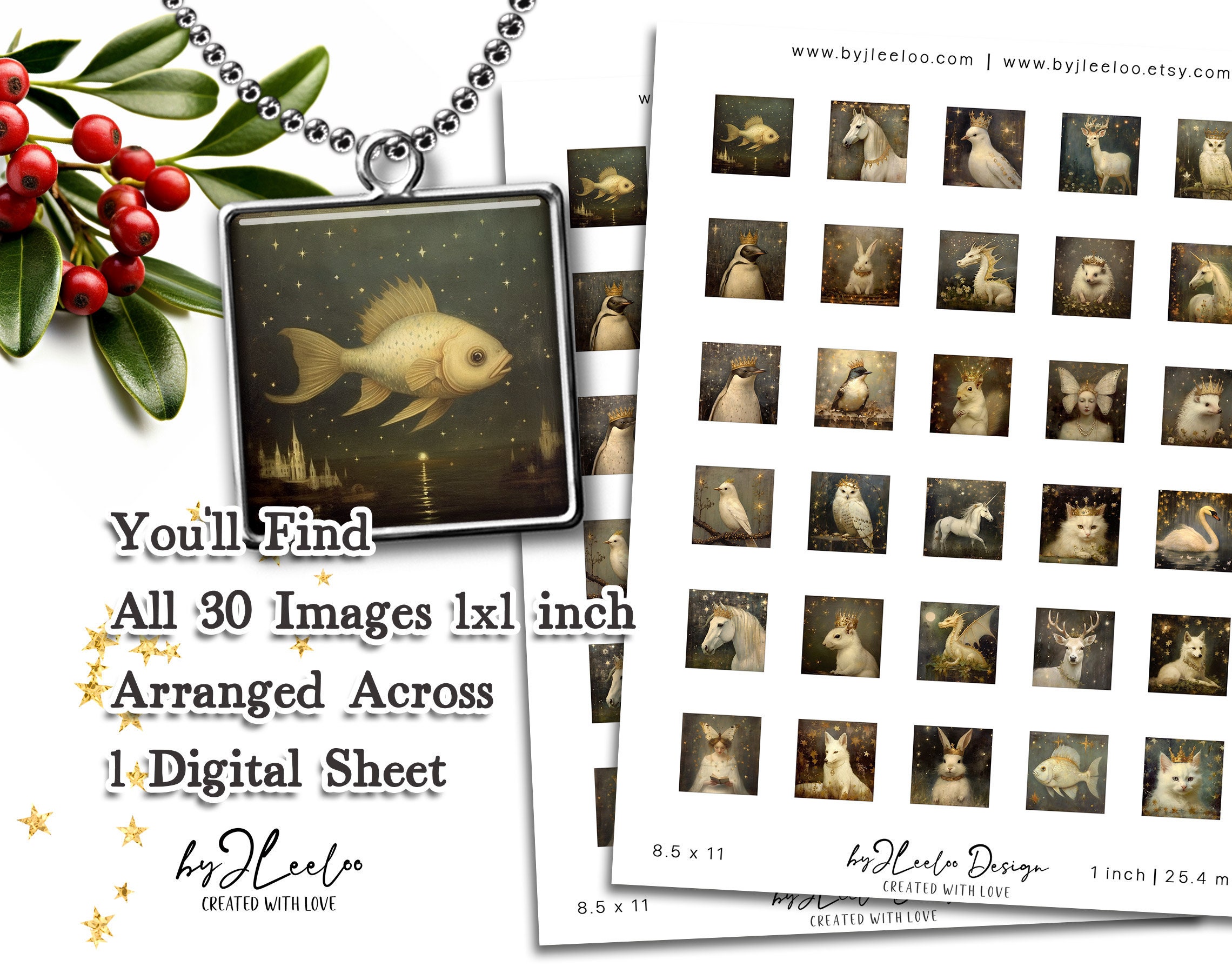 DREAMY ZOOLOGY 1 inch printable | Fantastic creatures supplies square pendant, bezel trays, glass cabochon mountings, cameo settings | qu568