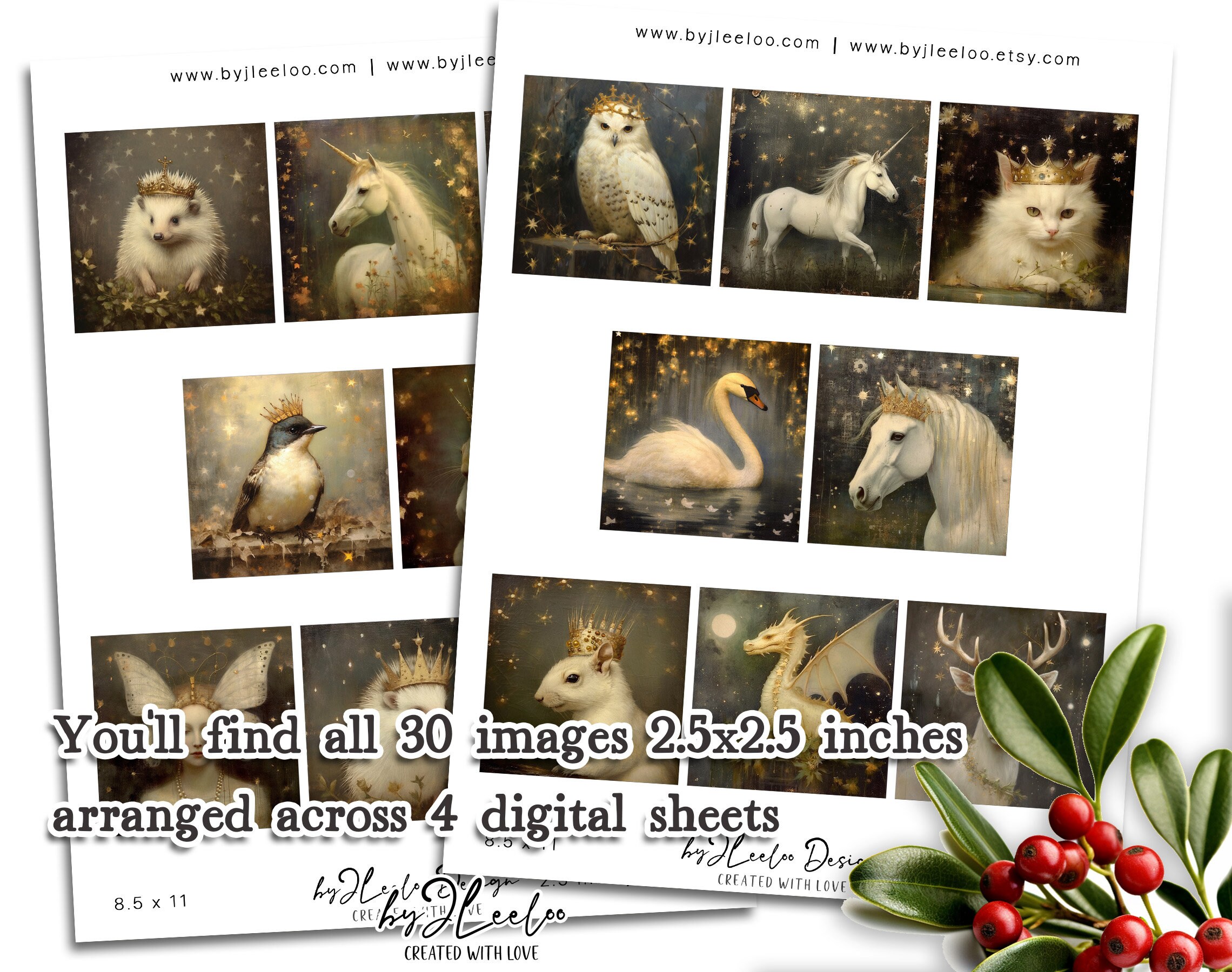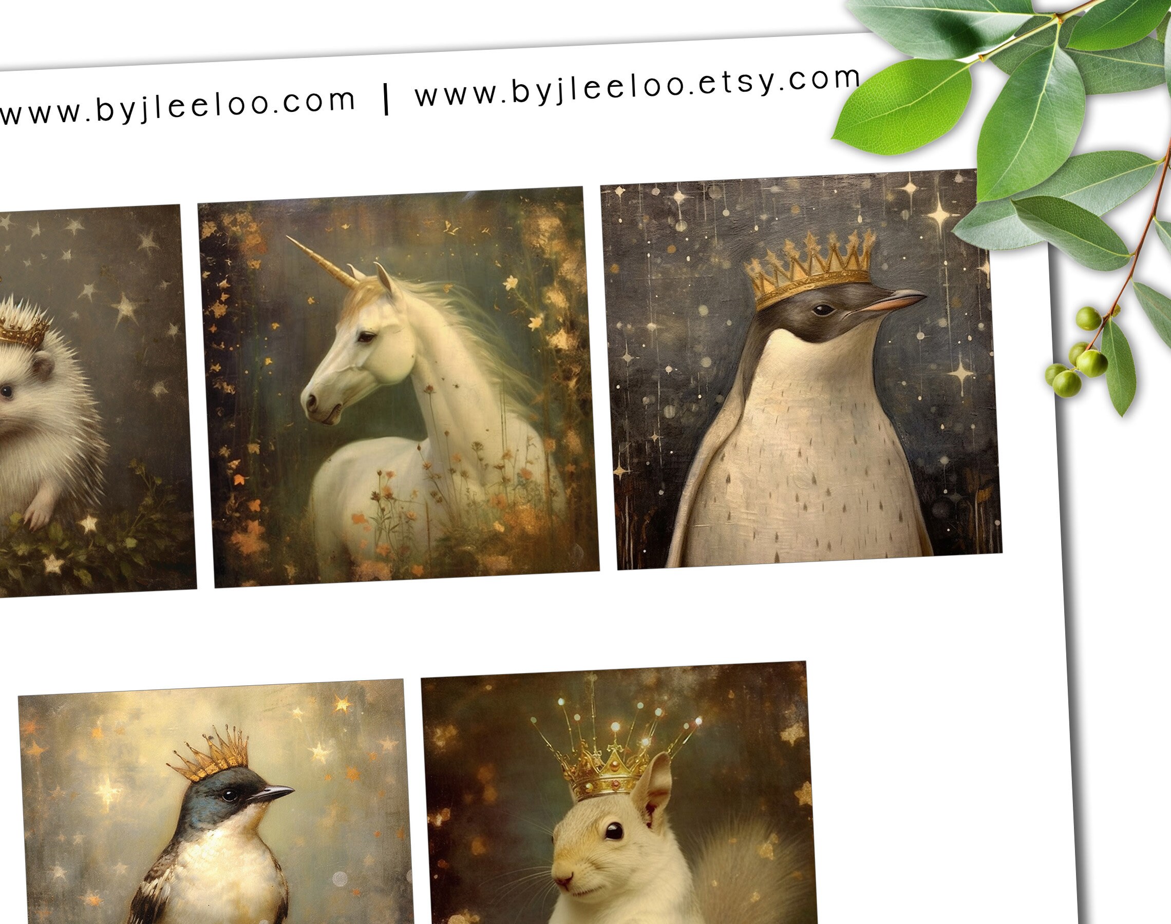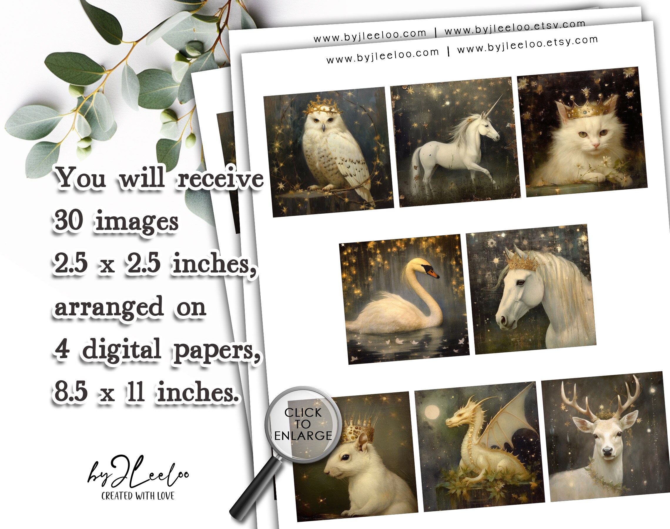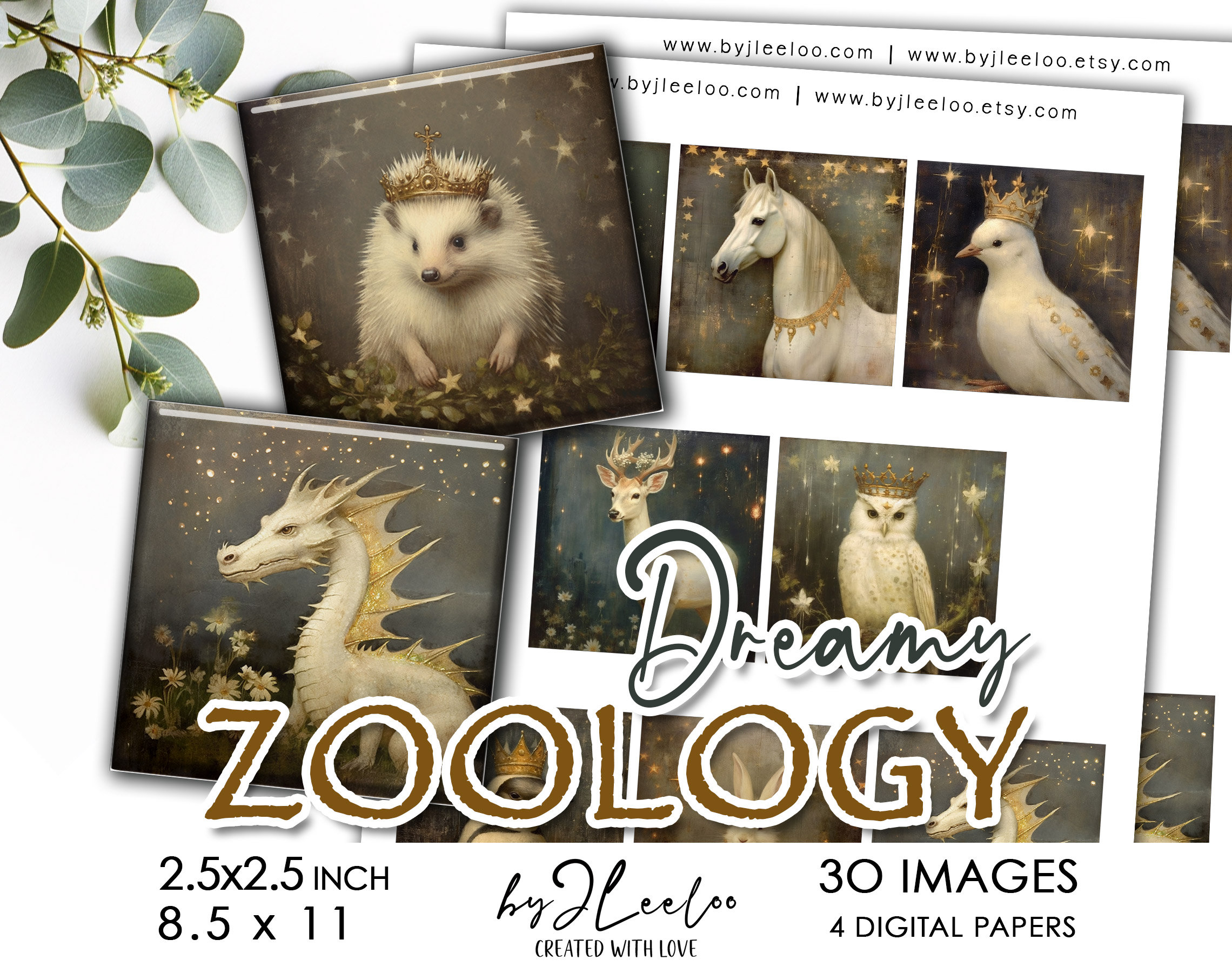 DREAMY ZOOLOGY 2.5x2.5 inch printable | Fantastic Creature supplies square pendants, charm images, glass cabochon mountings, cameo | qu571