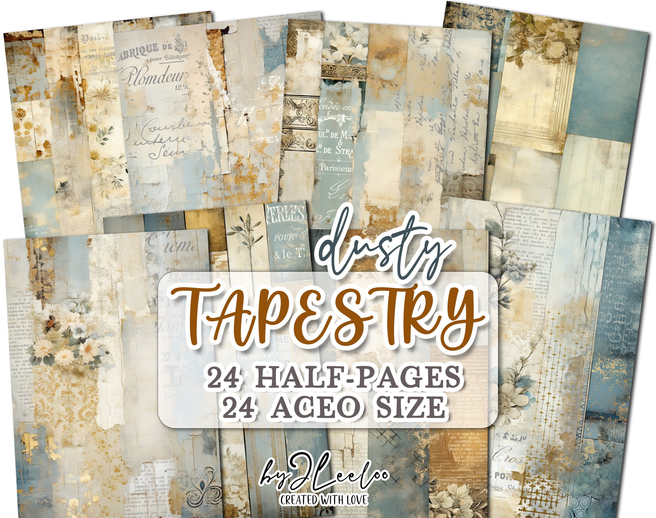 DUSTY TAPESTRY half pages french printable | junk journal Mixed Media supplies | Distressed dirty paper card making collage diary | pp717