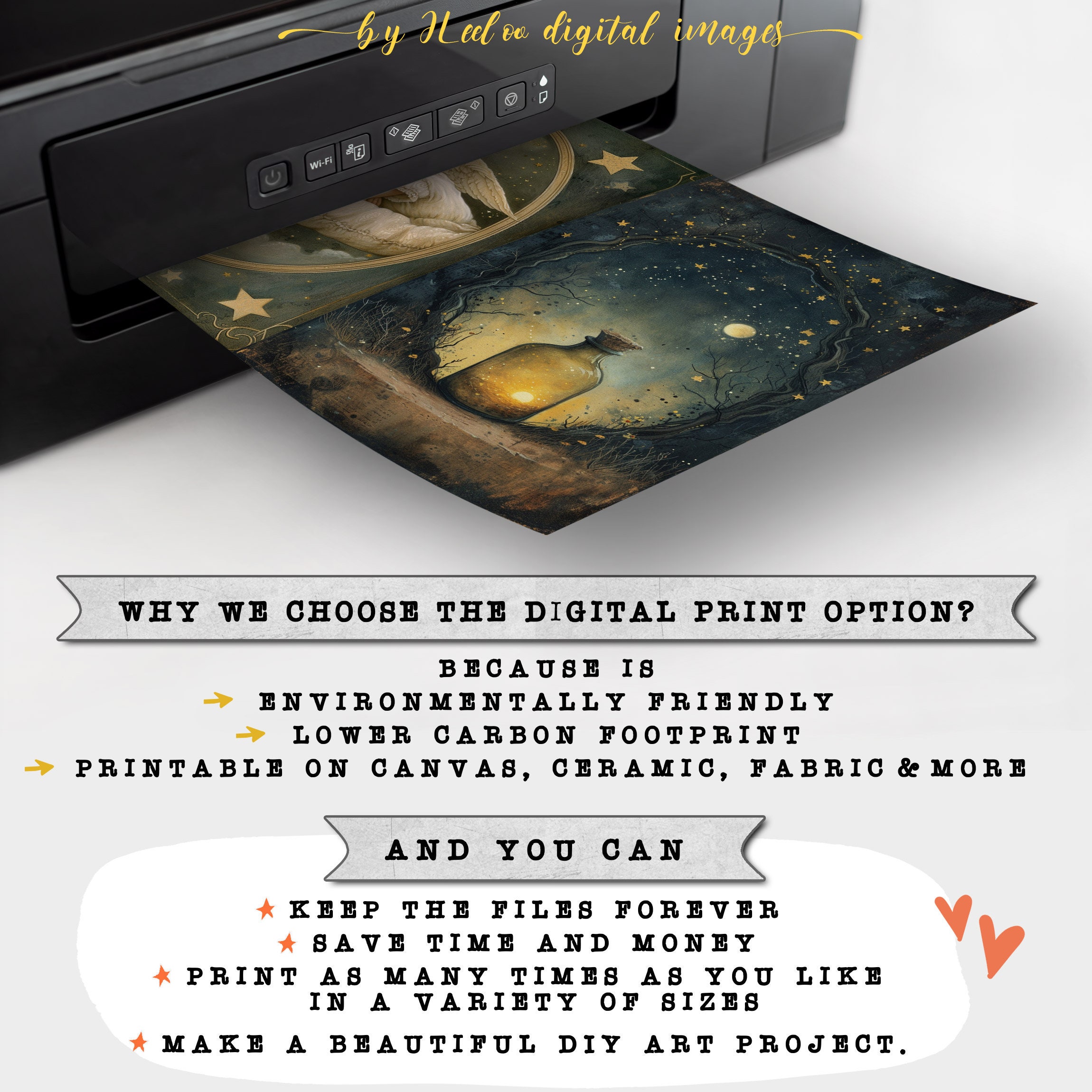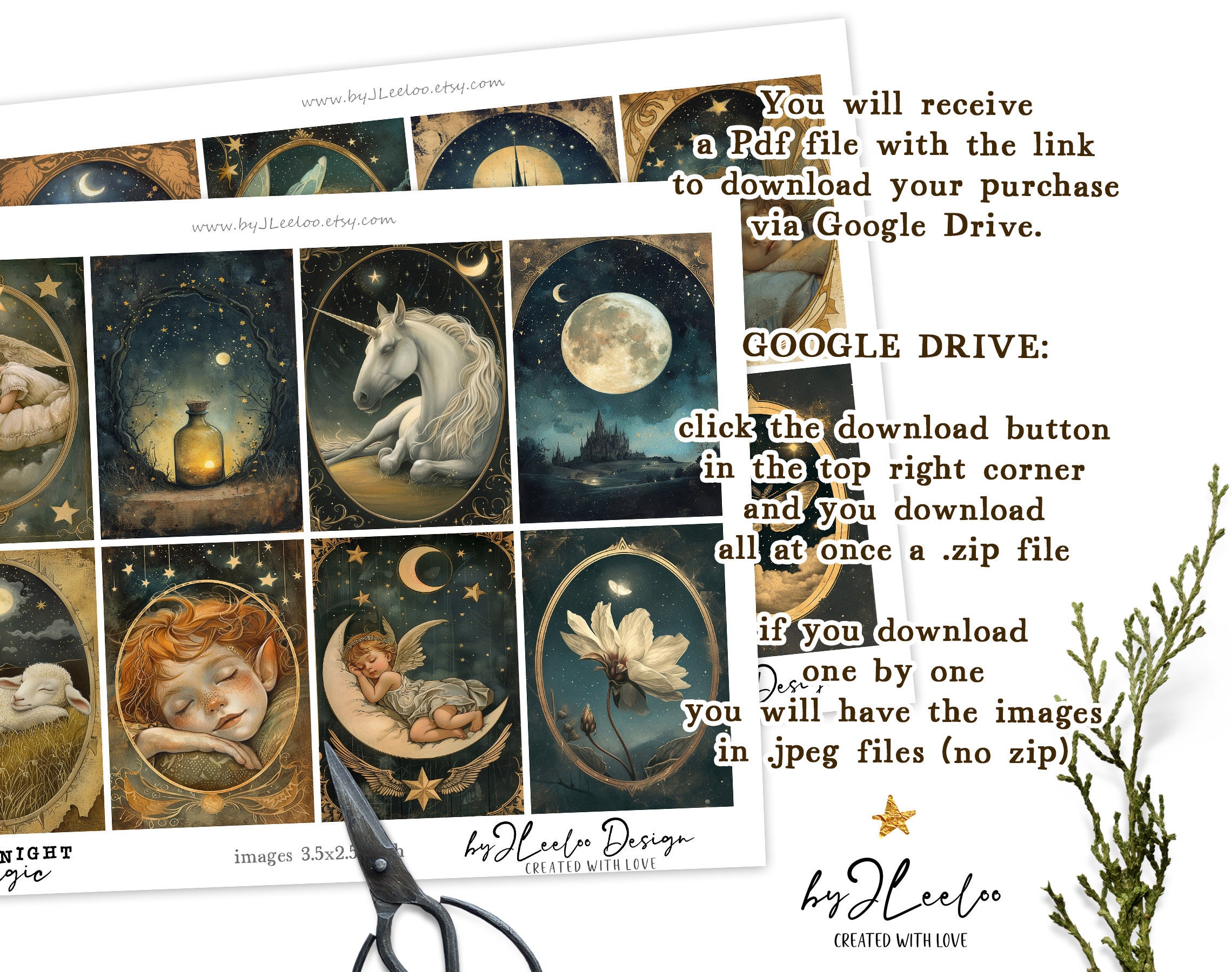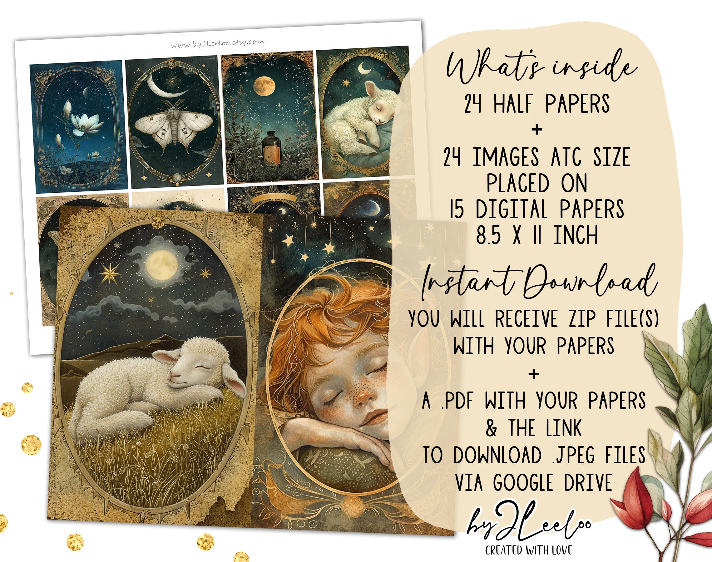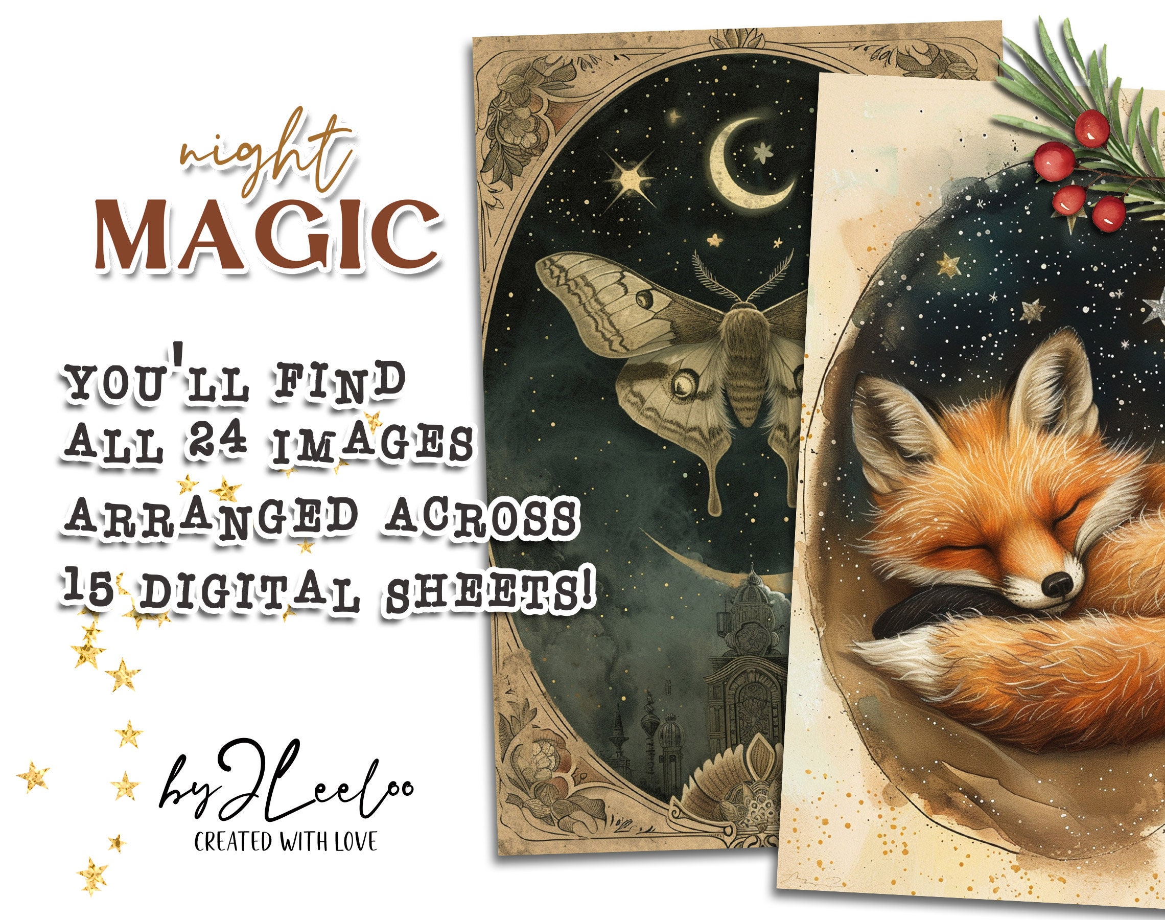 MAGIC NIGHT half pages print for junk journal Mixed Media | Aceo mini book vintage supplies card making collage diary stationery DiY | pp718