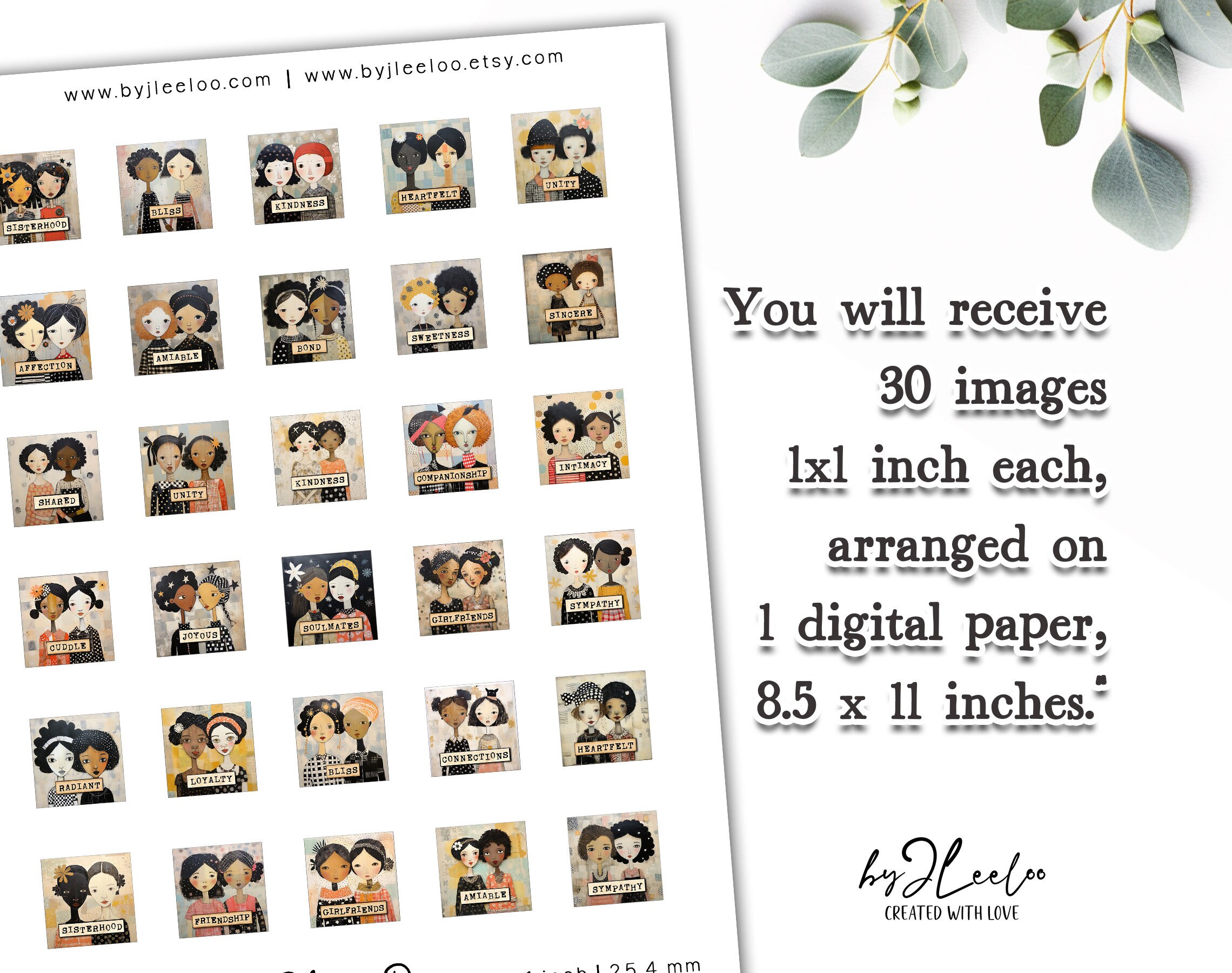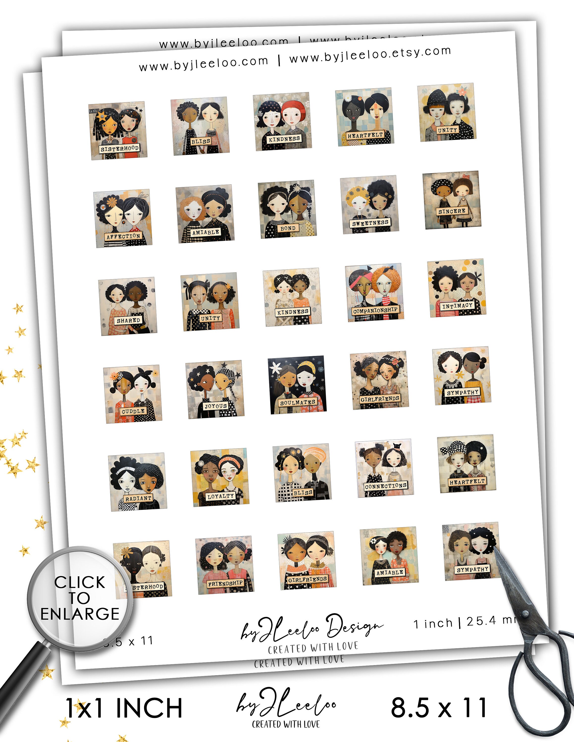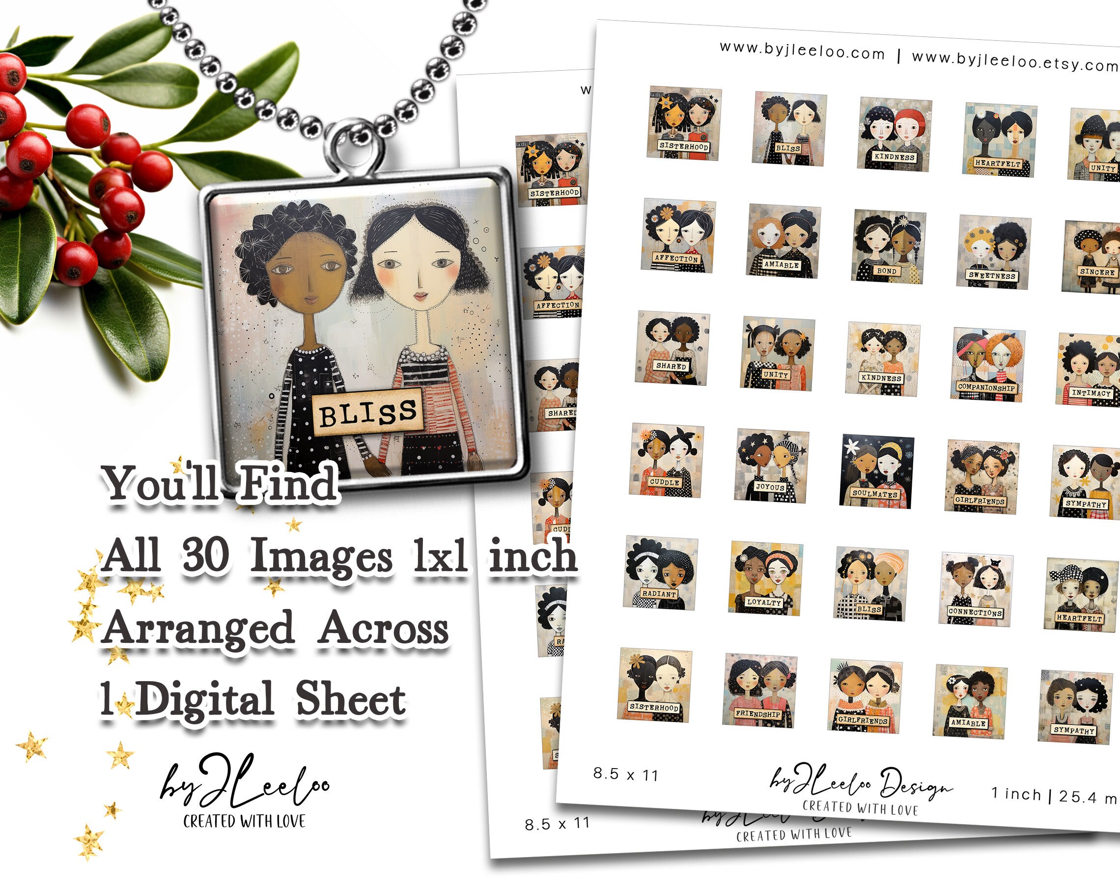BEST GIRLFRIENDS 1x1 inch printable | supplies square pendants, charm for girls, gift for friend | pin magnet craft card altered art | qu586