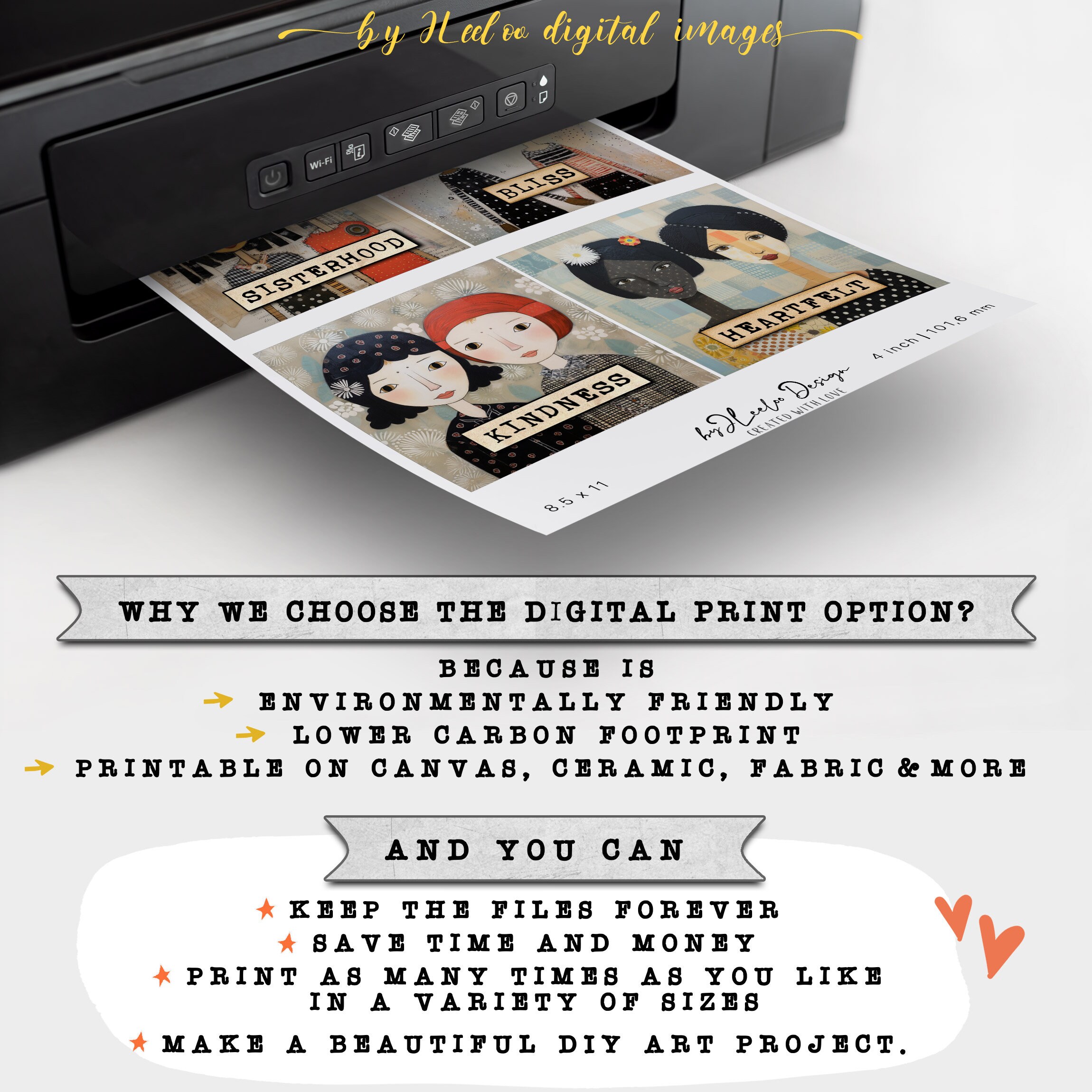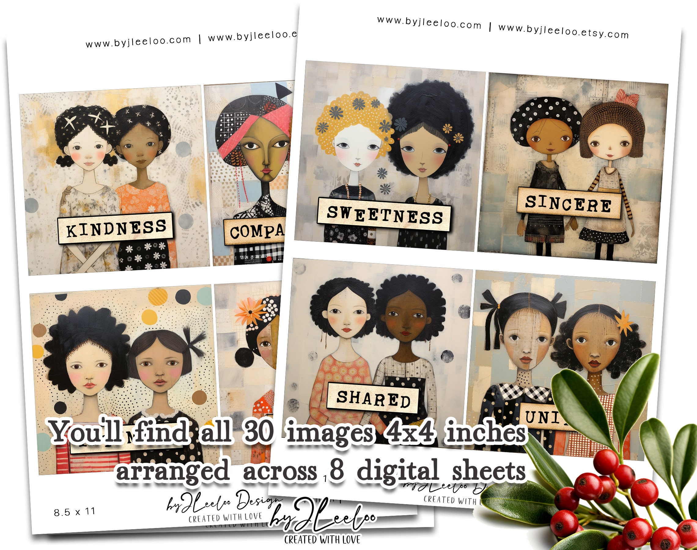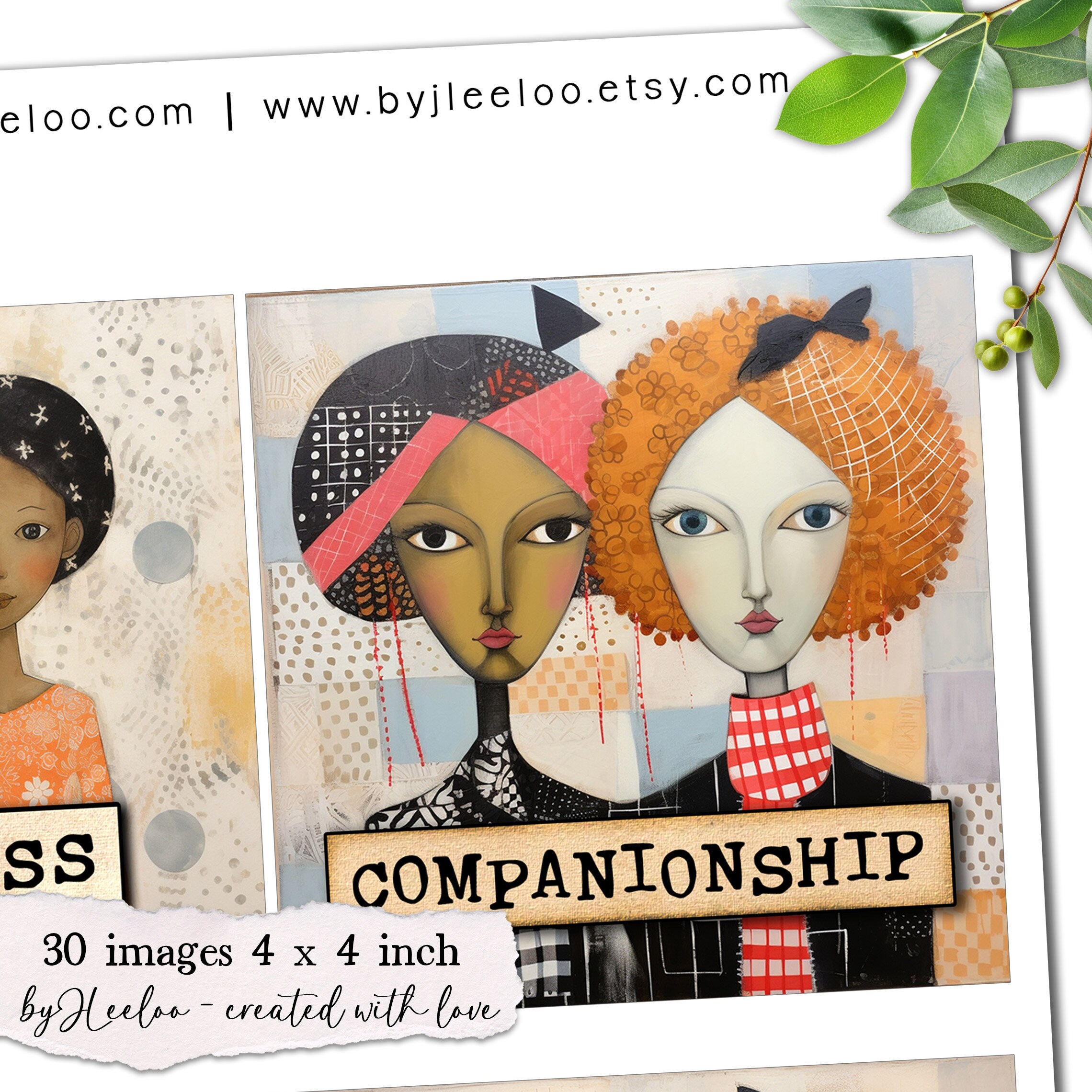BEST GIRLFRIENDS 4x4 inch printable | Folk art supplies for coaster home decoration mirror magnet and craft | junk journal digital | qu591