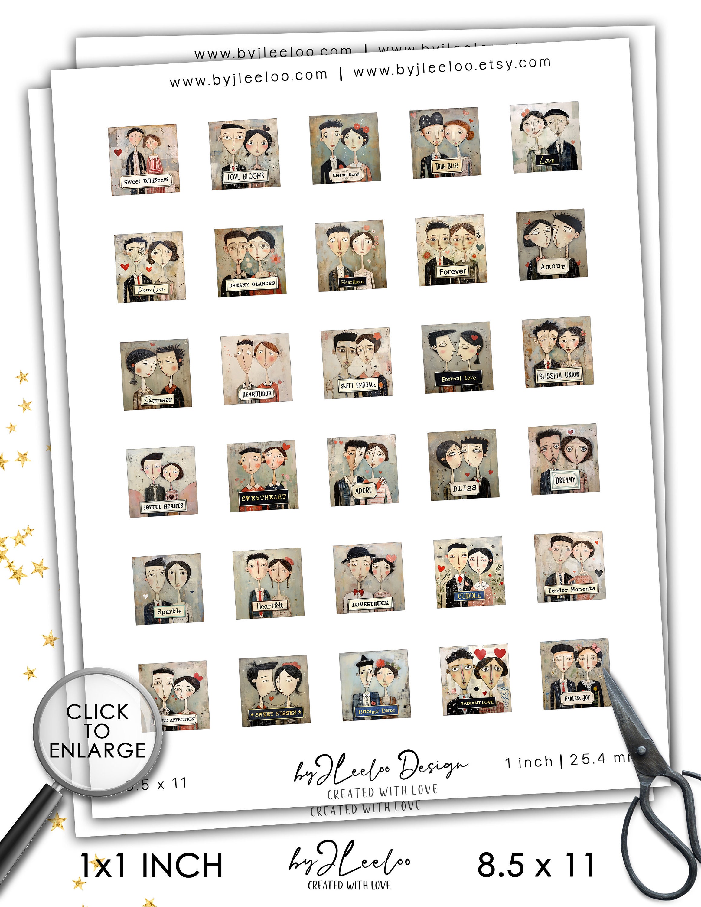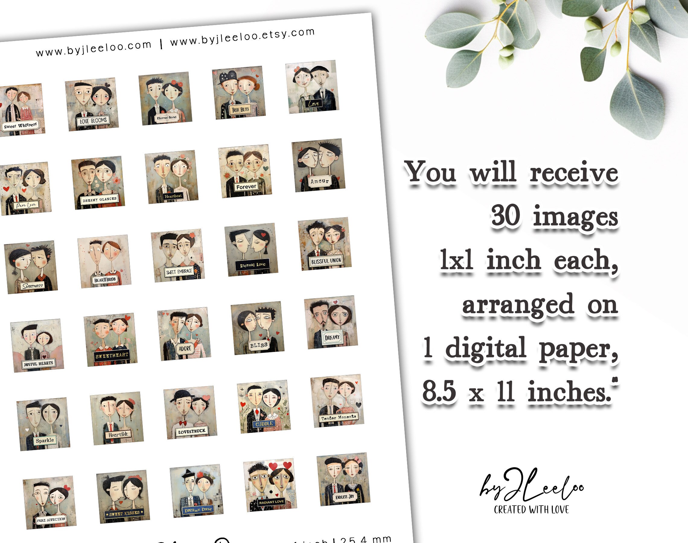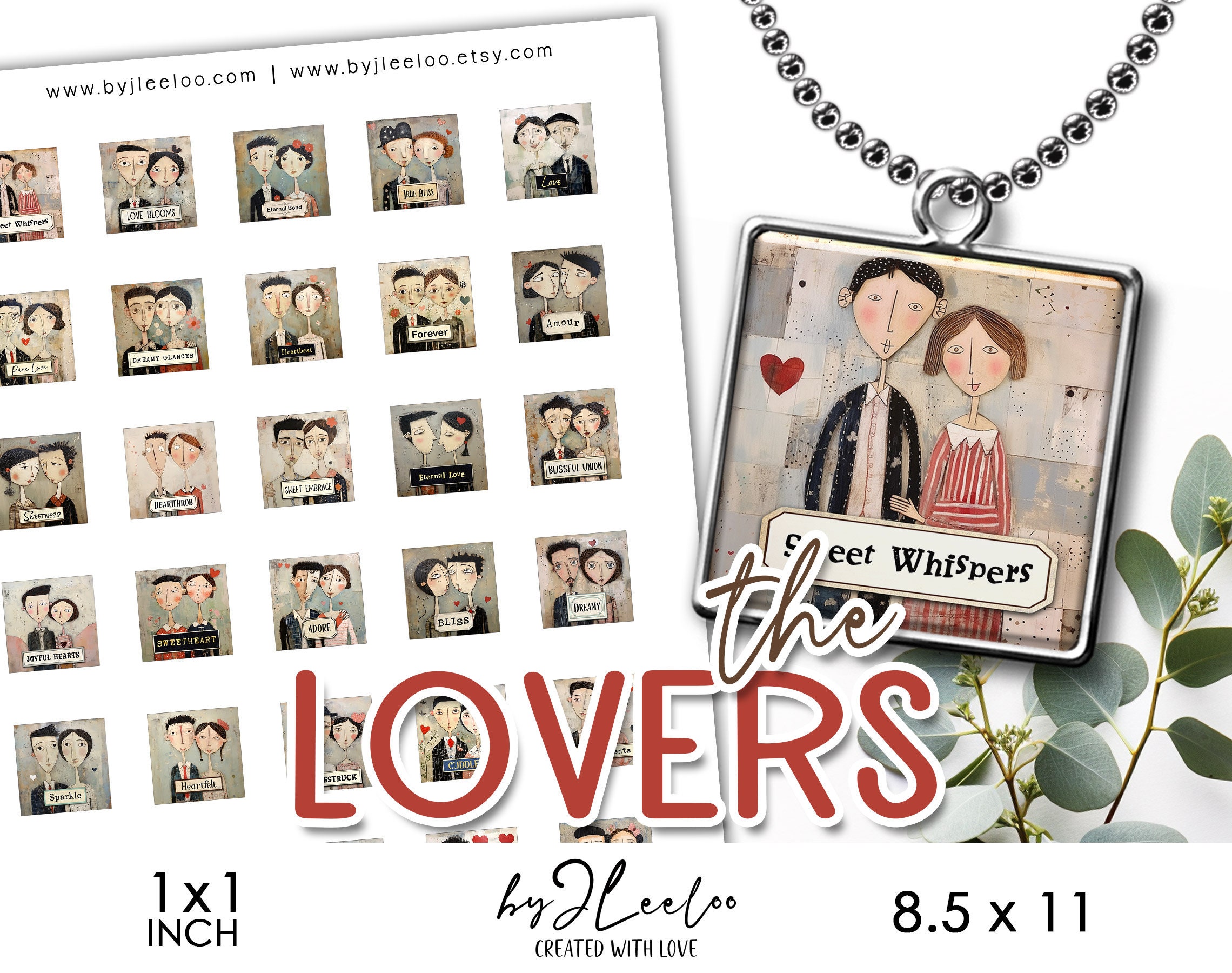 THE LOVERS 1x1 inch printable | supplies square pendants, bezel trays, glass charm, magnet, sticker, tag | Altered art journal craft | qu592