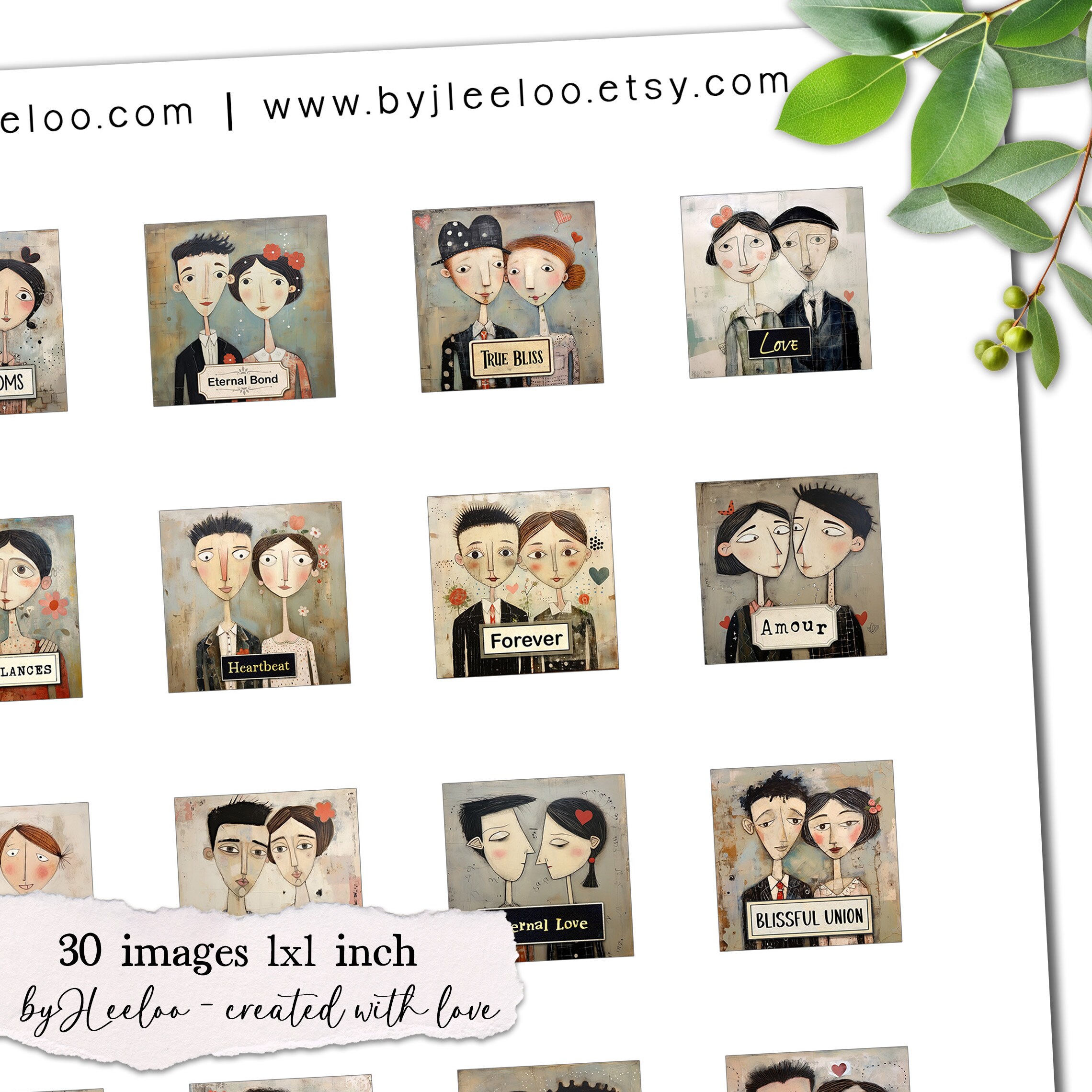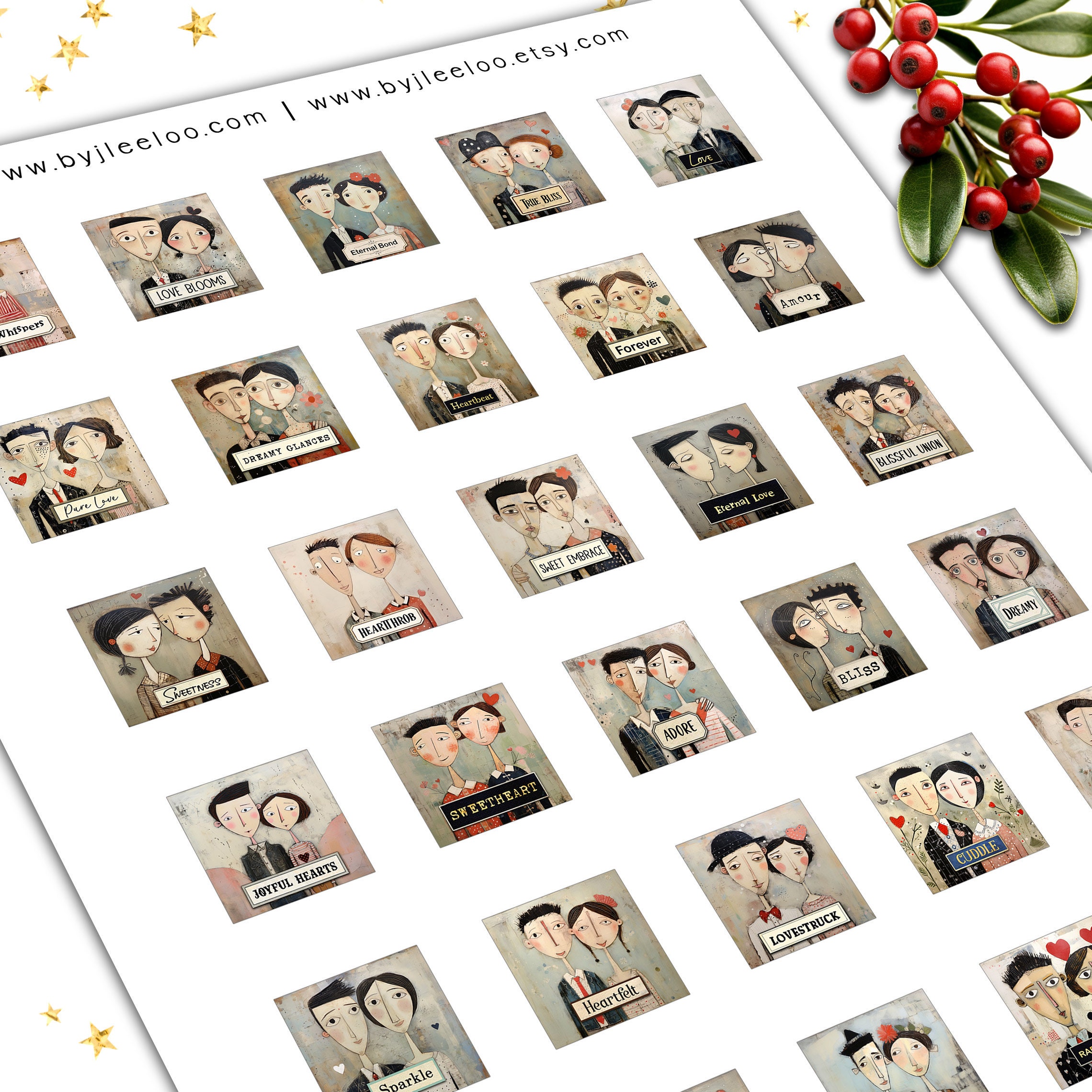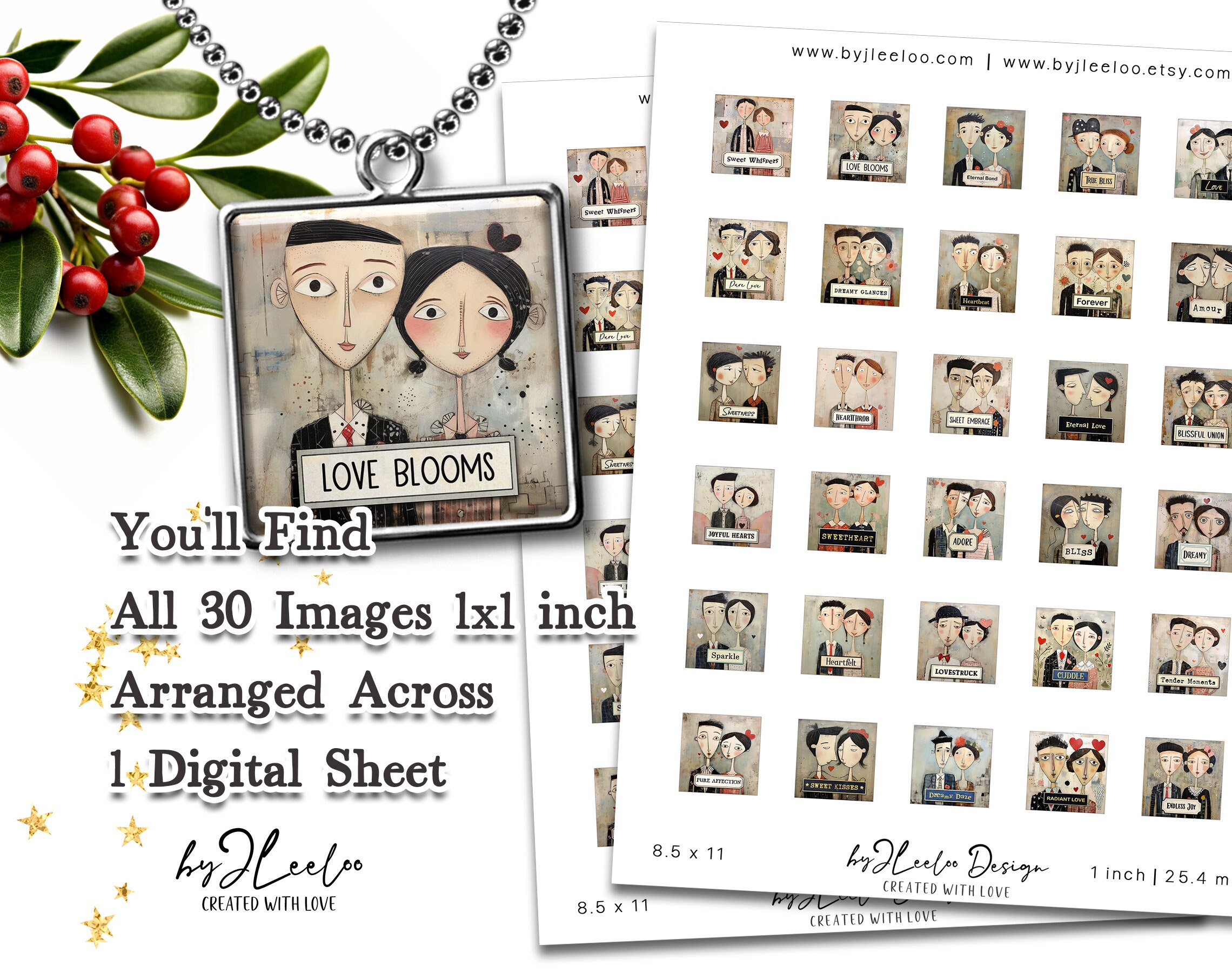 THE LOVERS 1x1 inch printable | supplies square pendants, bezel trays, glass charm, magnet, sticker, tag | Altered art journal craft | qu592