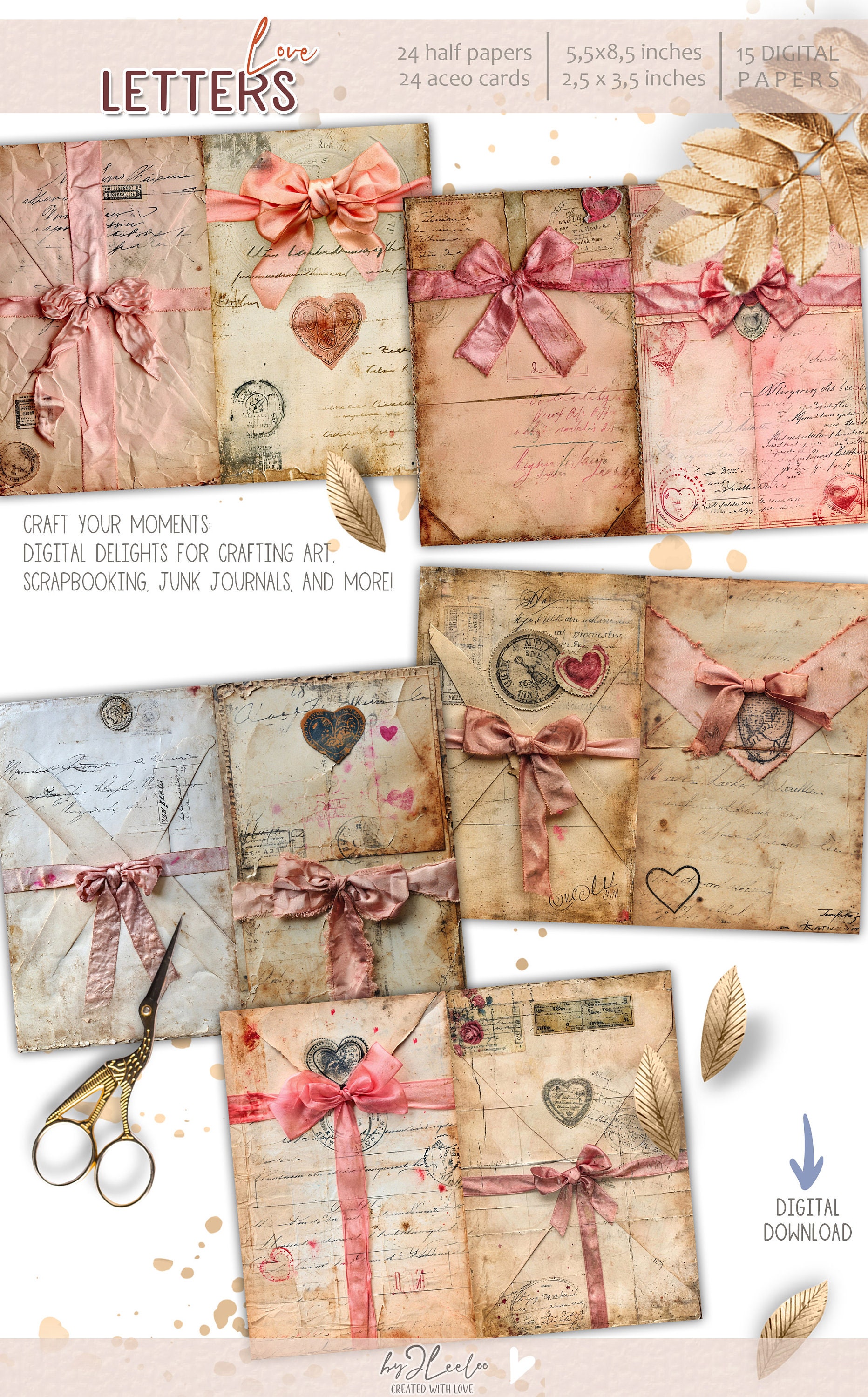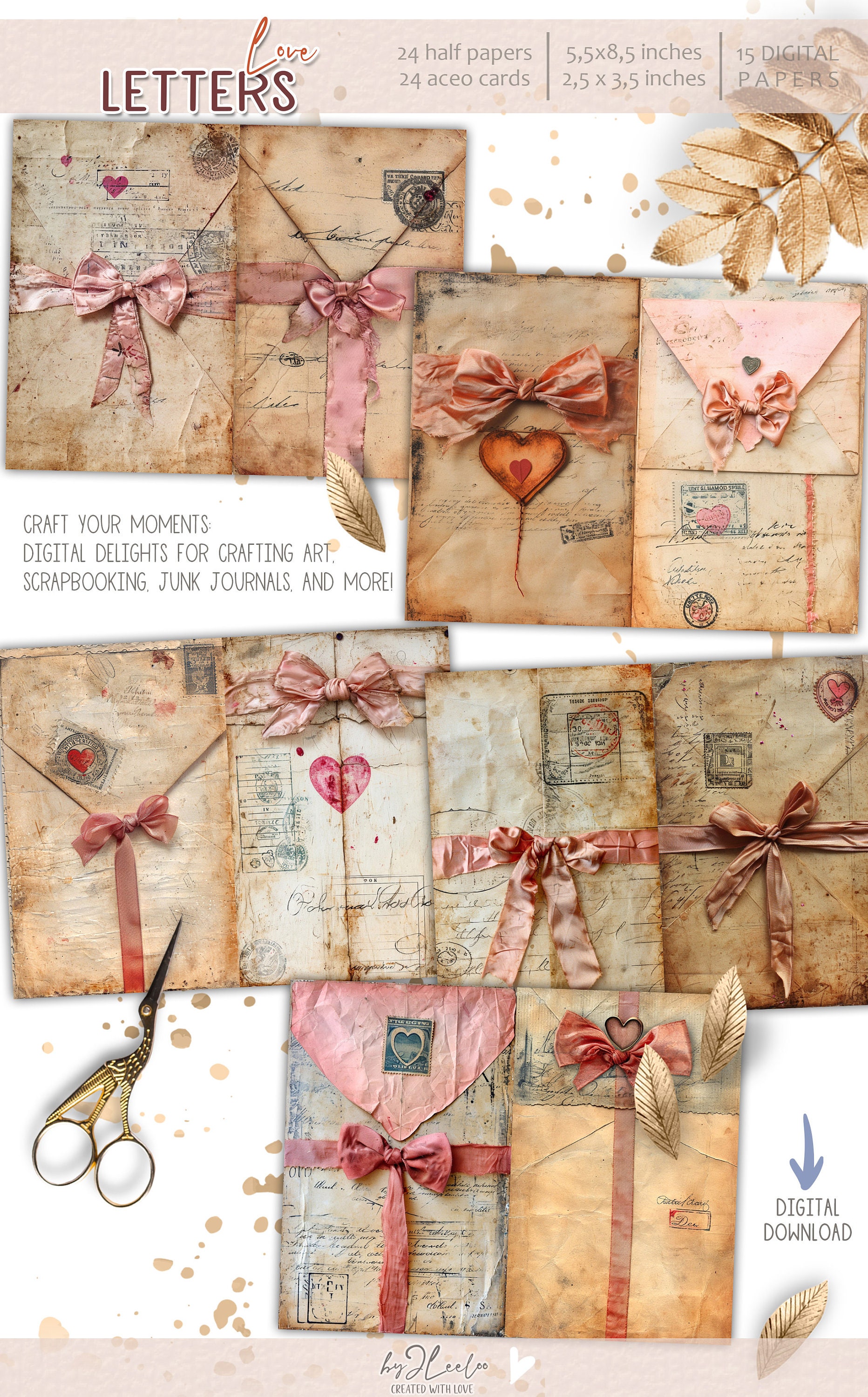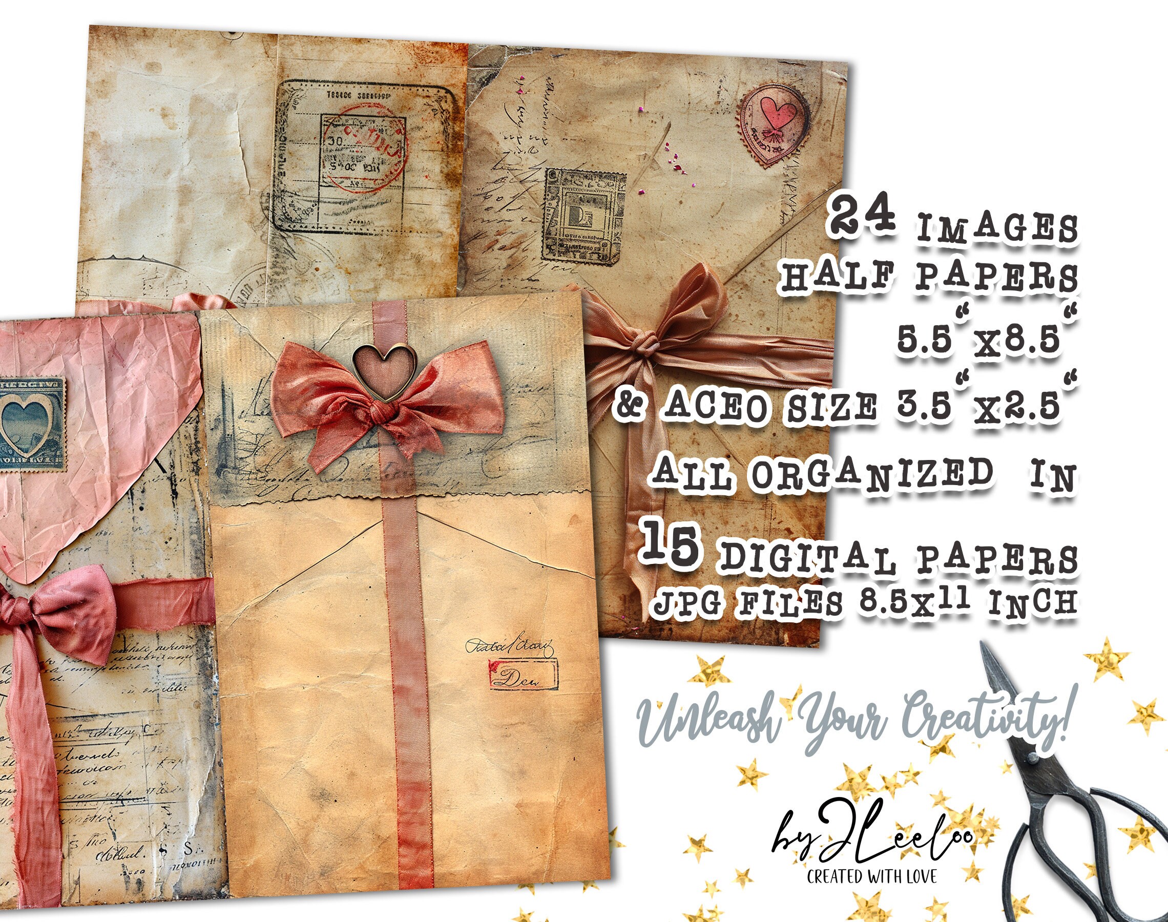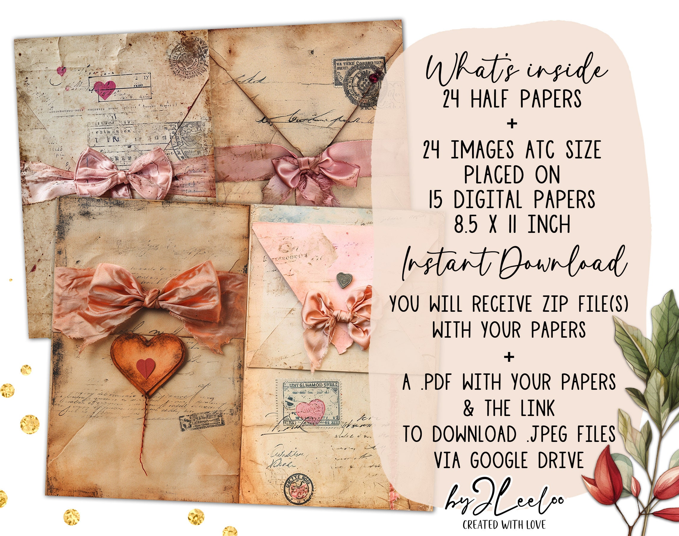 ❤️ Unveil the nostalgic charm with our Vintage Valentine's Day digital sheets collection. Featuring a delicately aged envelope, adorned with faded hues, distressed satin bow, and heartwarming stamps.
