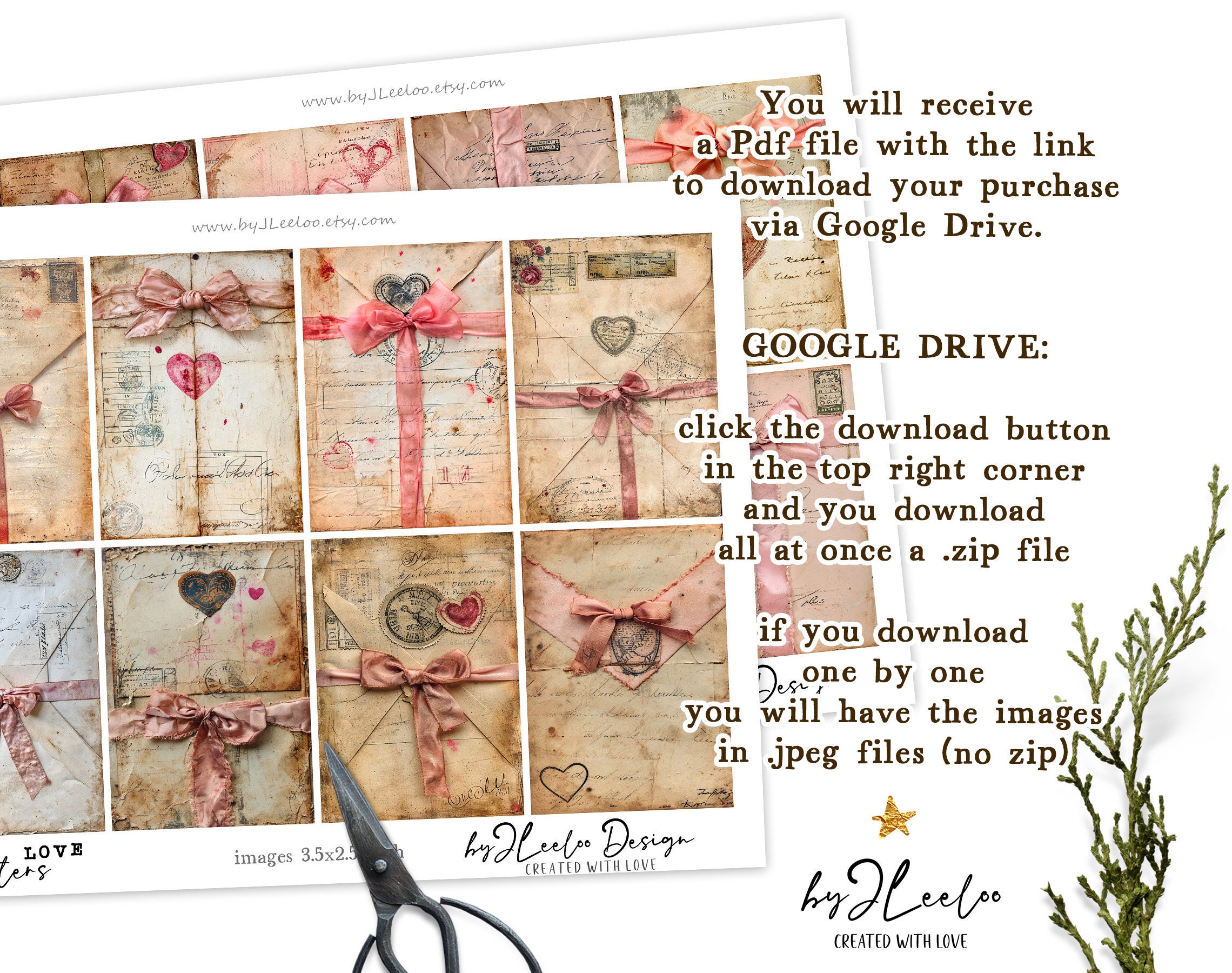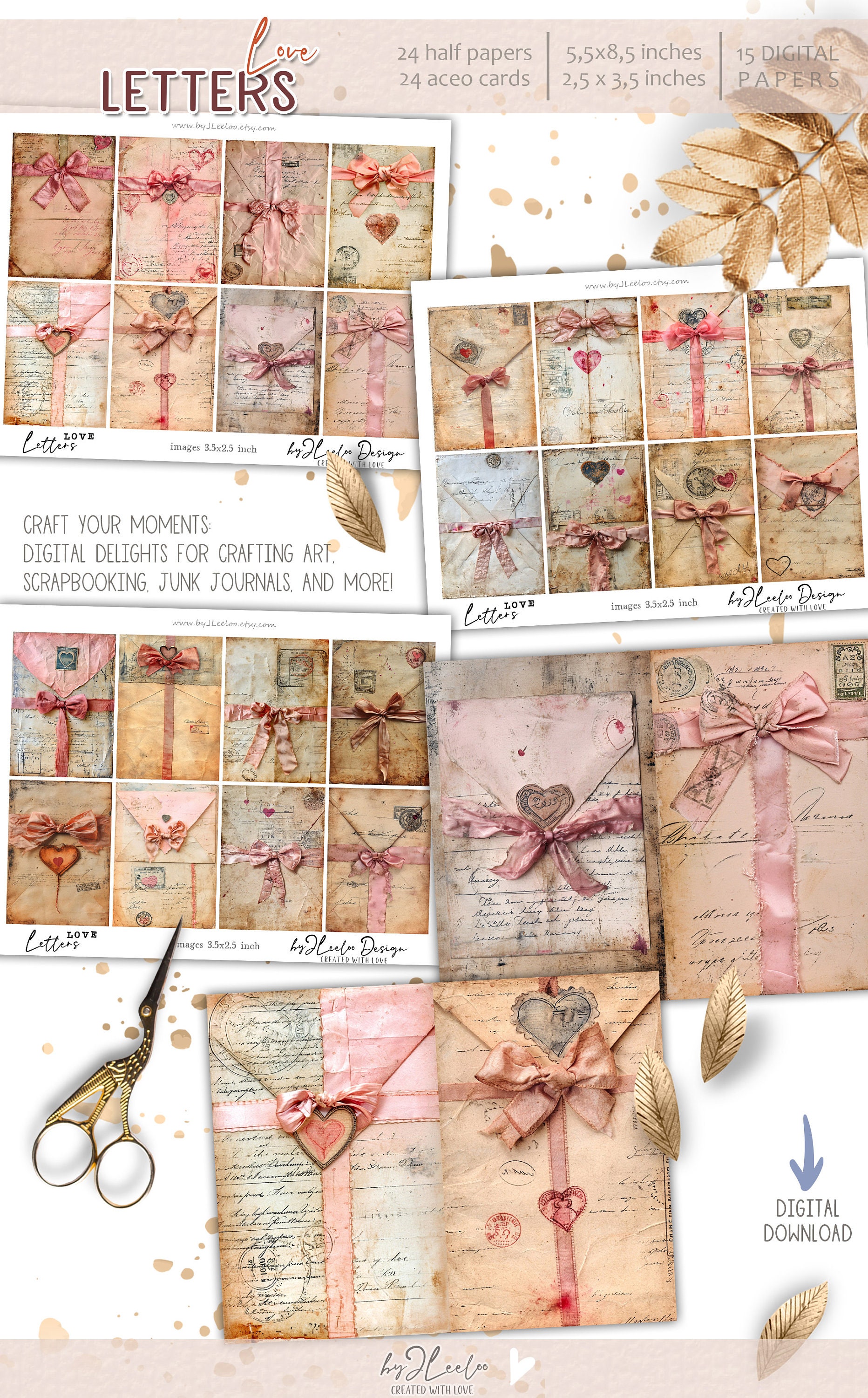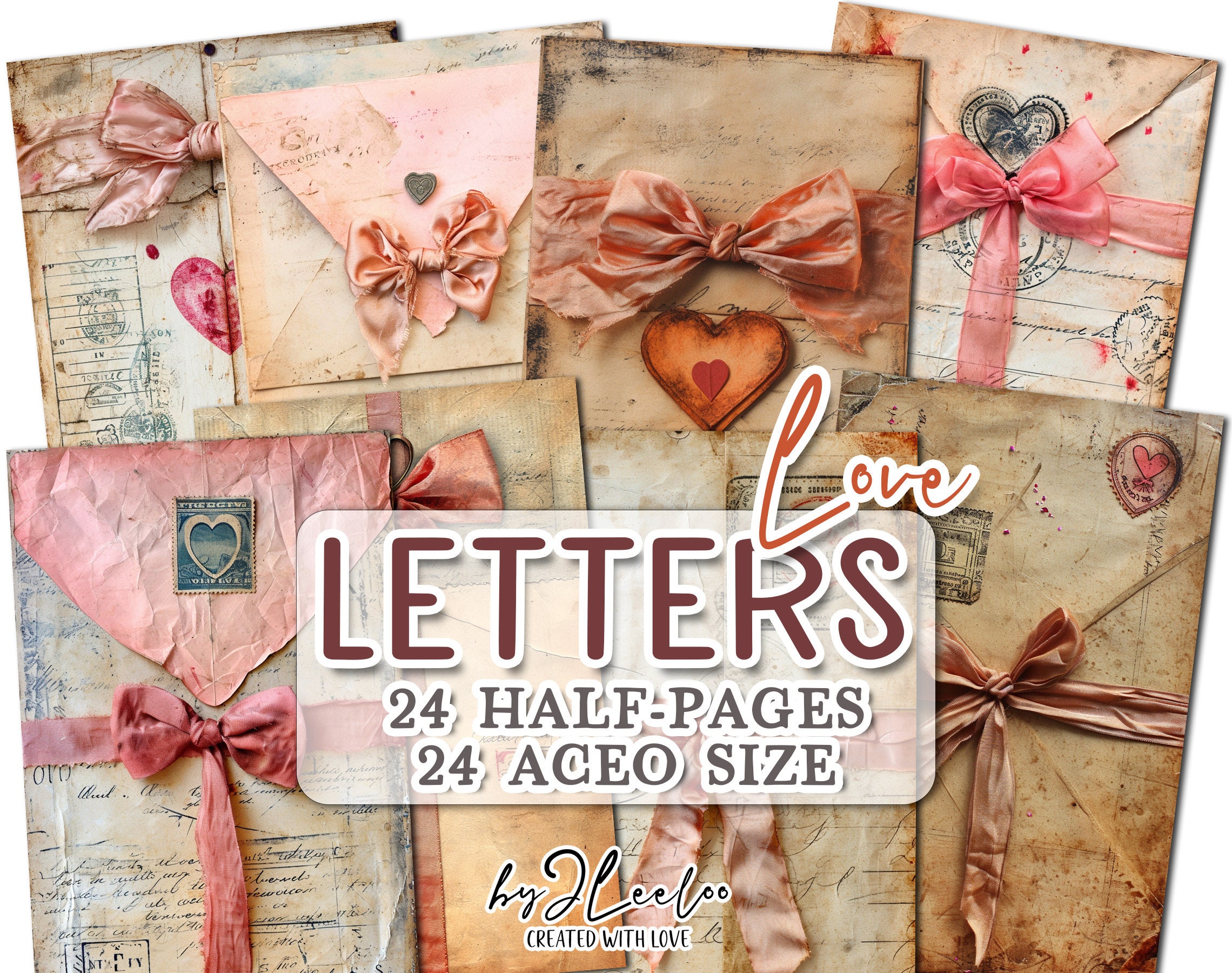 LOVE LETTERS half pages printable | junk journal pink Valentine tag Mixed Media supplies | Ephemera aceo vintage card art collage diary | pp701