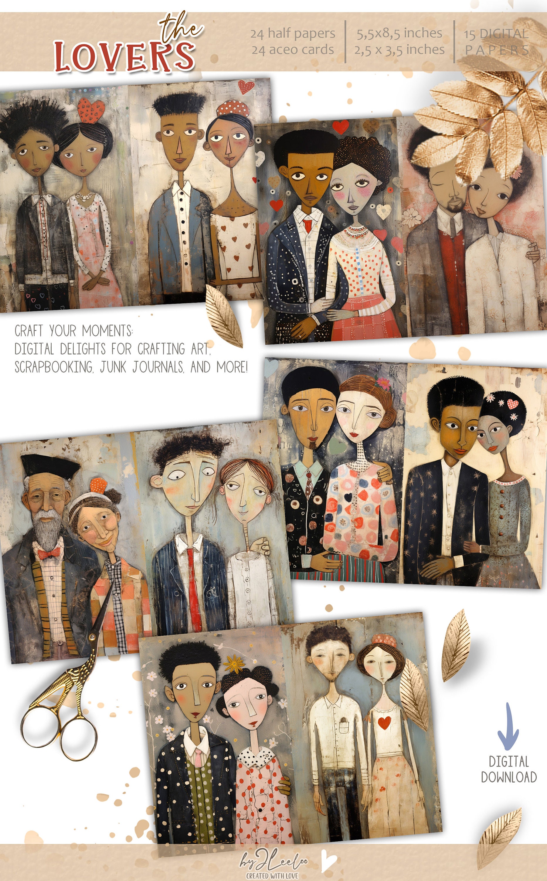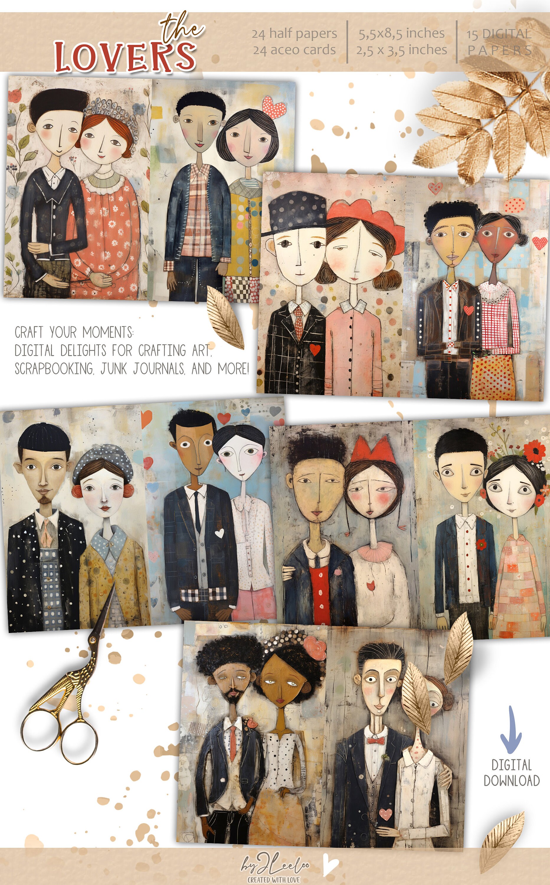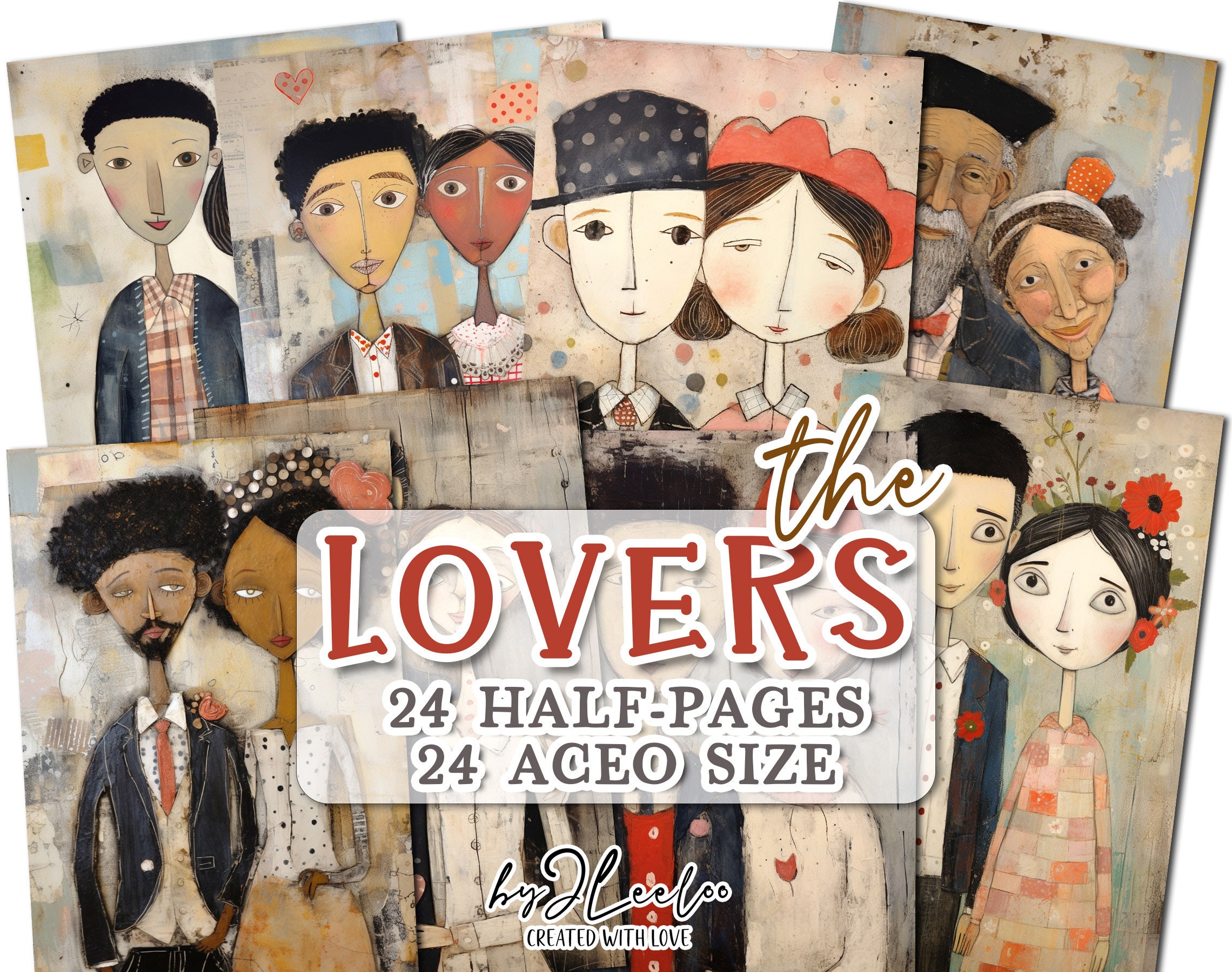 THE LOVERS half pages aceo printable Folk Art | junk journal Valentine tag Mixed Media supplies | aceo vintage card collage diary | pp700