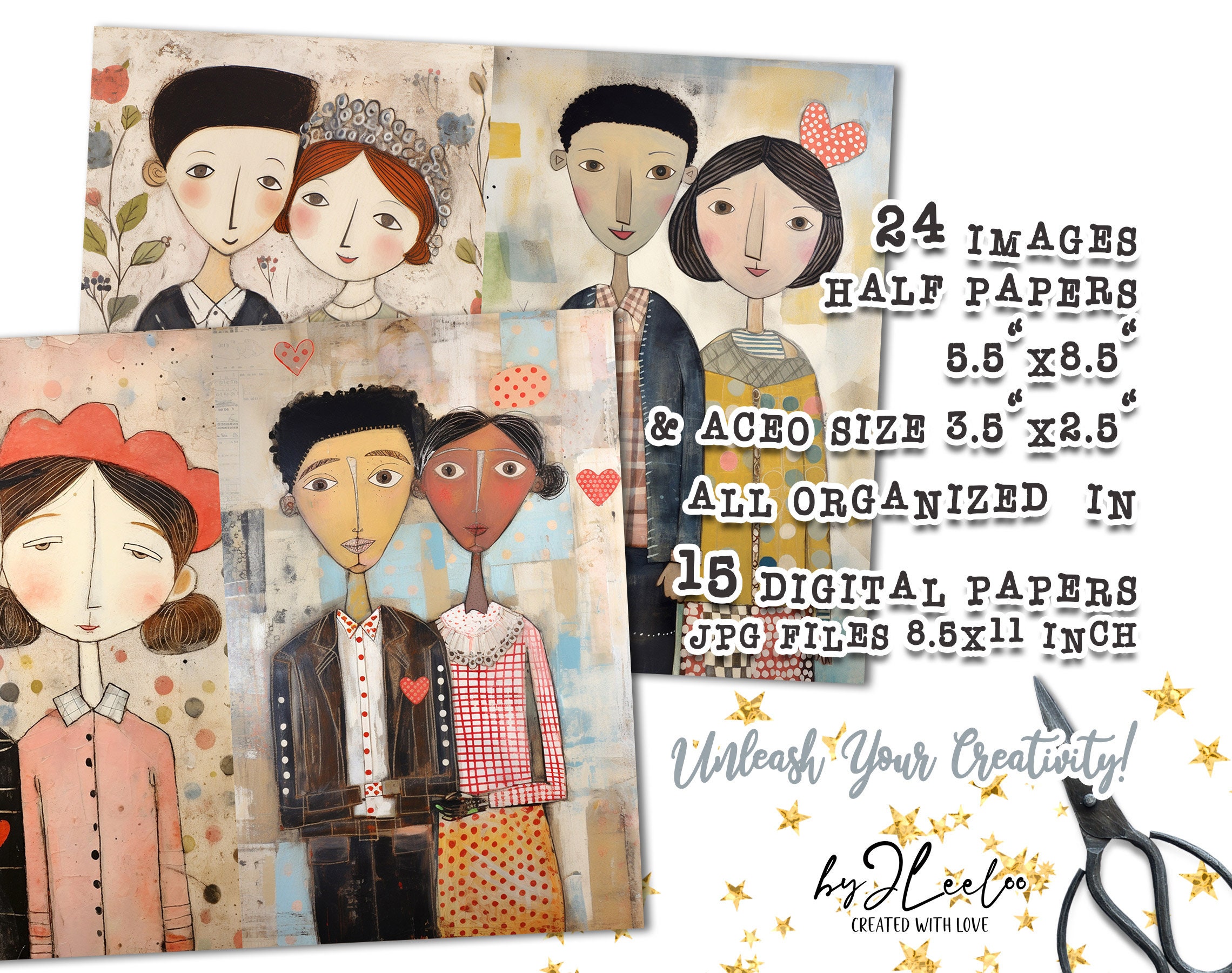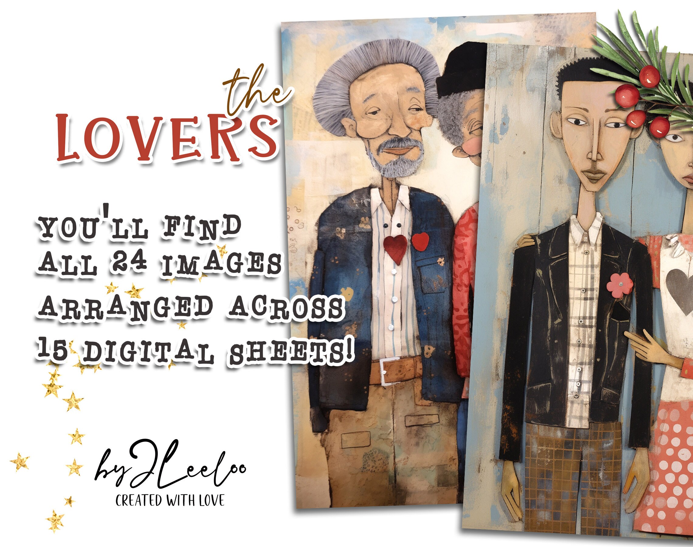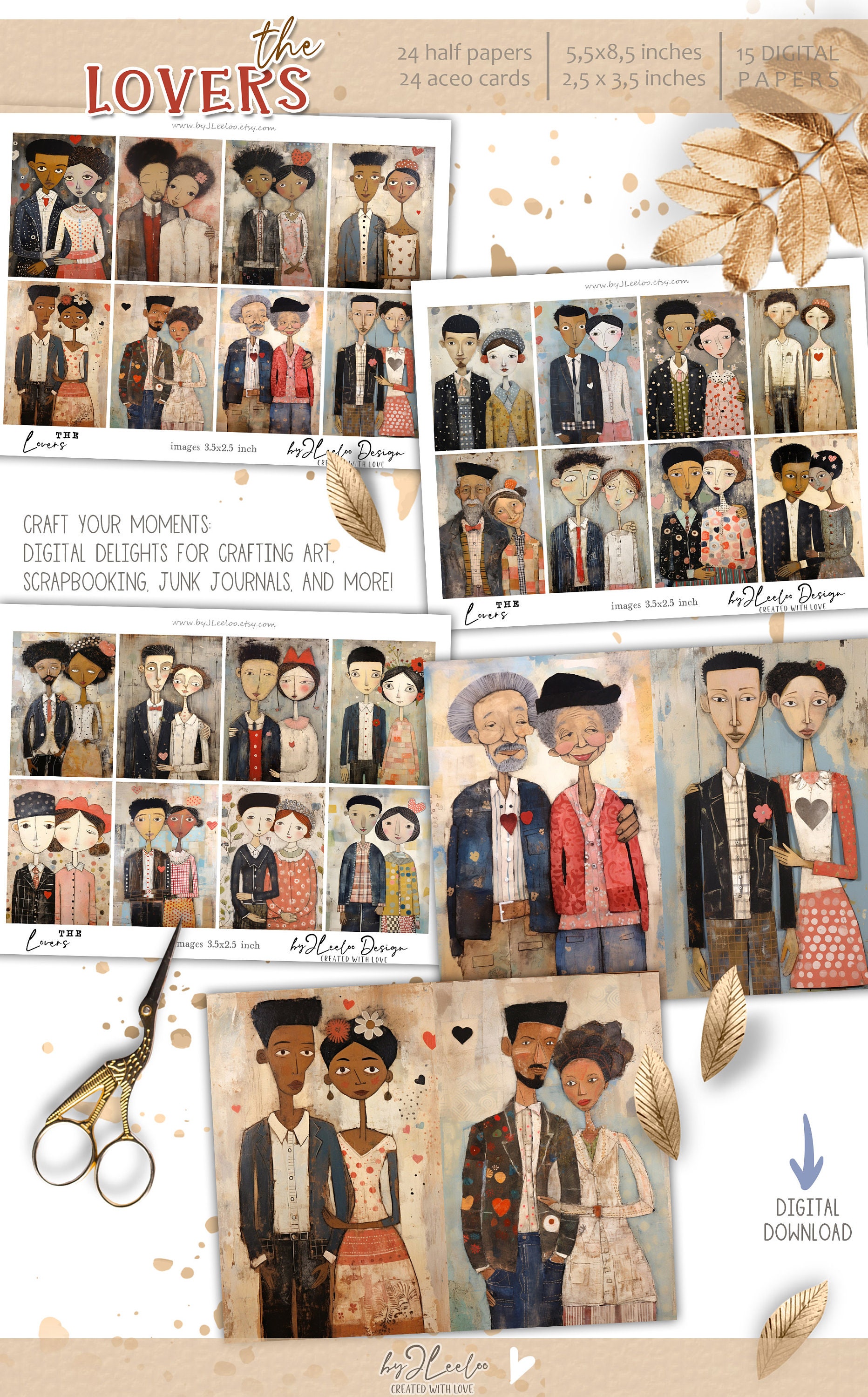 THE LOVERS half pages aceo printable Folk Art | junk journal Valentine tag Mixed Media supplies | aceo vintage card collage diary | pp700