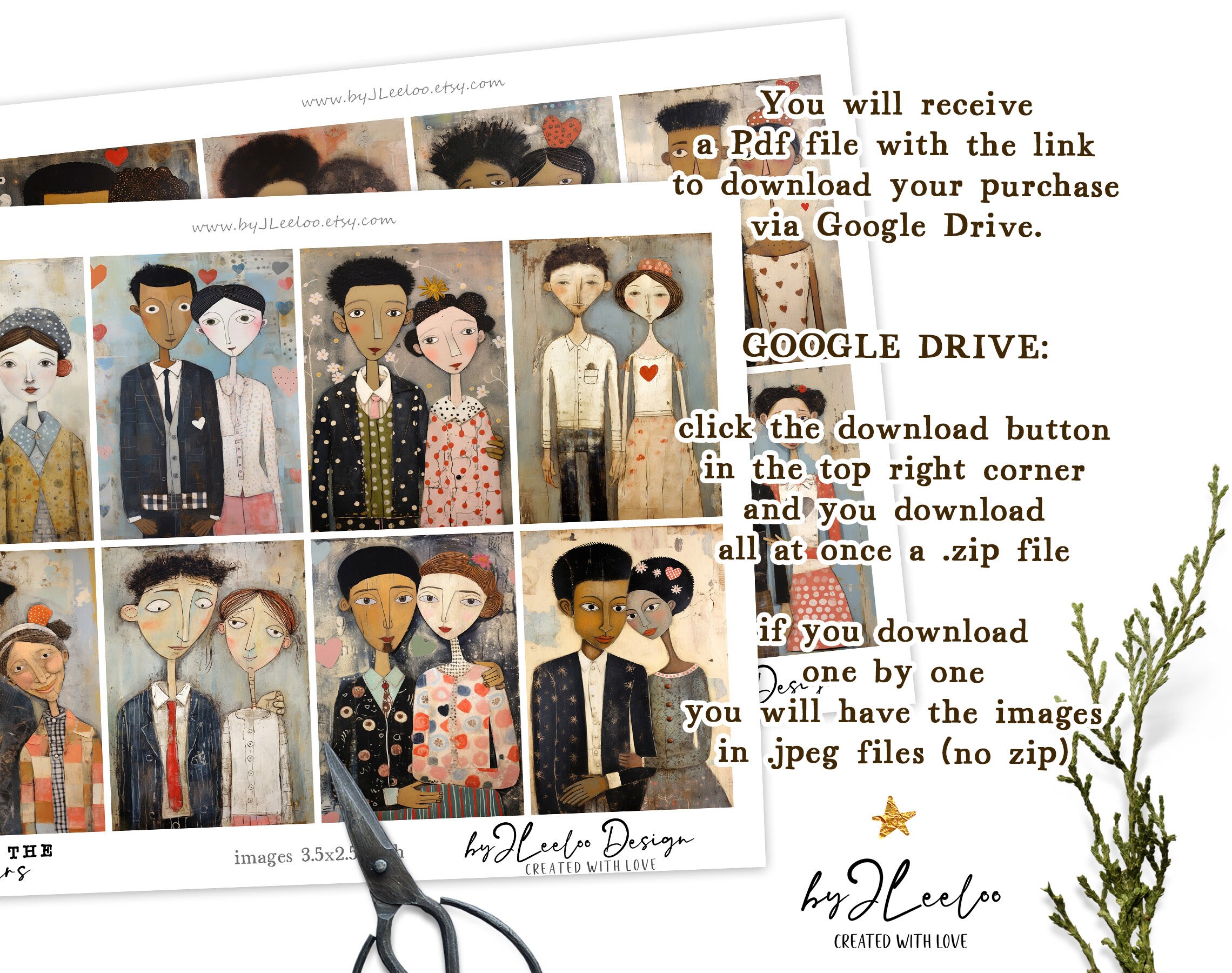 ❤️ Dive into a world of love with our digital illustration collection featuring a smiling couple in a charming, folk-inspired style. Perfect symbols of romance for junk journal, scrapbooking, cards, and craft art. 💕