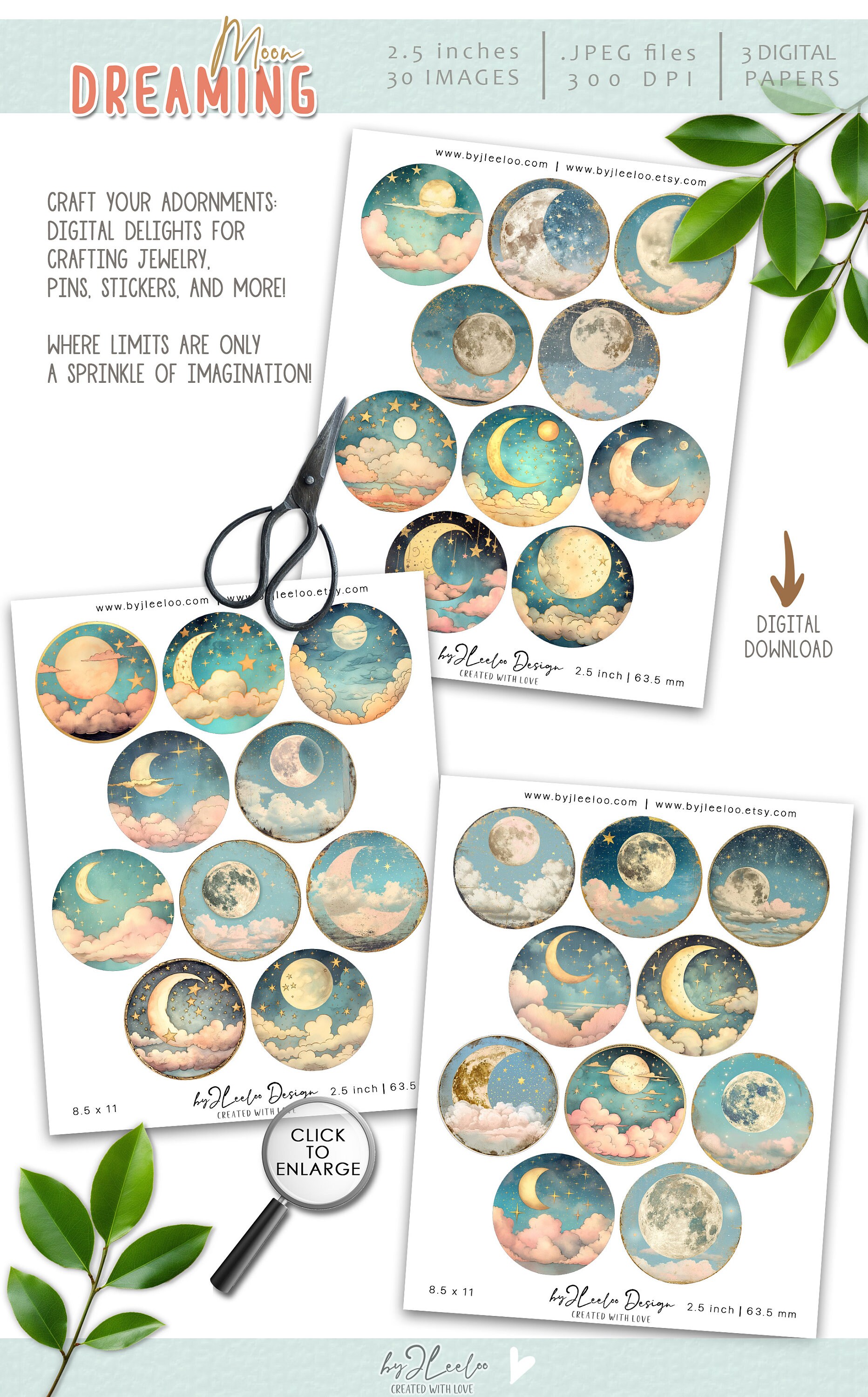 โพ Other sizes of these images here: https://www.etsy.com/shop/byJLeeloo?search_query=dreaming+moon