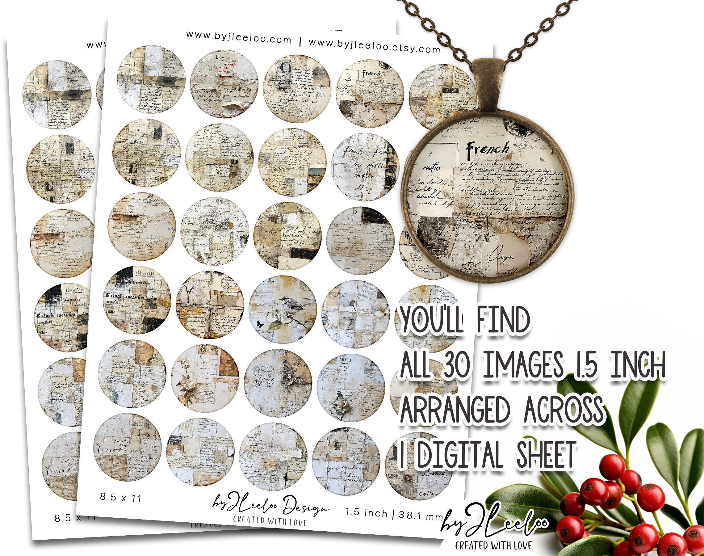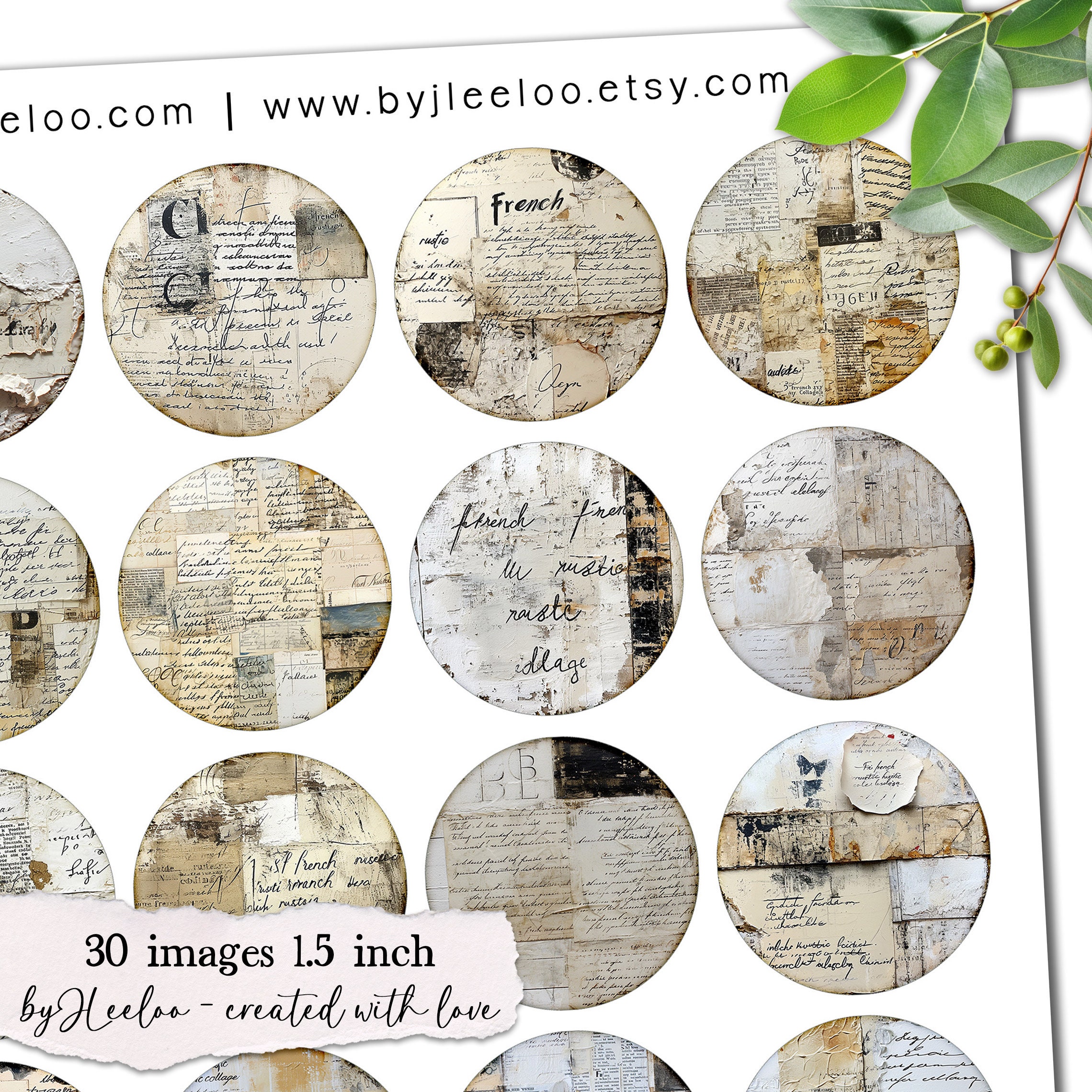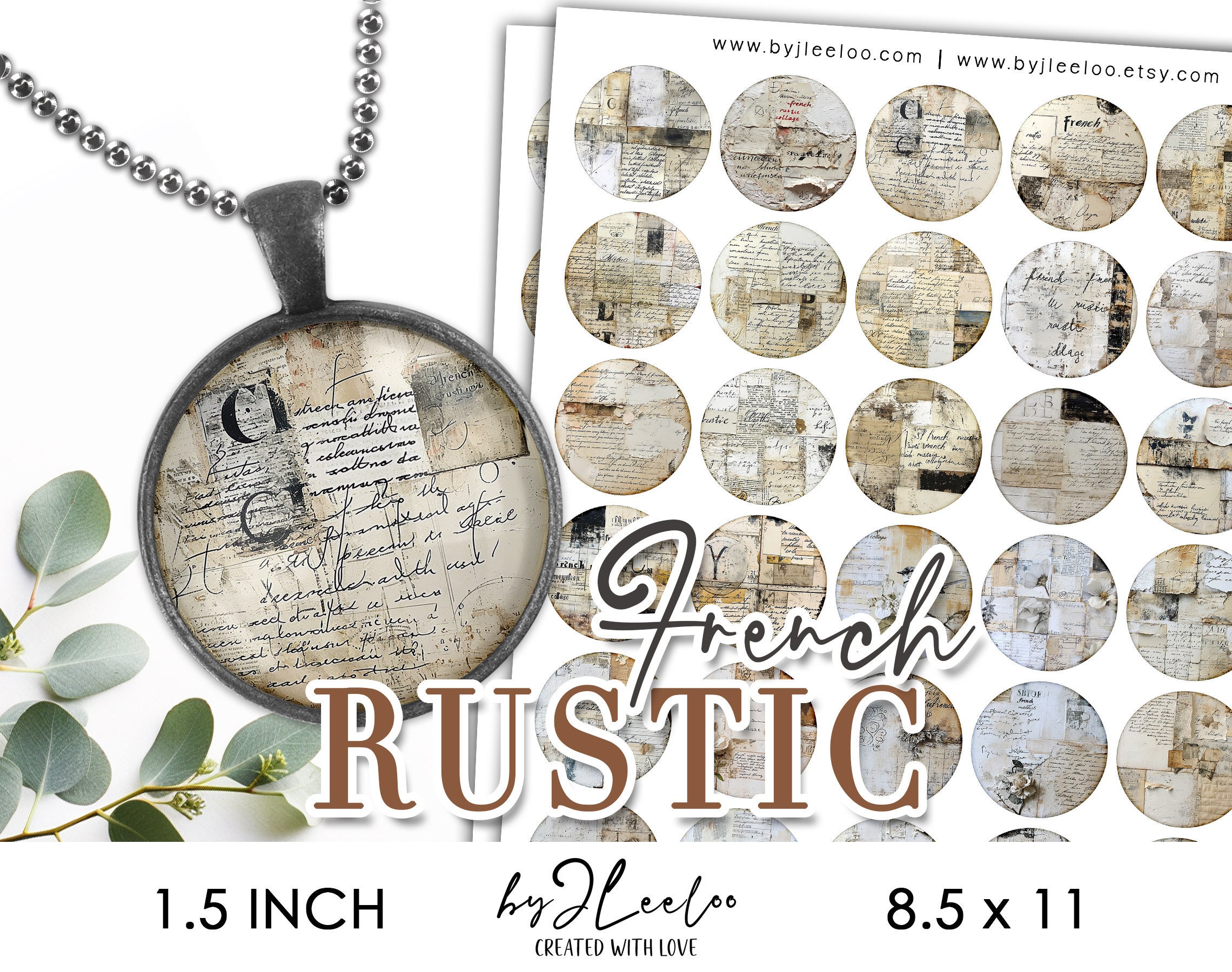 FRENCH RUSTIC 1.5 inch printable illustration | Ephemera collage supplies round pendant charm grunge paper art Junk Journaling card | tn741