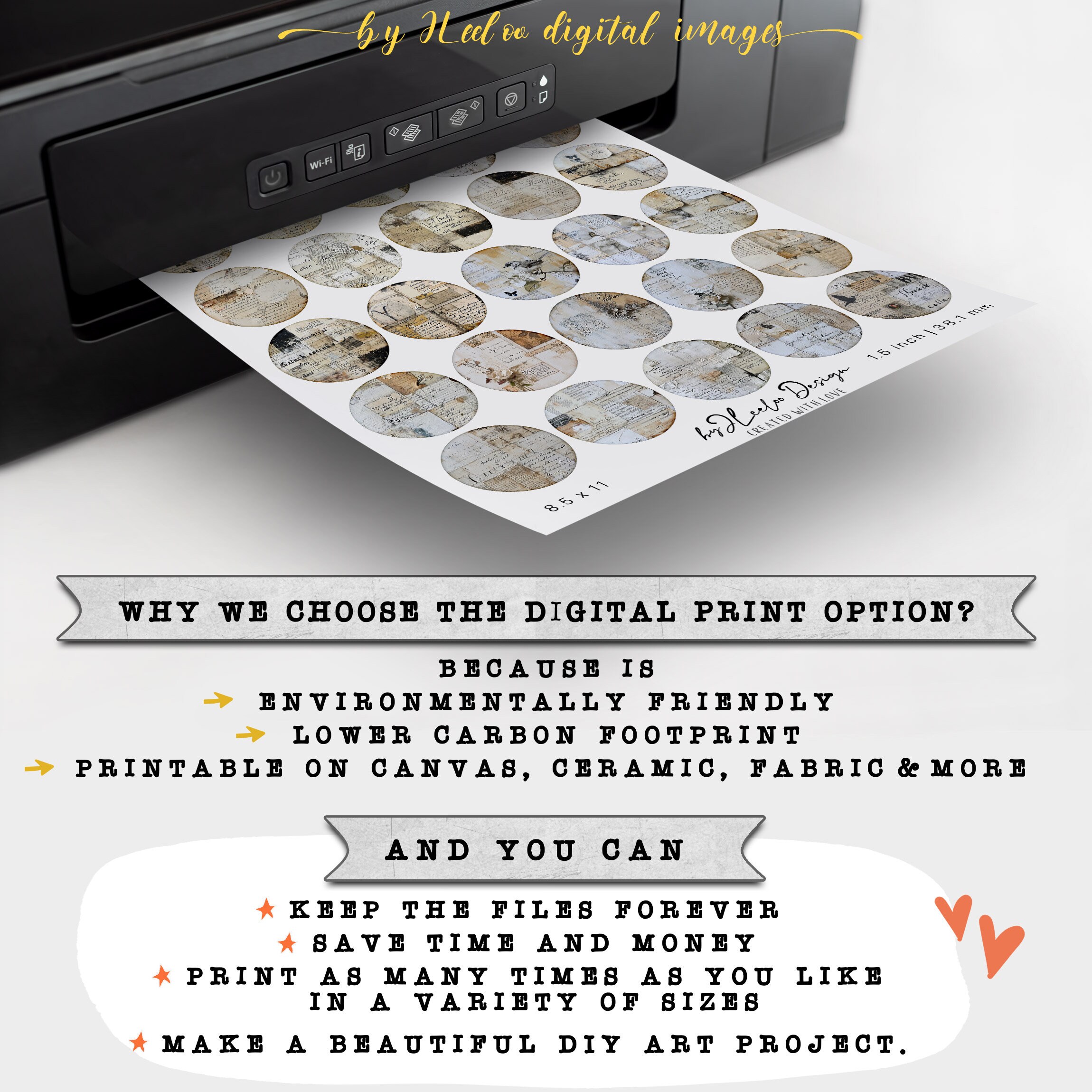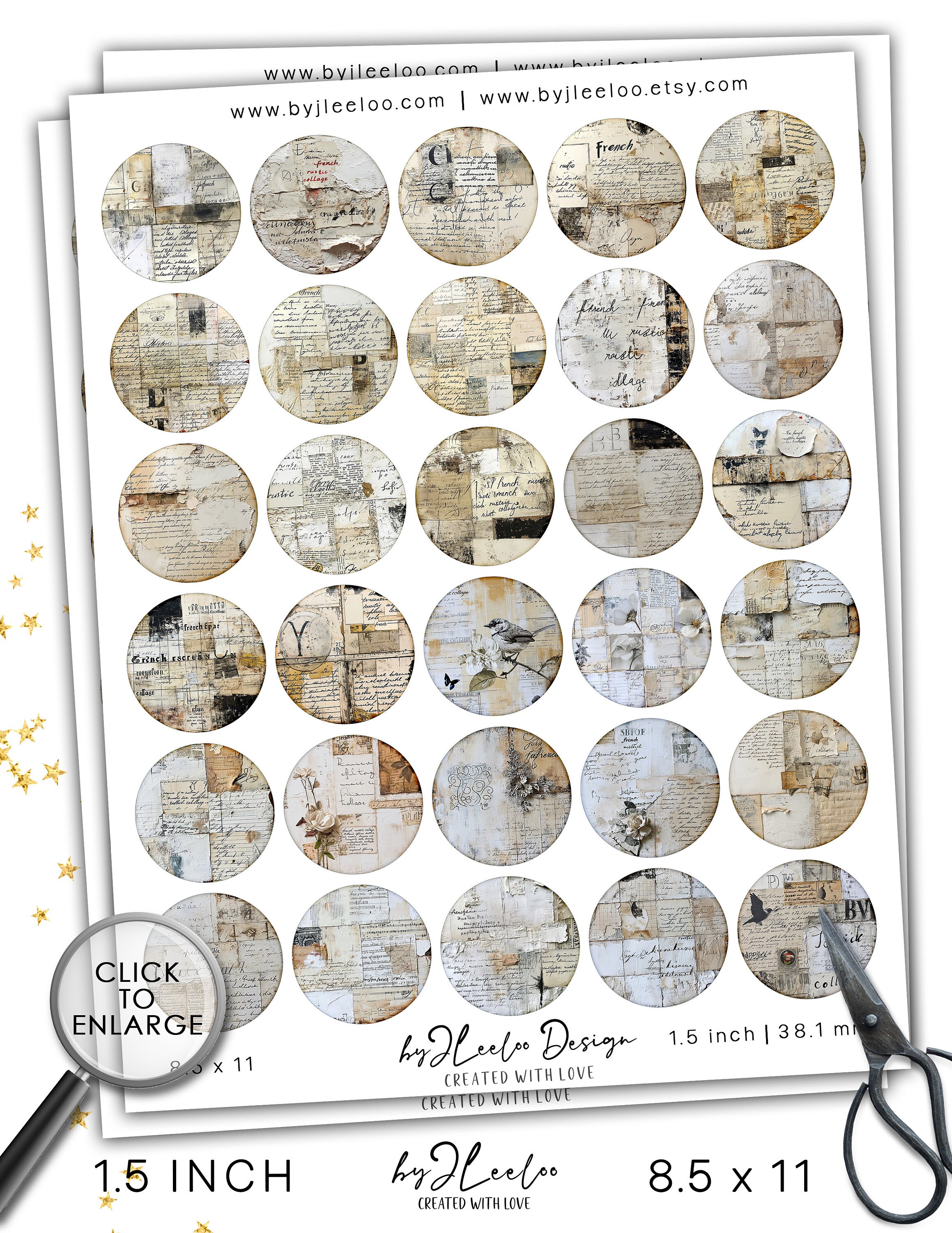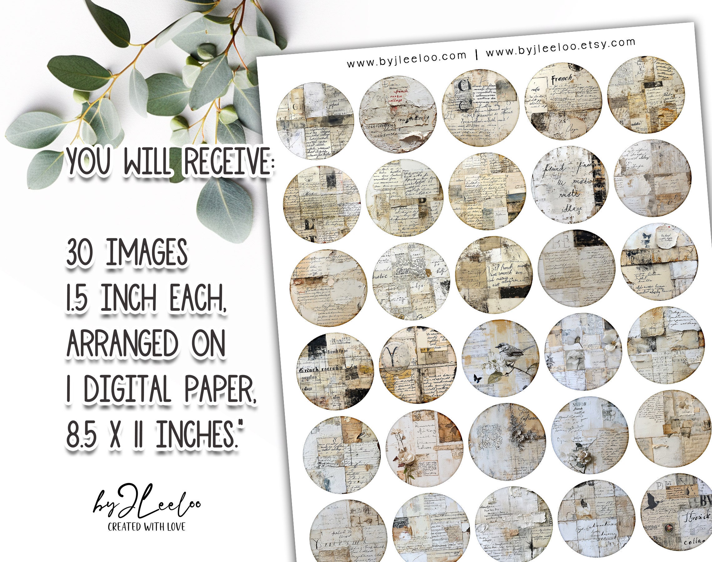 FRENCH RUSTIC 1.5 inch printable illustration | Ephemera collage supplies round pendant charm grunge paper art Junk Journaling card | tn741