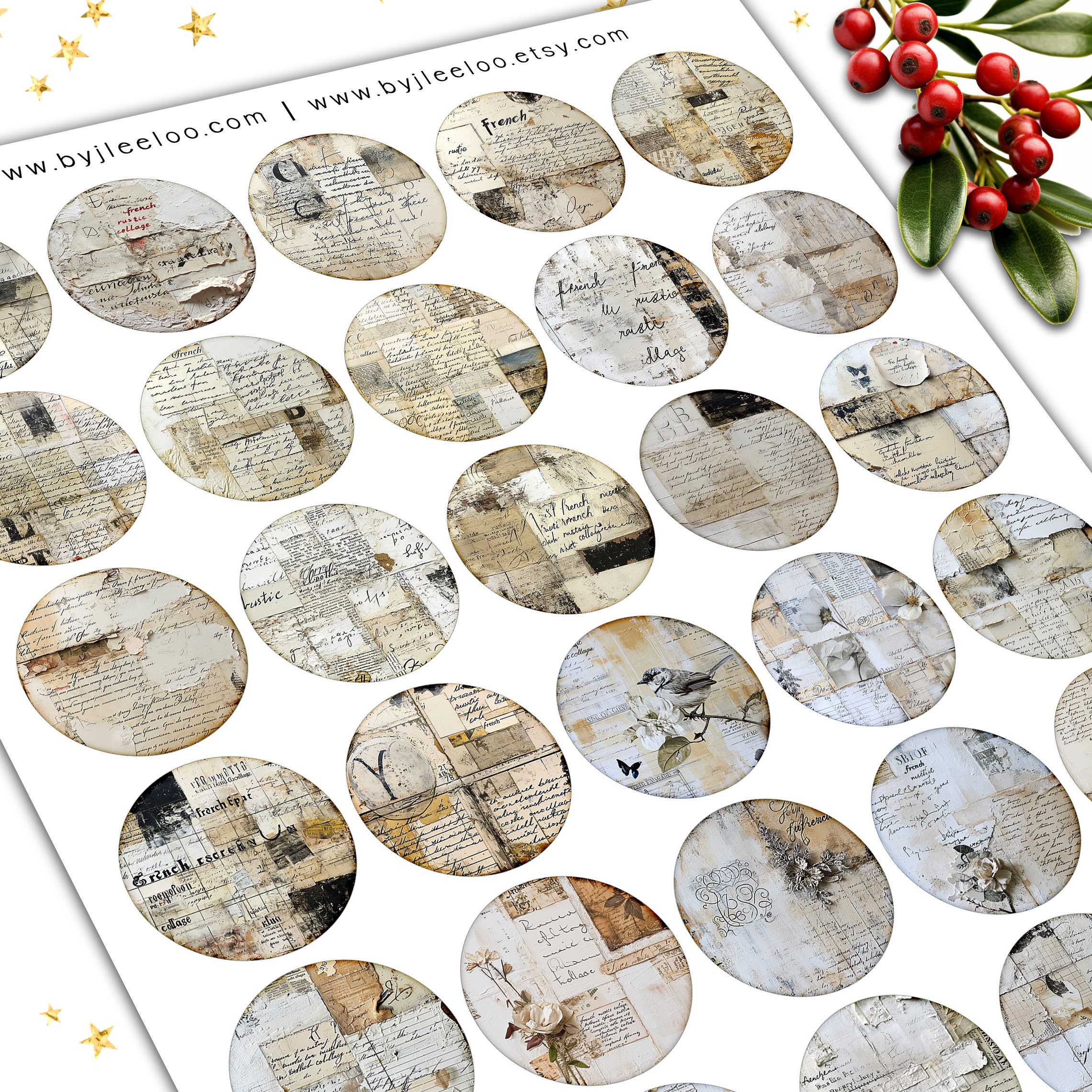 ๐ Embrace the enchanting allure of French rustic charm with my latest collection of round-shaped collages. These unique artworks, created on canvas without primer, boast a full-page design featuring carefully chosen aged papers in ivory and white hues. Titled 'French Rustic Collage' each piece is adorned with fragments of script and subtle hints of old letters, exuding a timeless aesthetic. Perfect for digital art, junk journaling, scrapbooking, and crafting various items like pendants, cards, stickers, magnets, and mirrors. Elevate your creative projects with the vintage-inspired elegance of these distinctive collages.