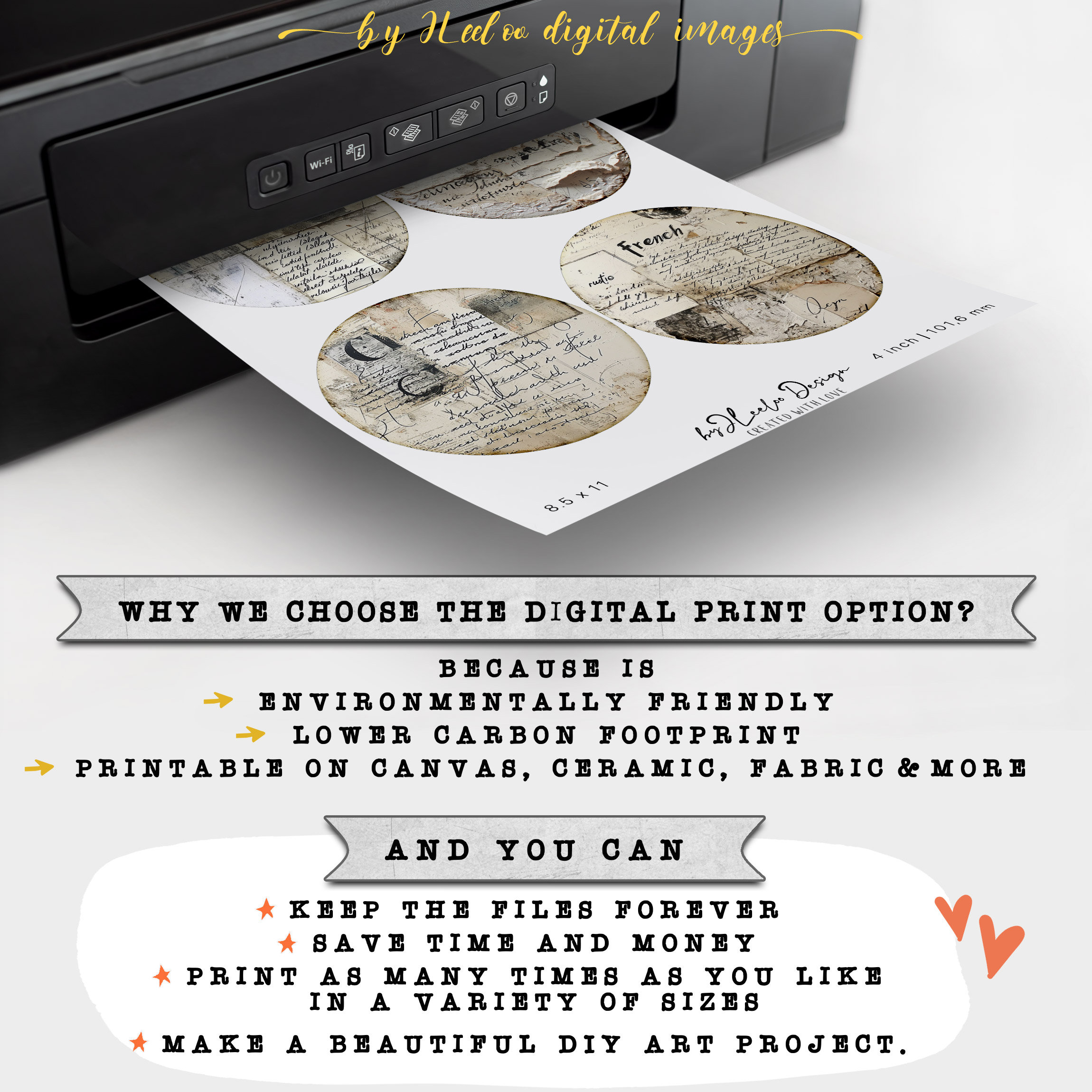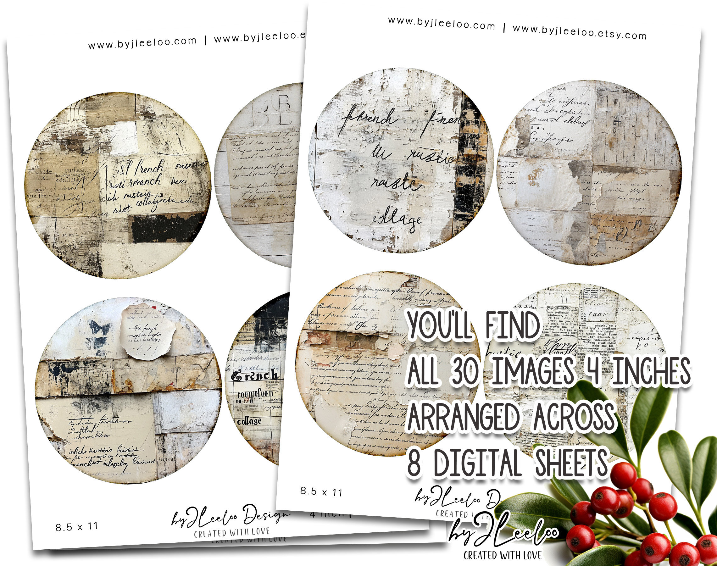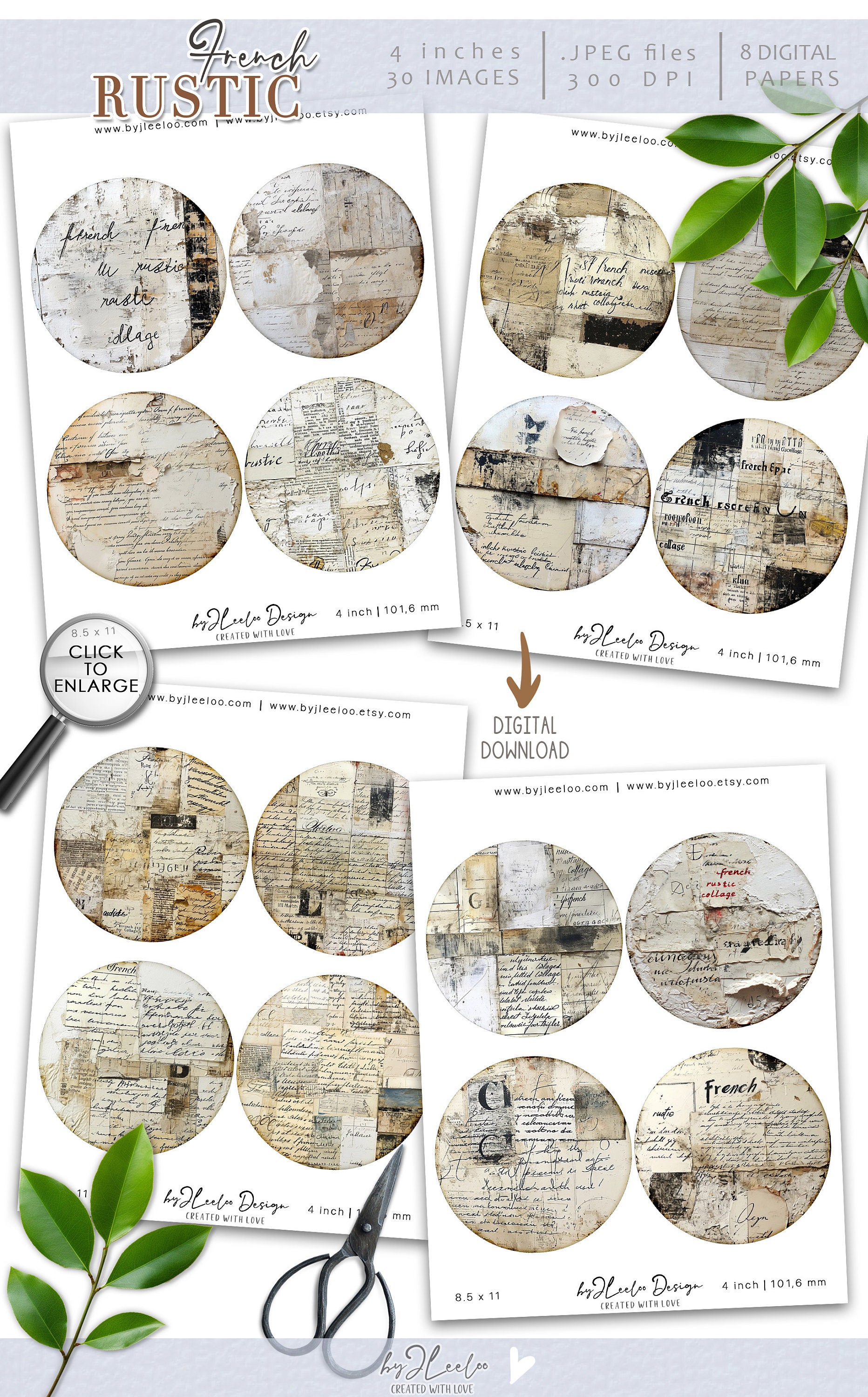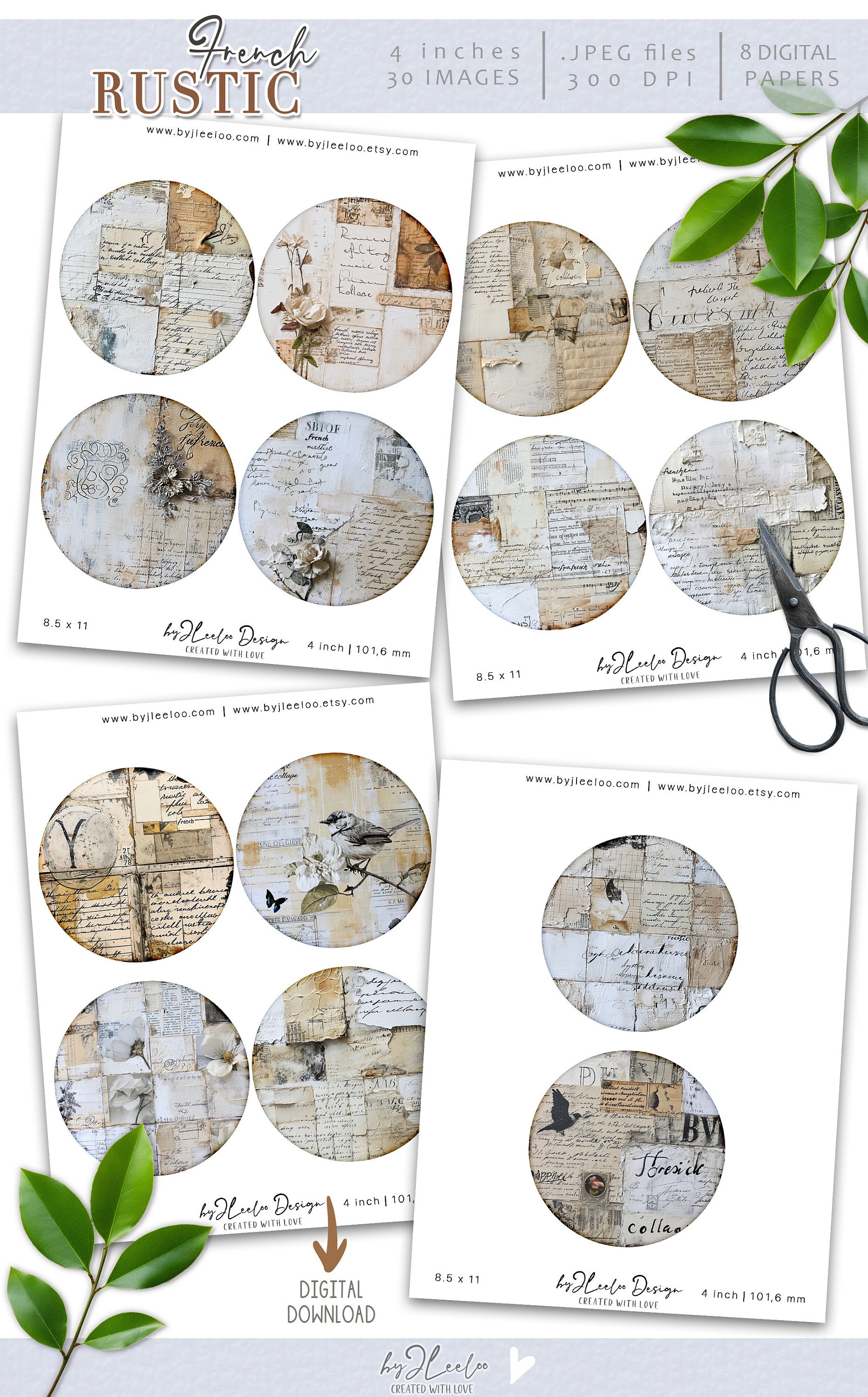 FRENCH RUSTIC 4 inch circle printable | Background Collage supplies for coaster decoration mirror sticker | junk journal digital art | tn745