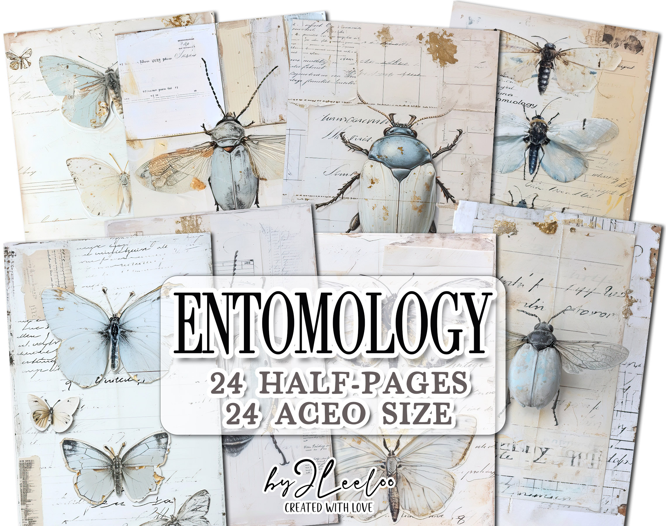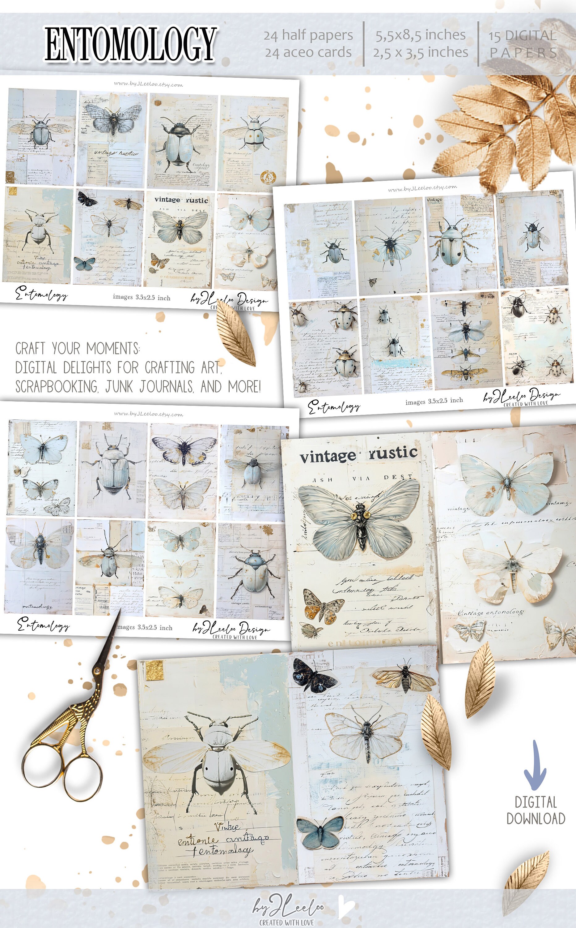 ENTOMOLOGY half pages printable | junk journal Mixed Media Aceo supplies | Distressed romantic dirty paper card making collage diary | pp705