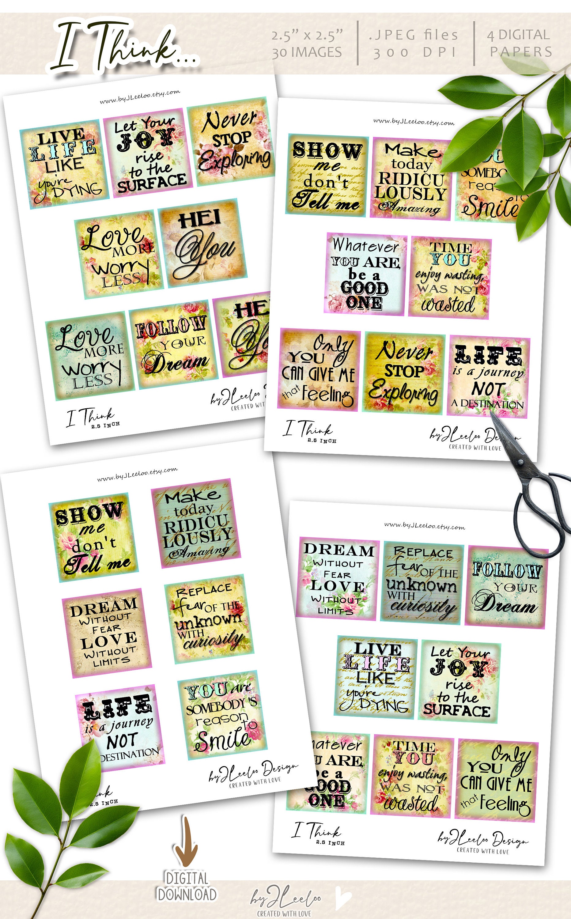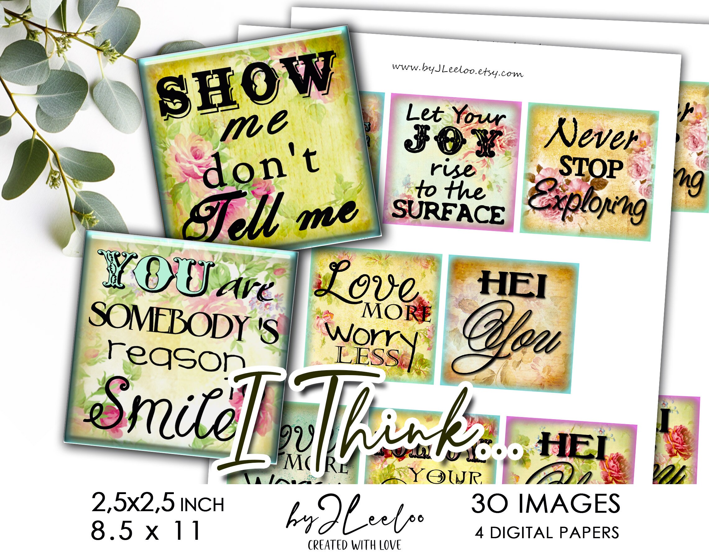 I THINK 2.5x2.5 inch printable | Supplies word pendant, charm images, gift for girlfriend, charm for friend, altered art, journal | qu601