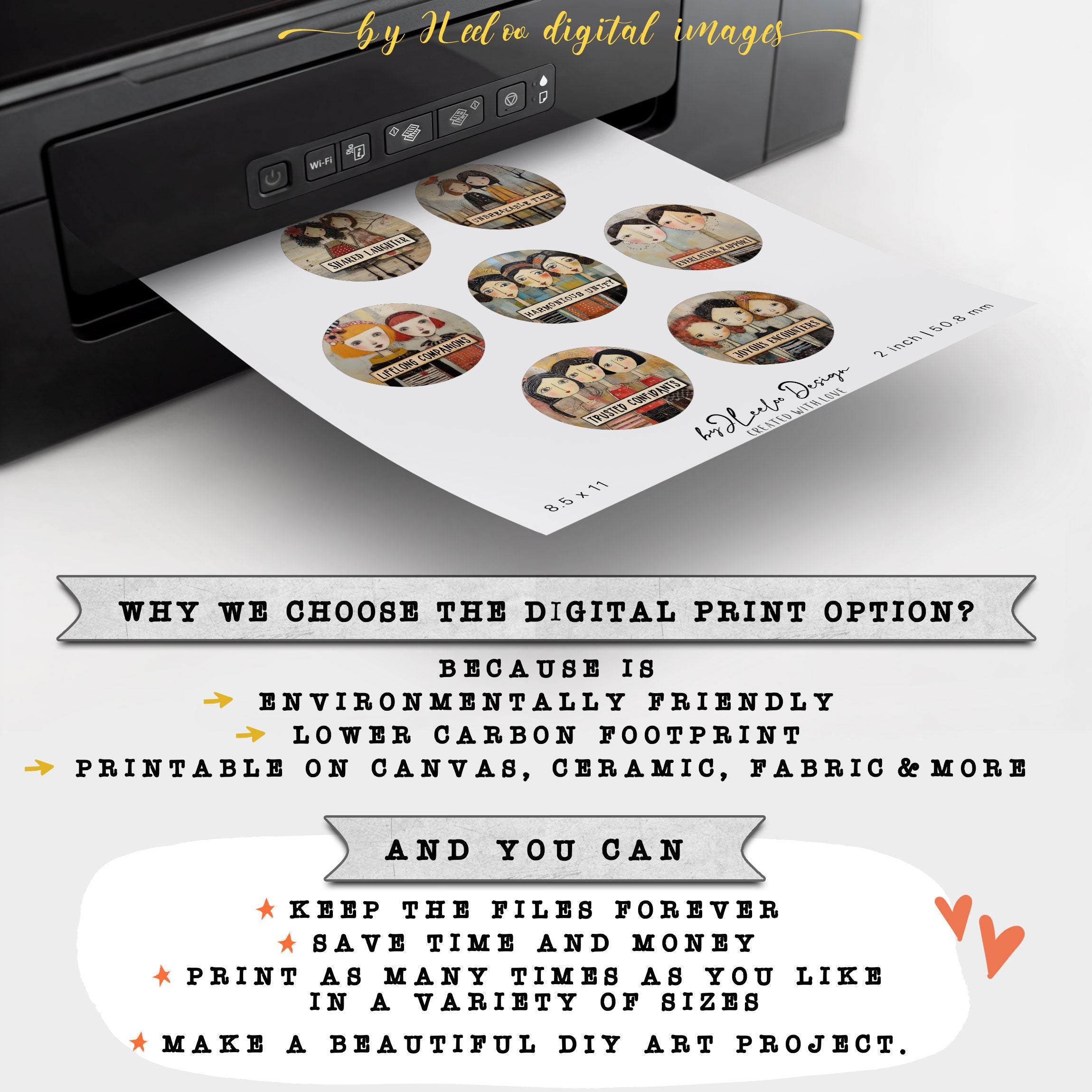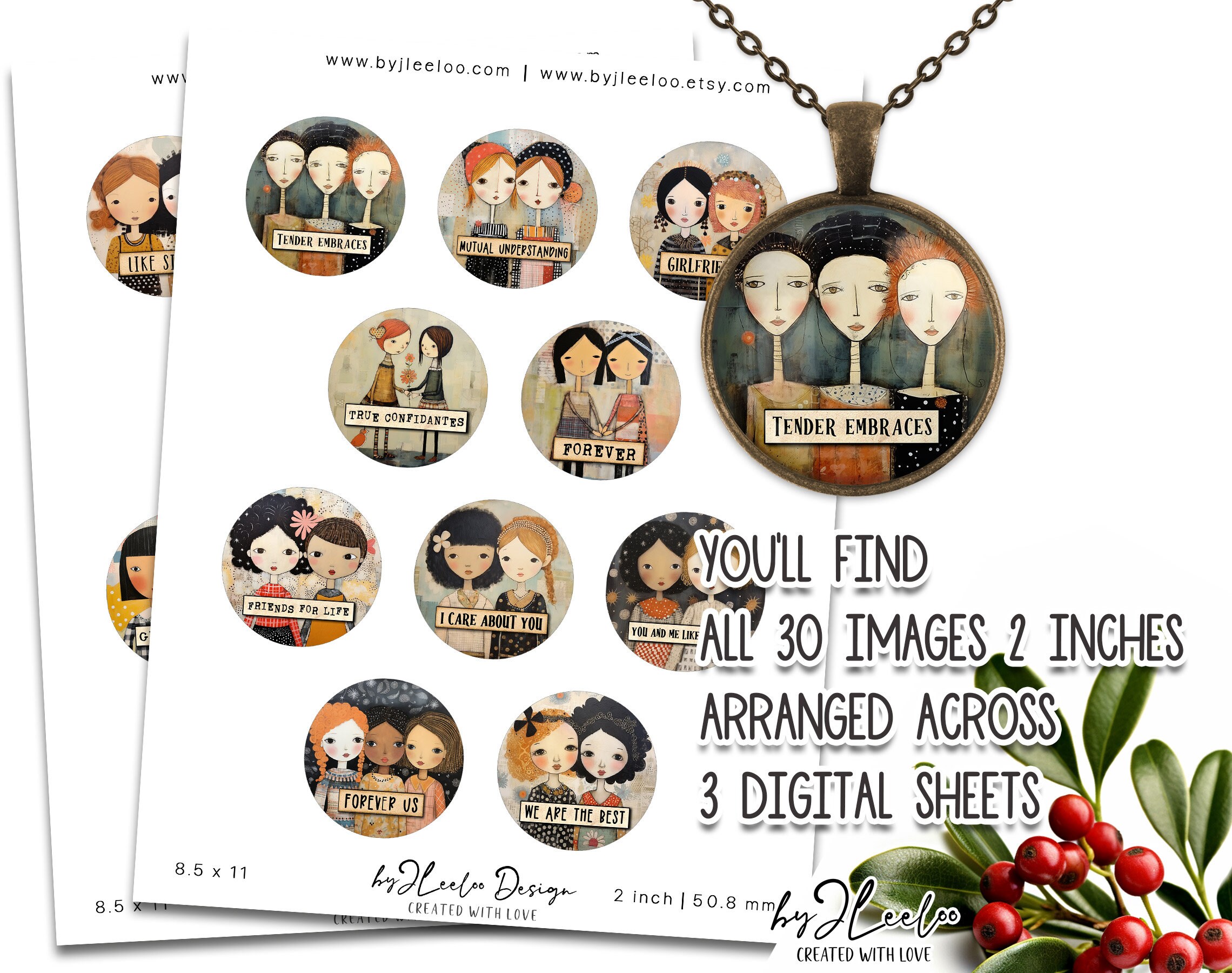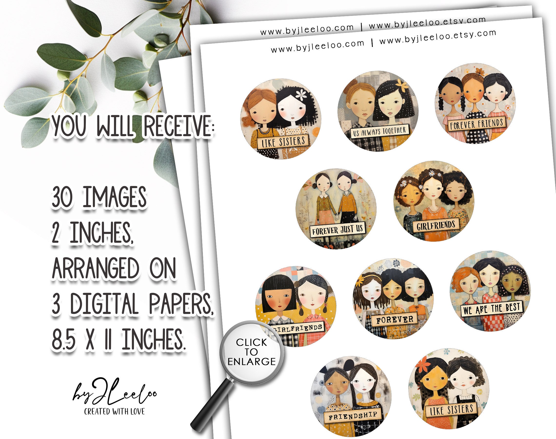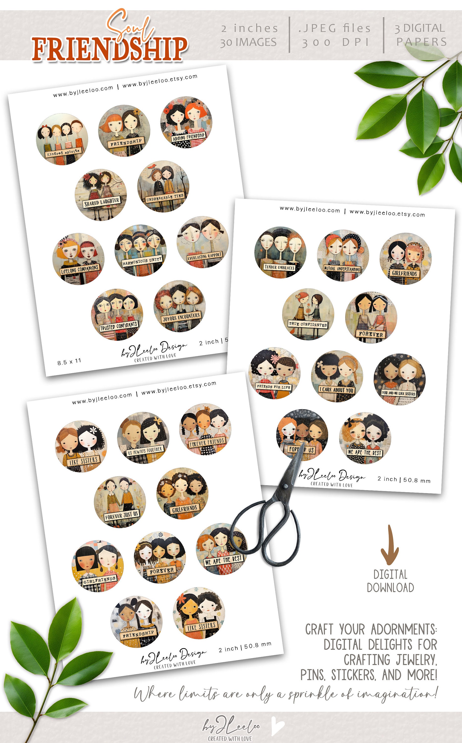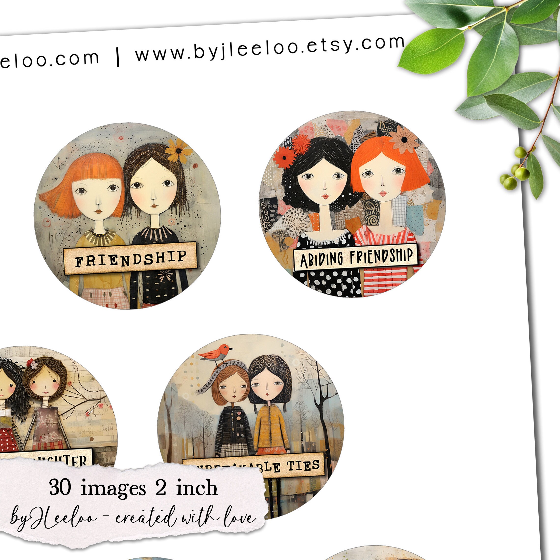 SOUL FRIENDSHIP 2 inch printable folk art | supplies circle pendant magnet sticker glass charm cameo | Gift for girls lovers friend | tn748