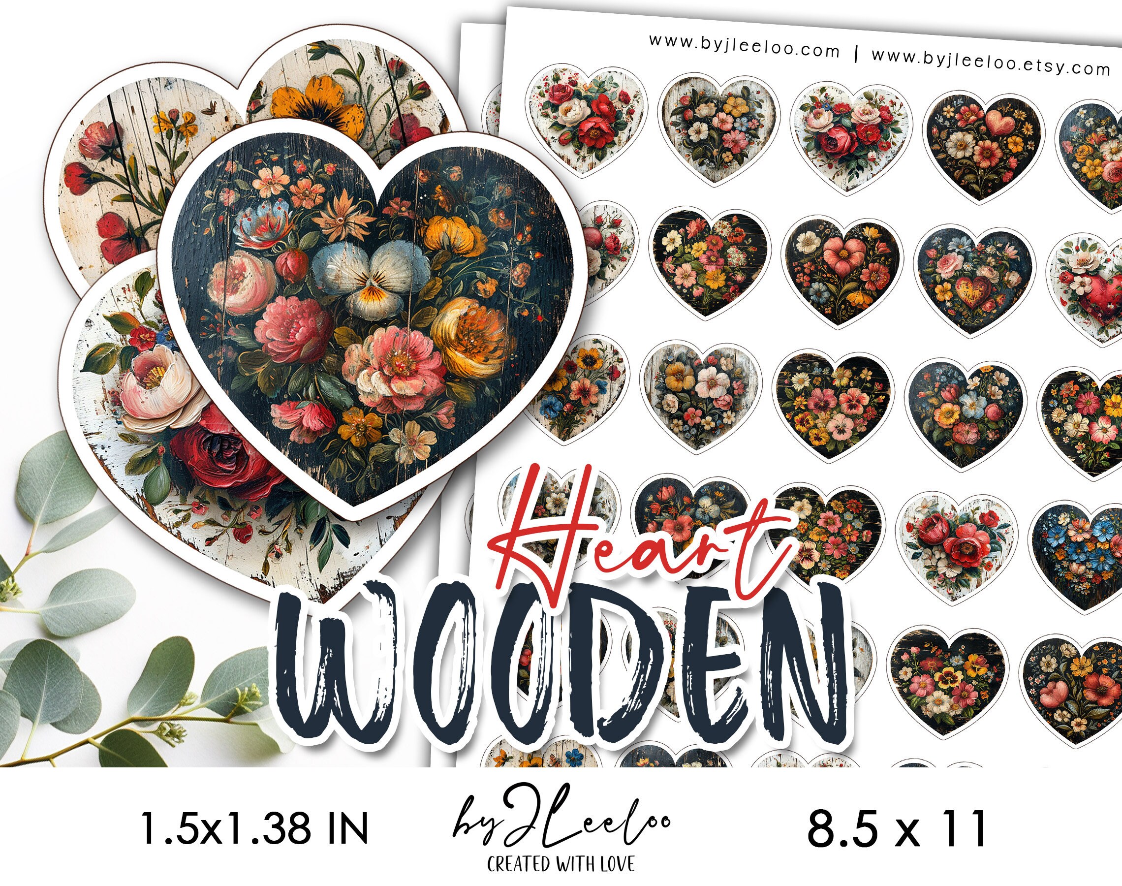 WOODEN HEART 1.5 x 1.38 in illustration | Fussy cut Valentine supplies for labels tag journaling Wedding printable | Rusticcore Folk art paper | tn759