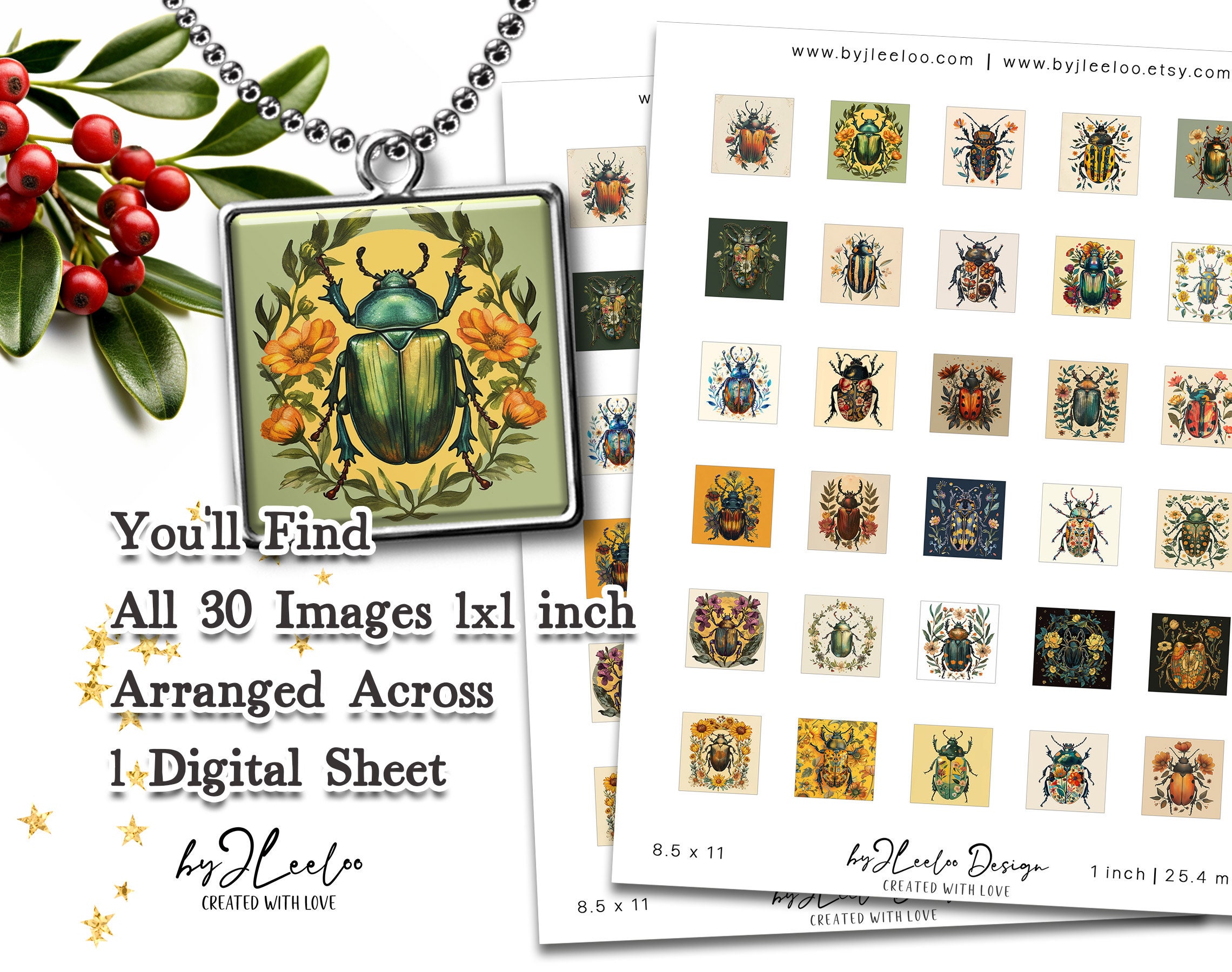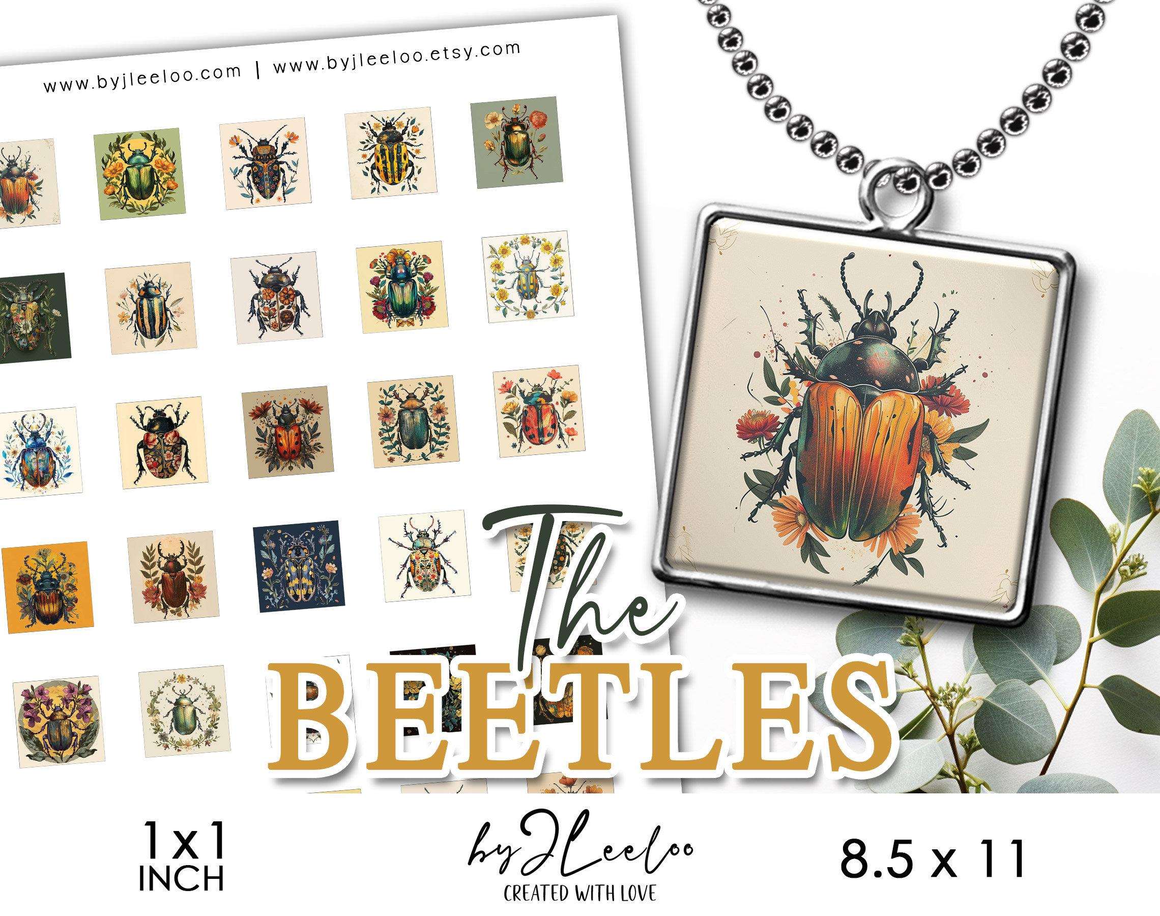 THE BEETLES 1x1 inch printable | supplies square pendant keychain mountings cameo setting | glass cabochon sublimation images DiY | qu604