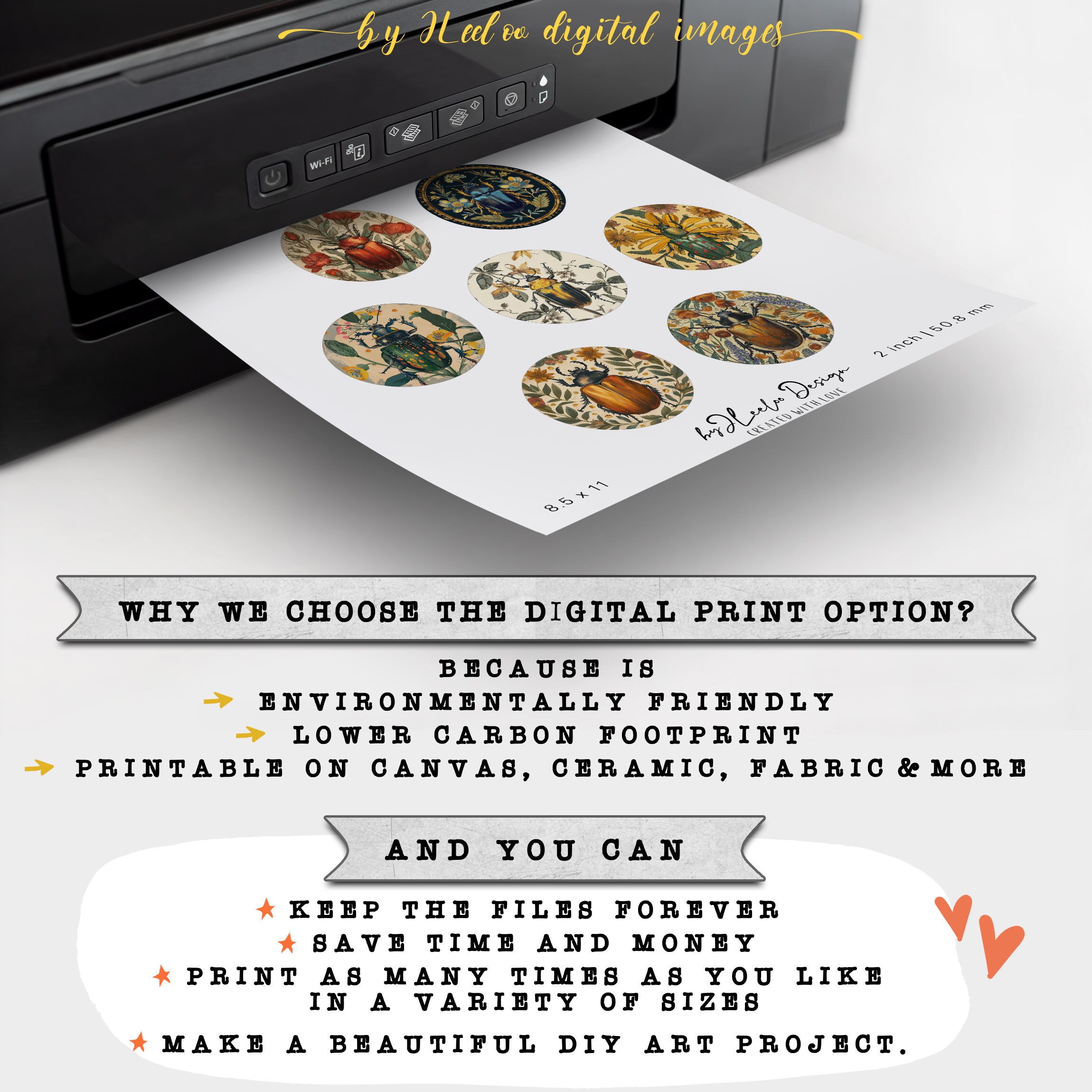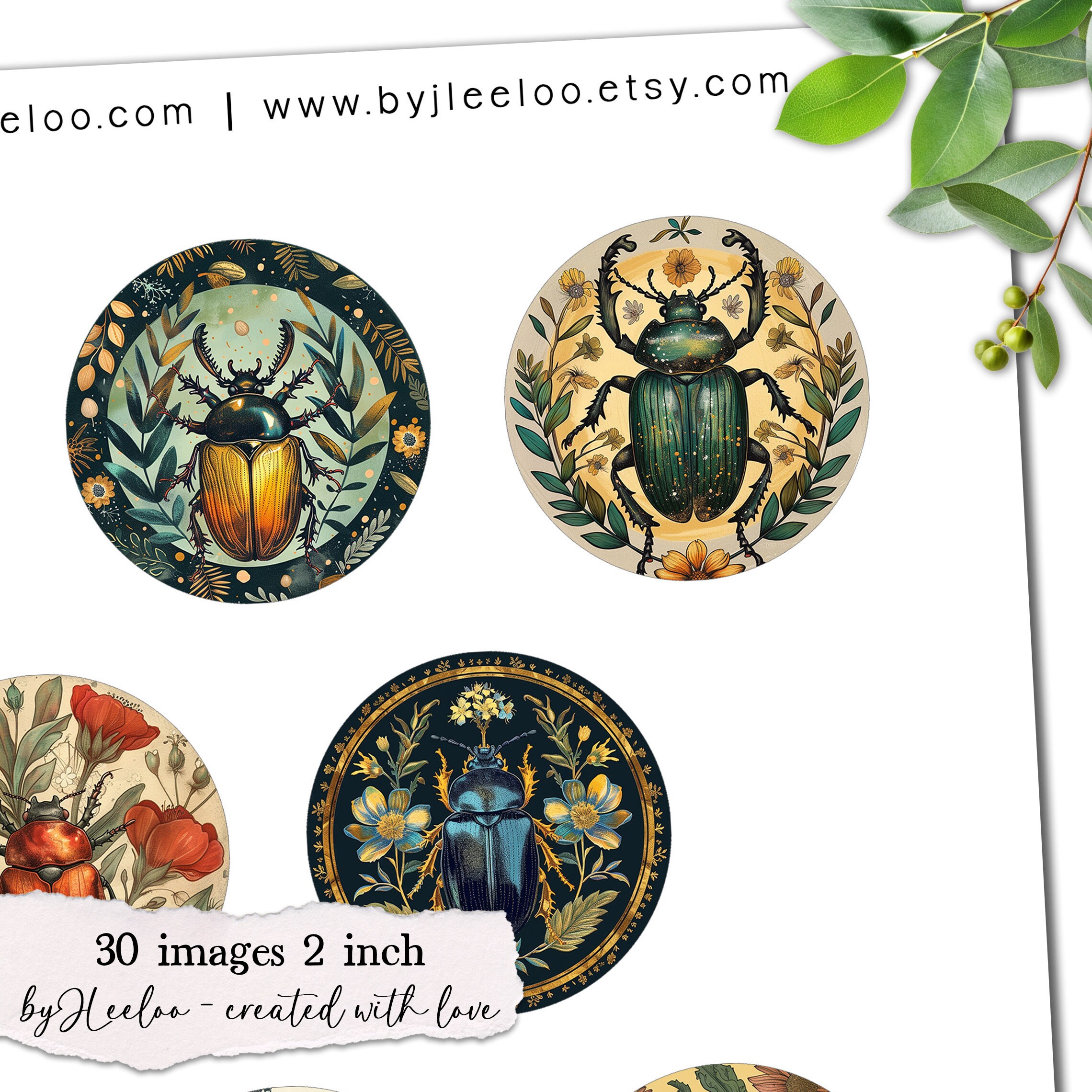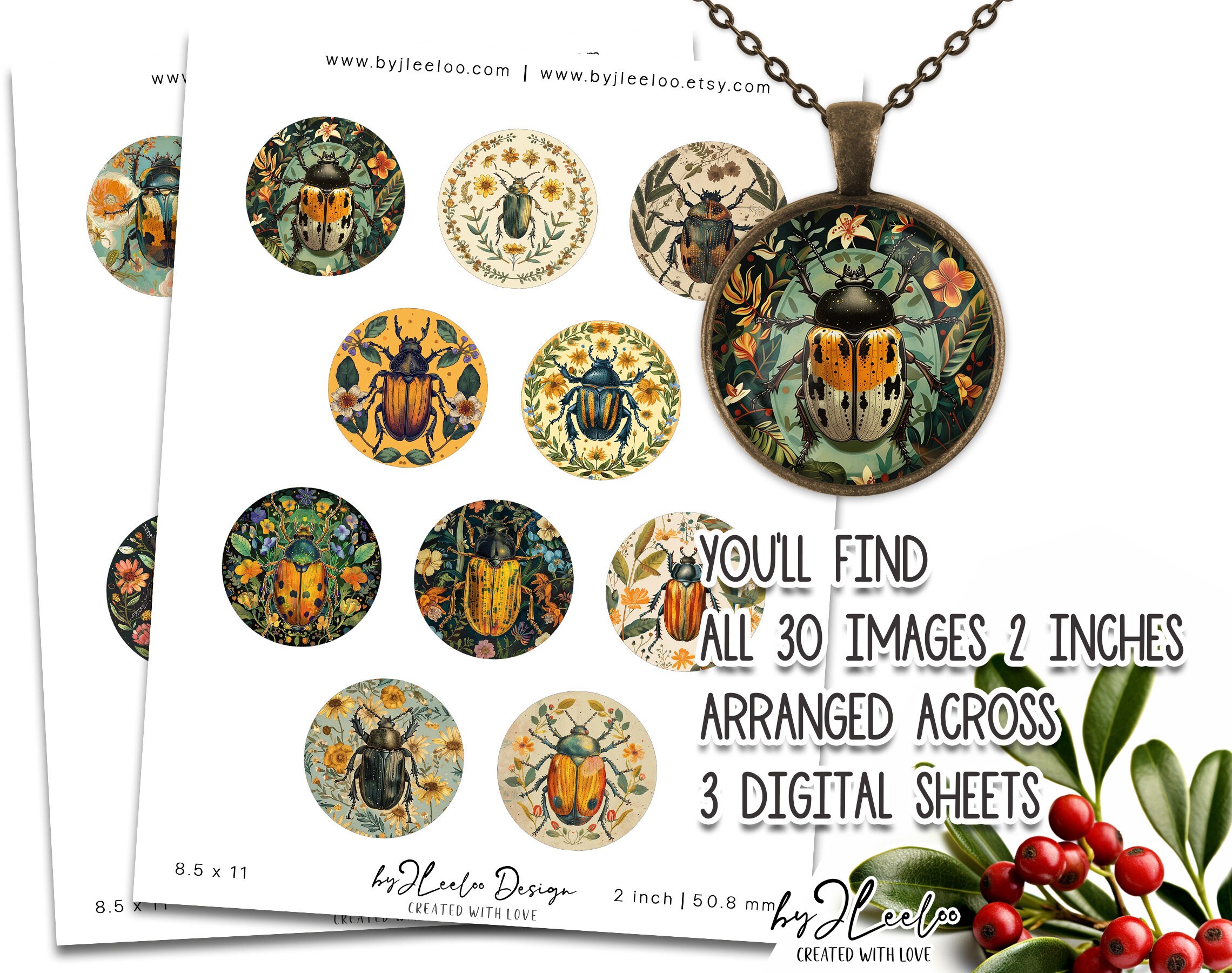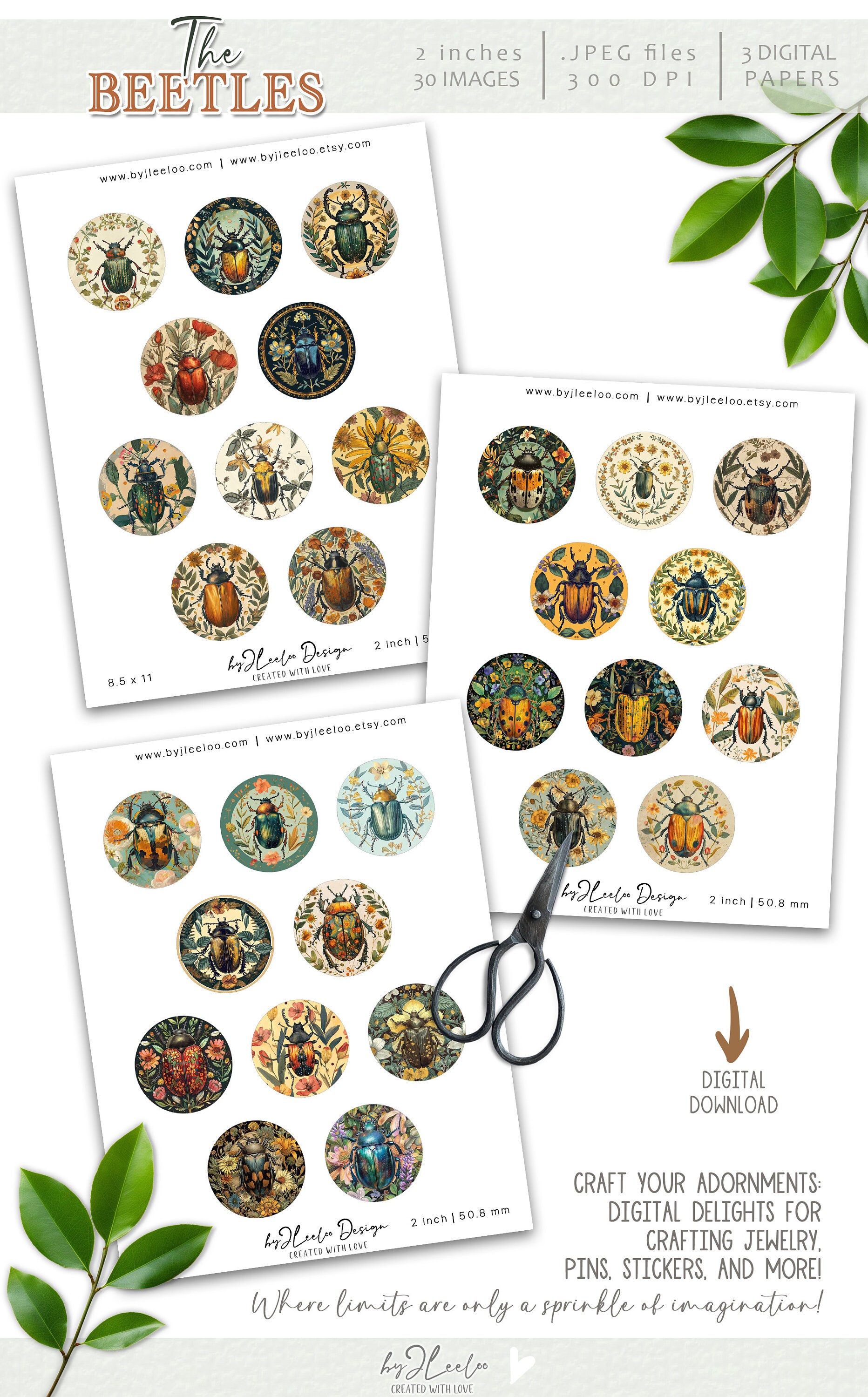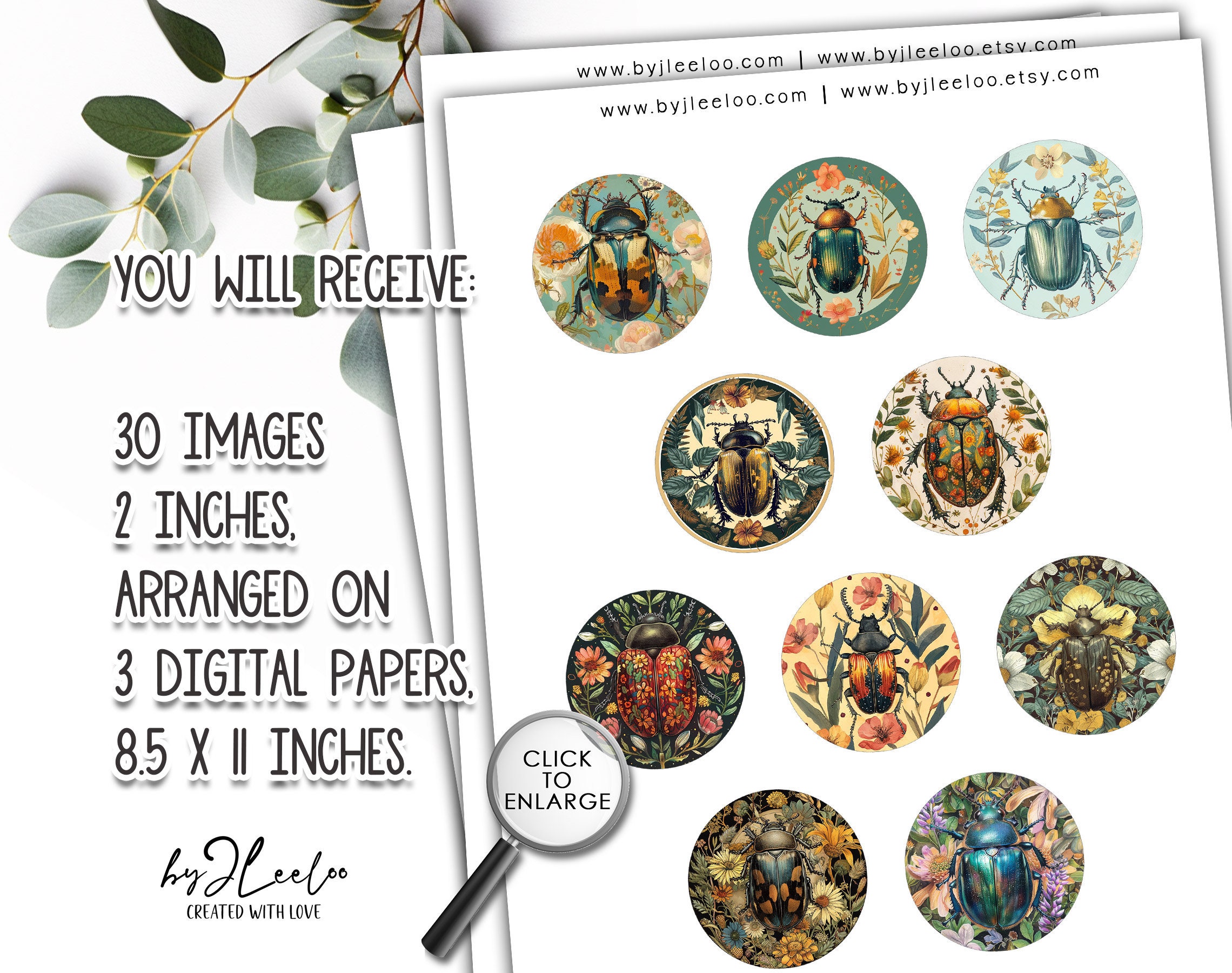 THE BEETLES 2 inch printable | supplies circle pendant cabochon charm sticker pin keychain | digital insect illustration | DiY art | tn785