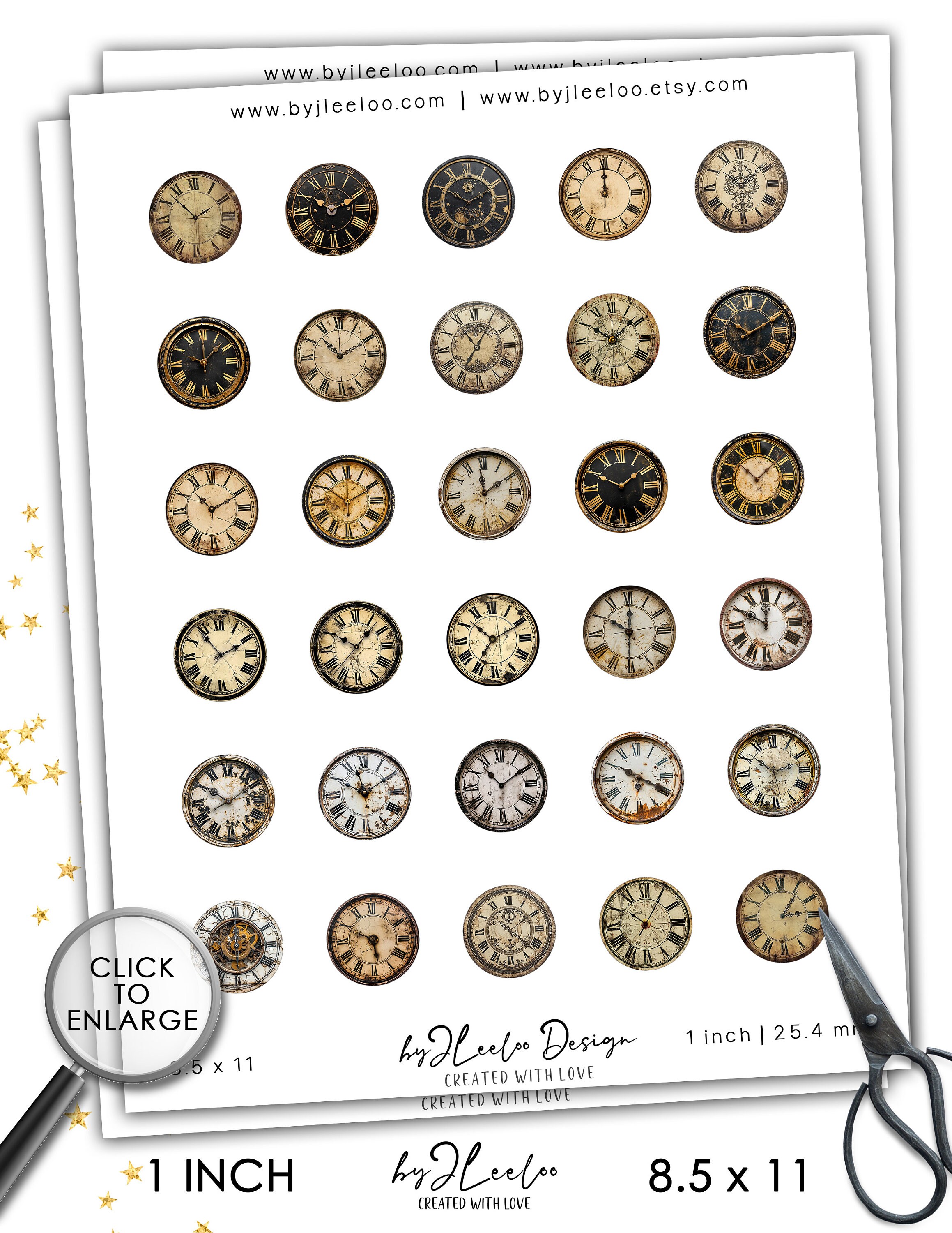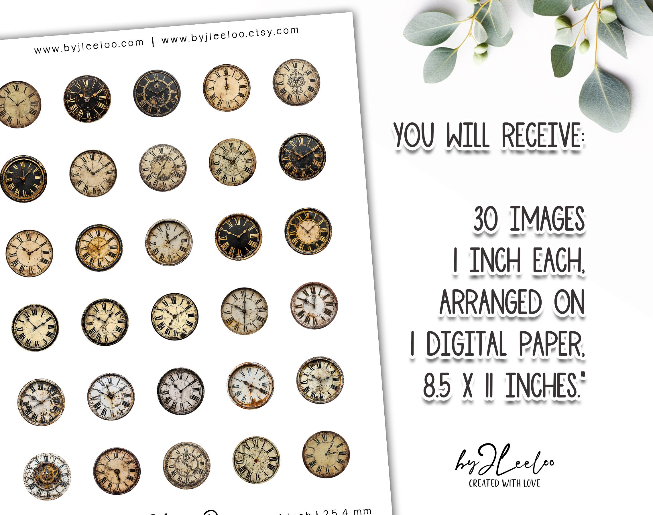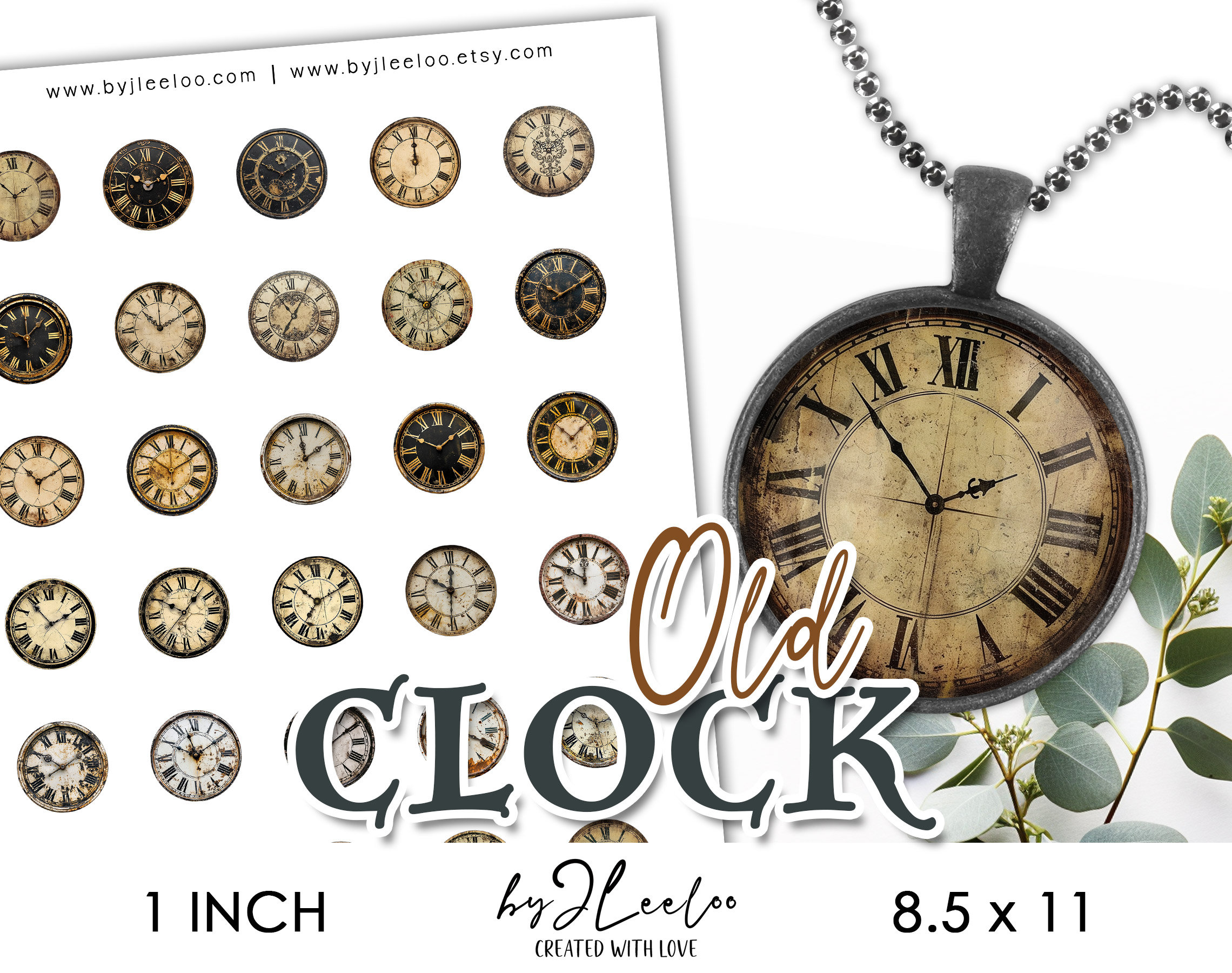 OLD CLOCK 1 inch printable | Vintage supplies for round resin pendants charm pin magnet sticker | clock face digital Ephemera grunge | tn770