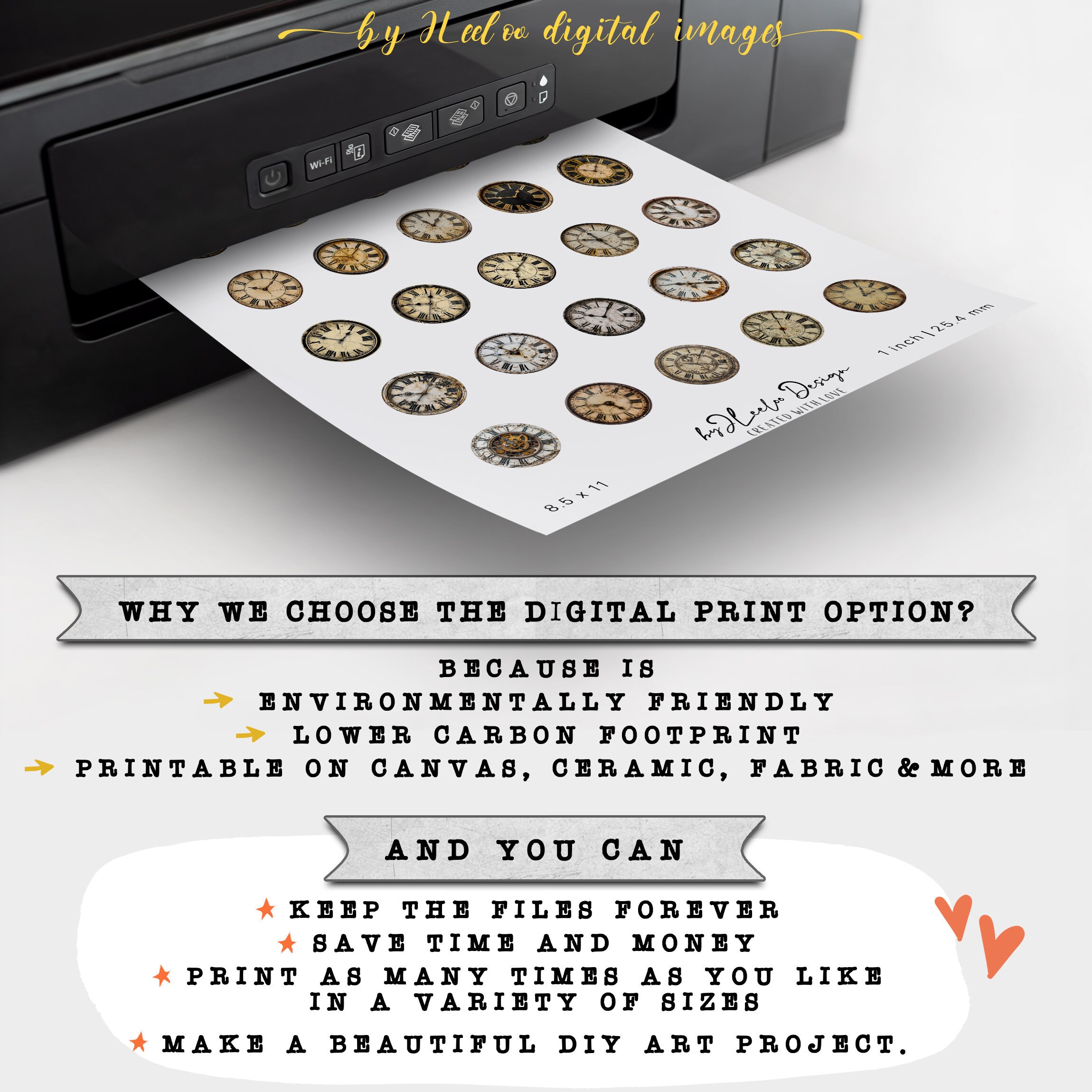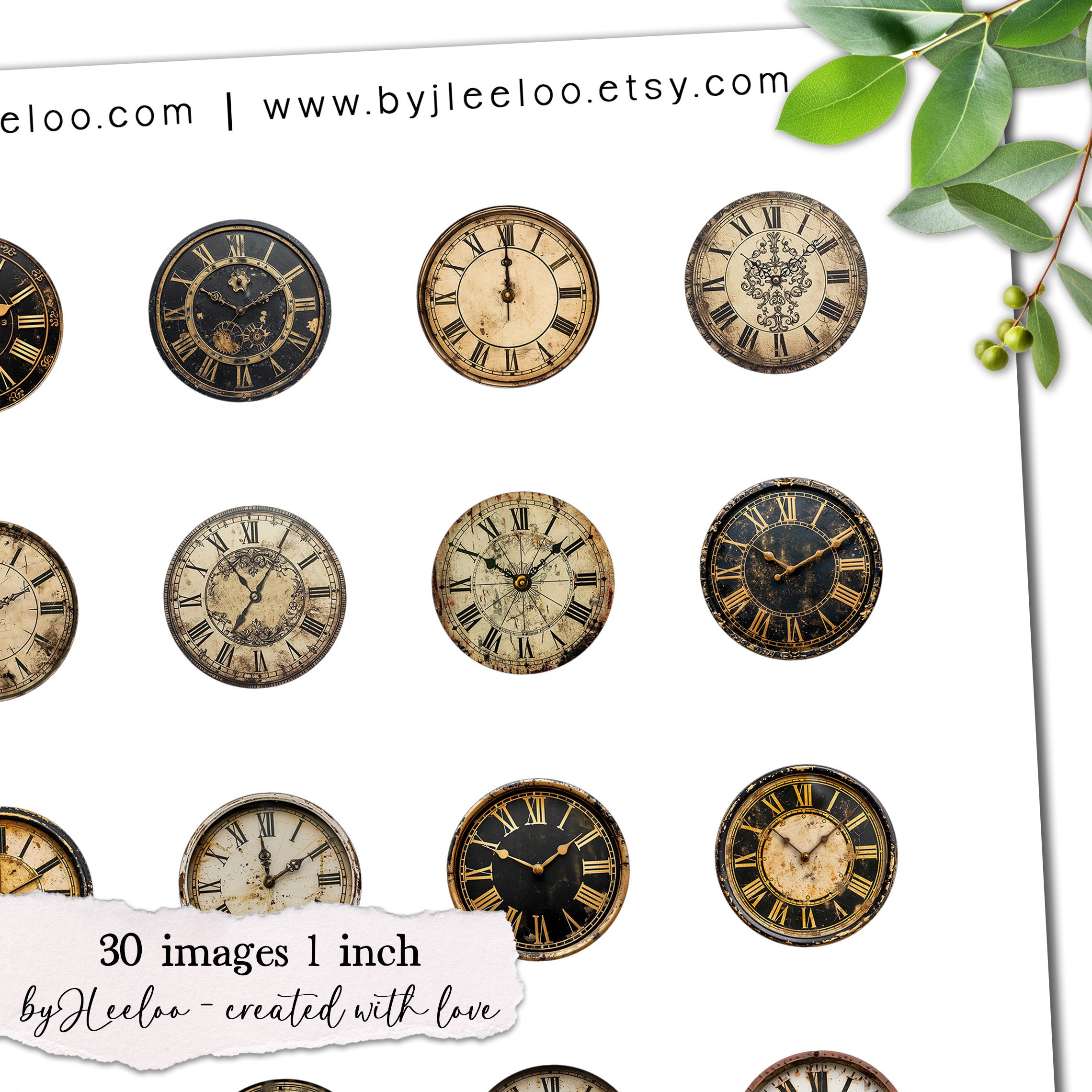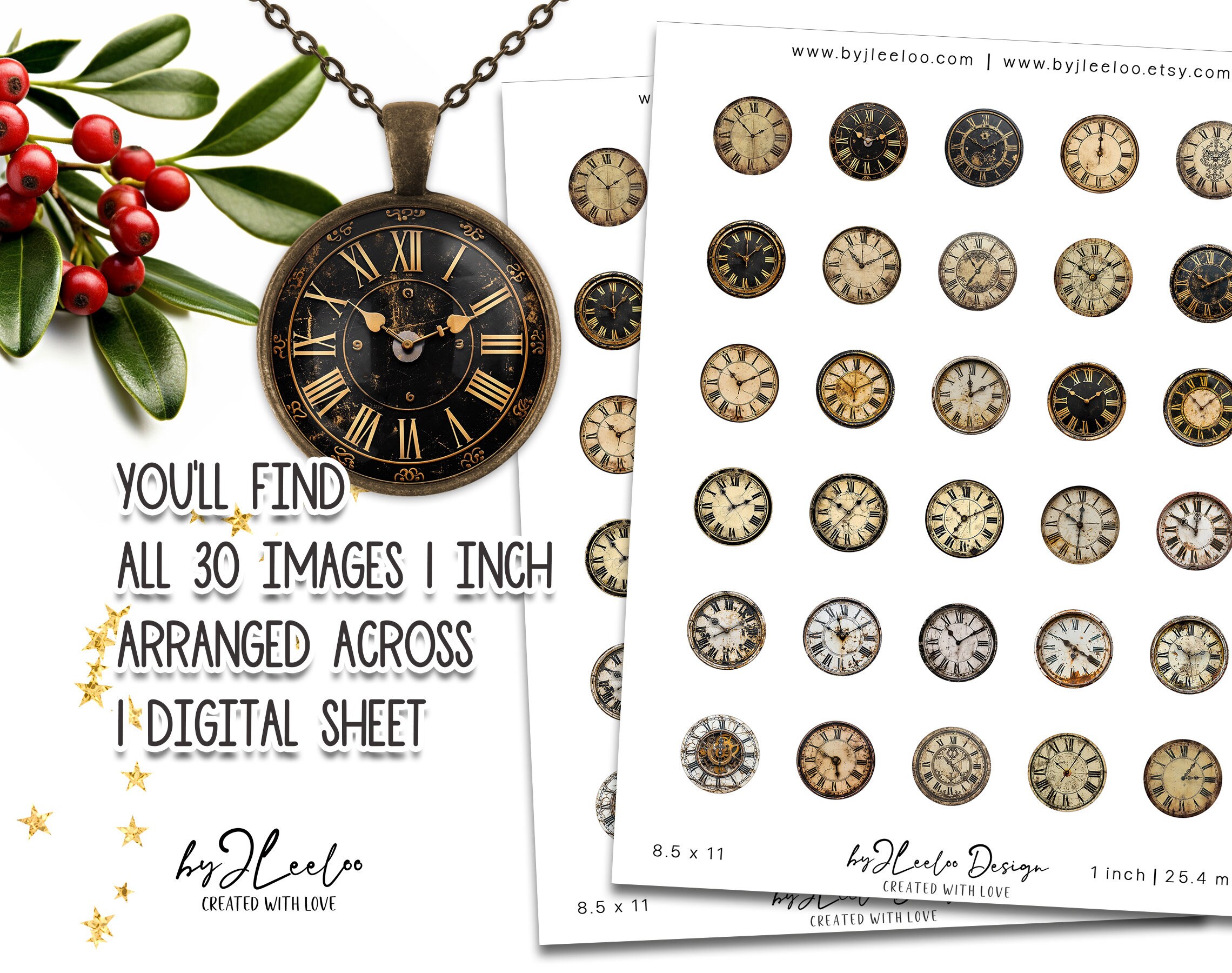 OLD CLOCK 1 inch printable | Vintage supplies for round resin pendants charm pin magnet sticker | clock face digital Ephemera grunge | tn770