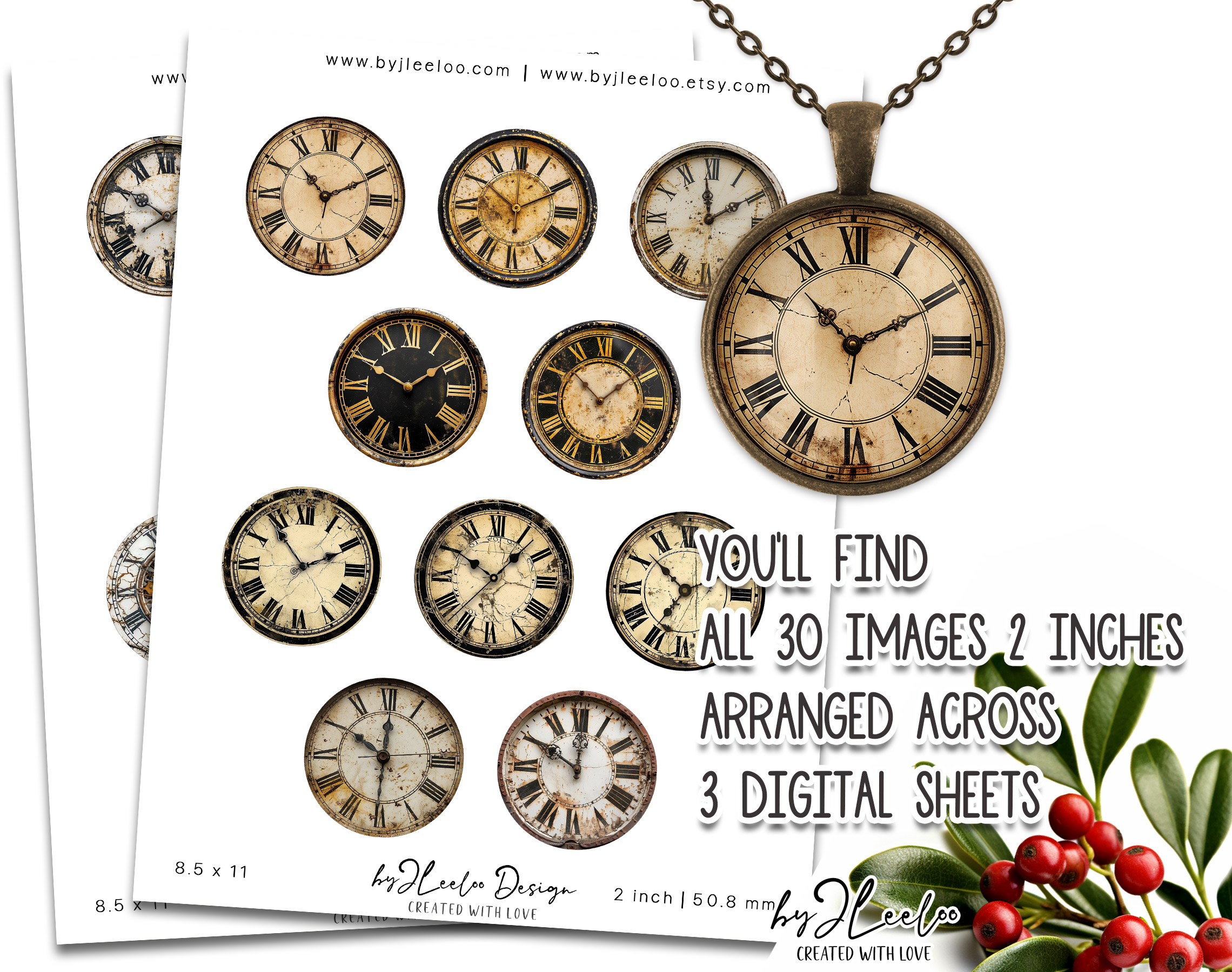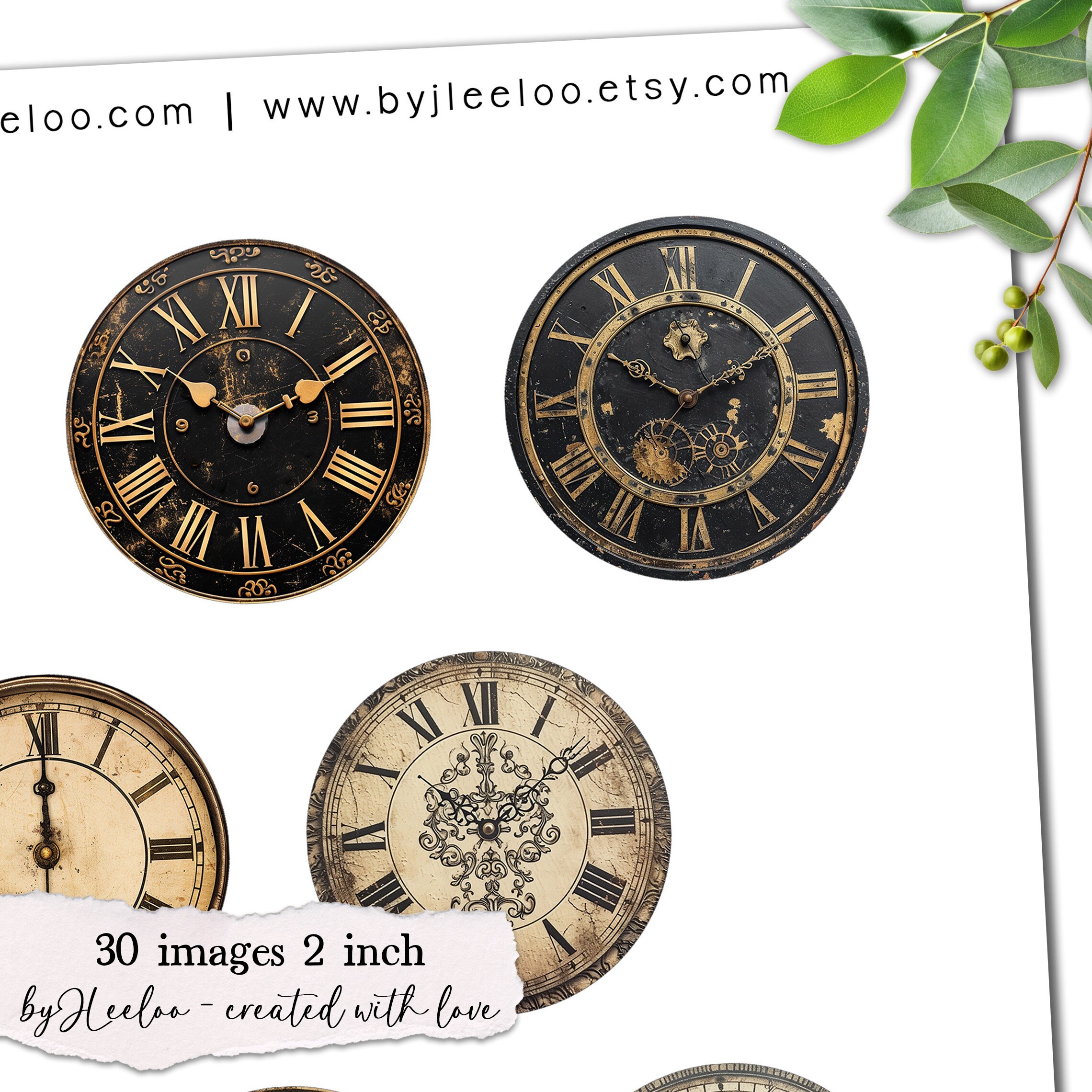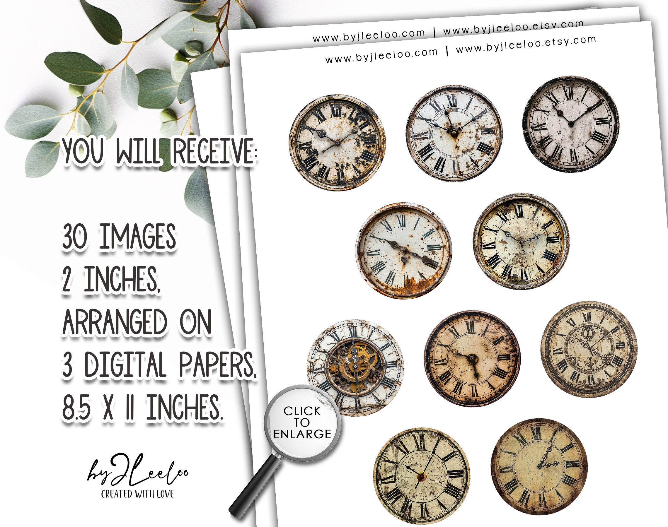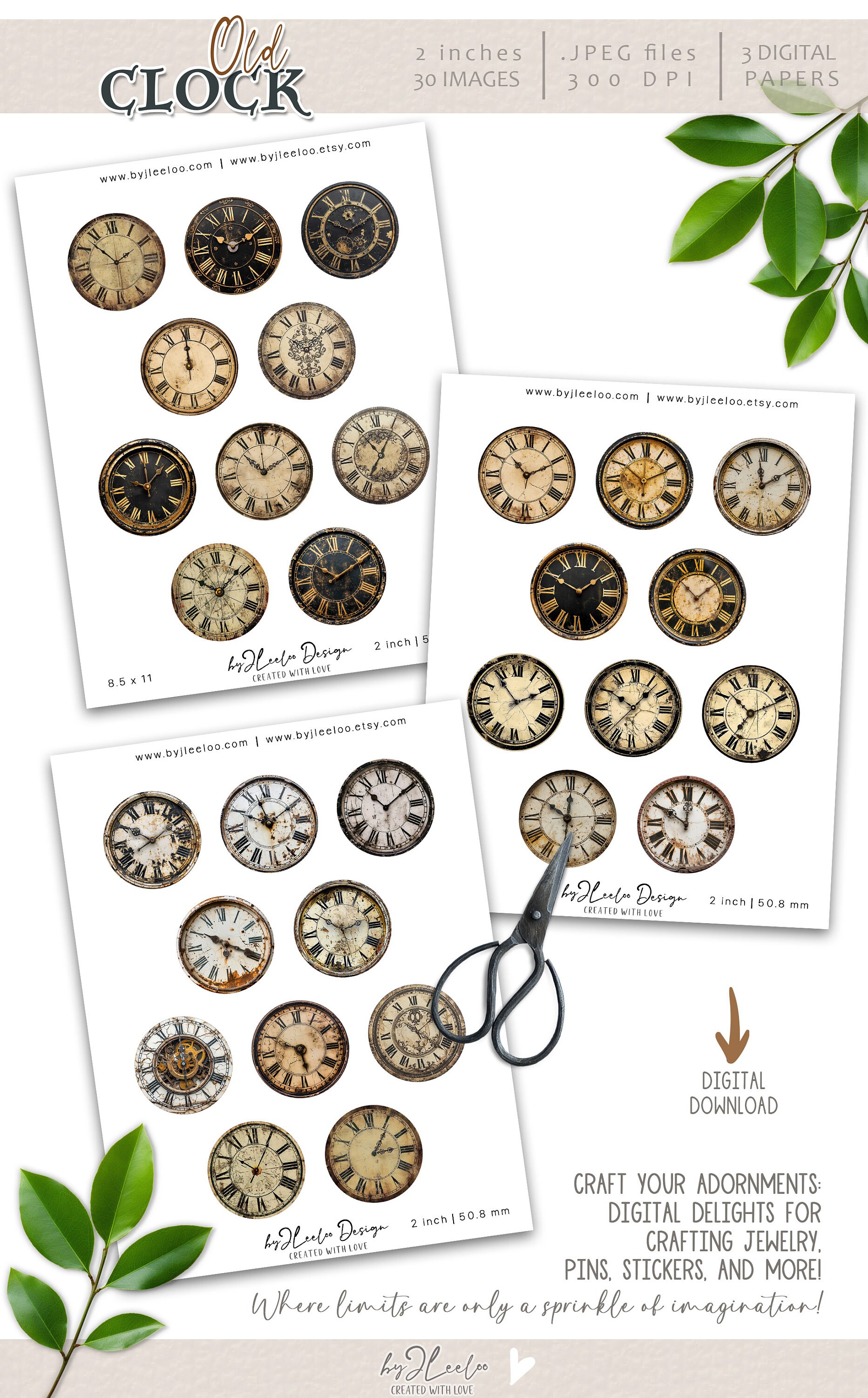 OLD CLOCK 2 inch printable | Vintage supplies round pins, mirror, magnet, Junk Journal, CU, Digital Art, Digital Download ephemera | tn772
