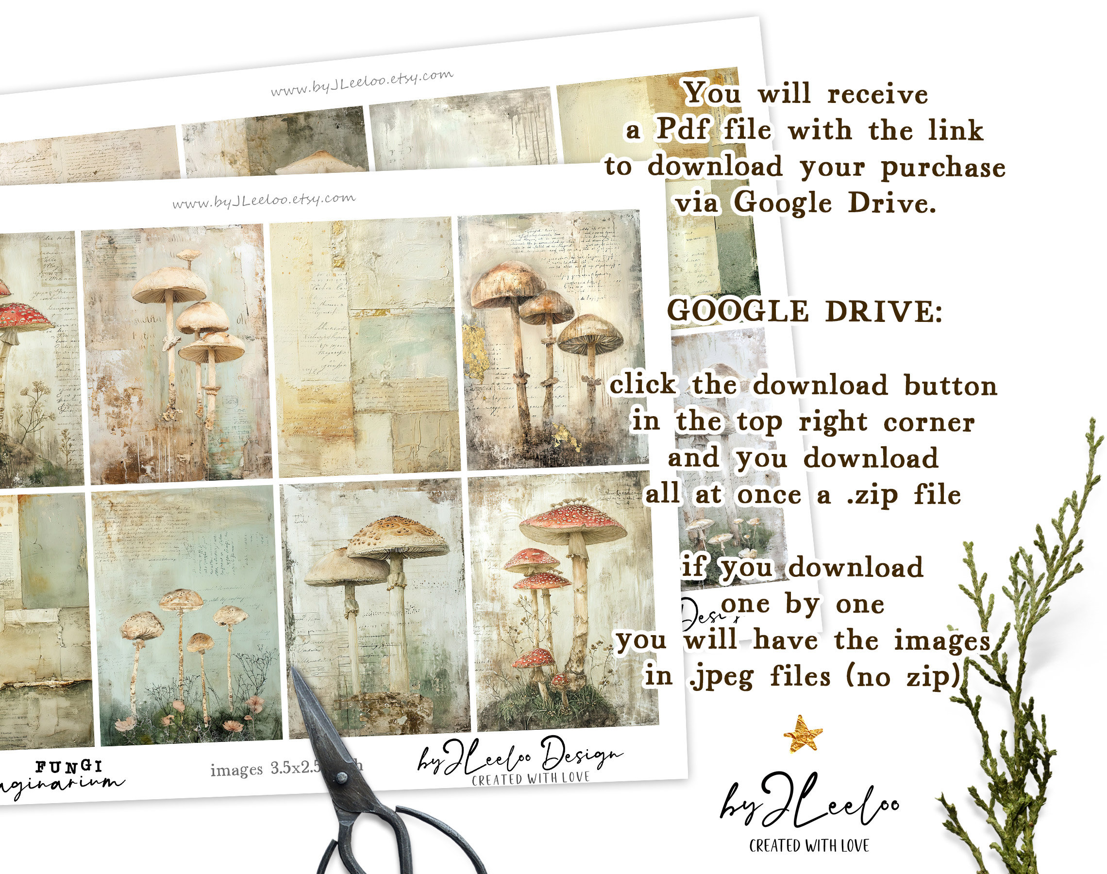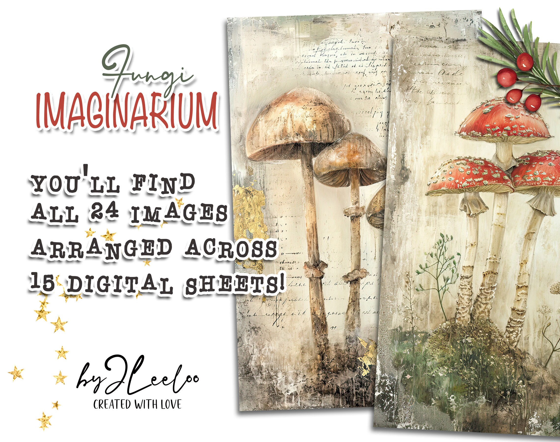 FUNGI IMAGINARIUM half pages | Botanical junk journal Mixed Media Aceo Vintage | Digital art collage paper card making collage diary | pp714