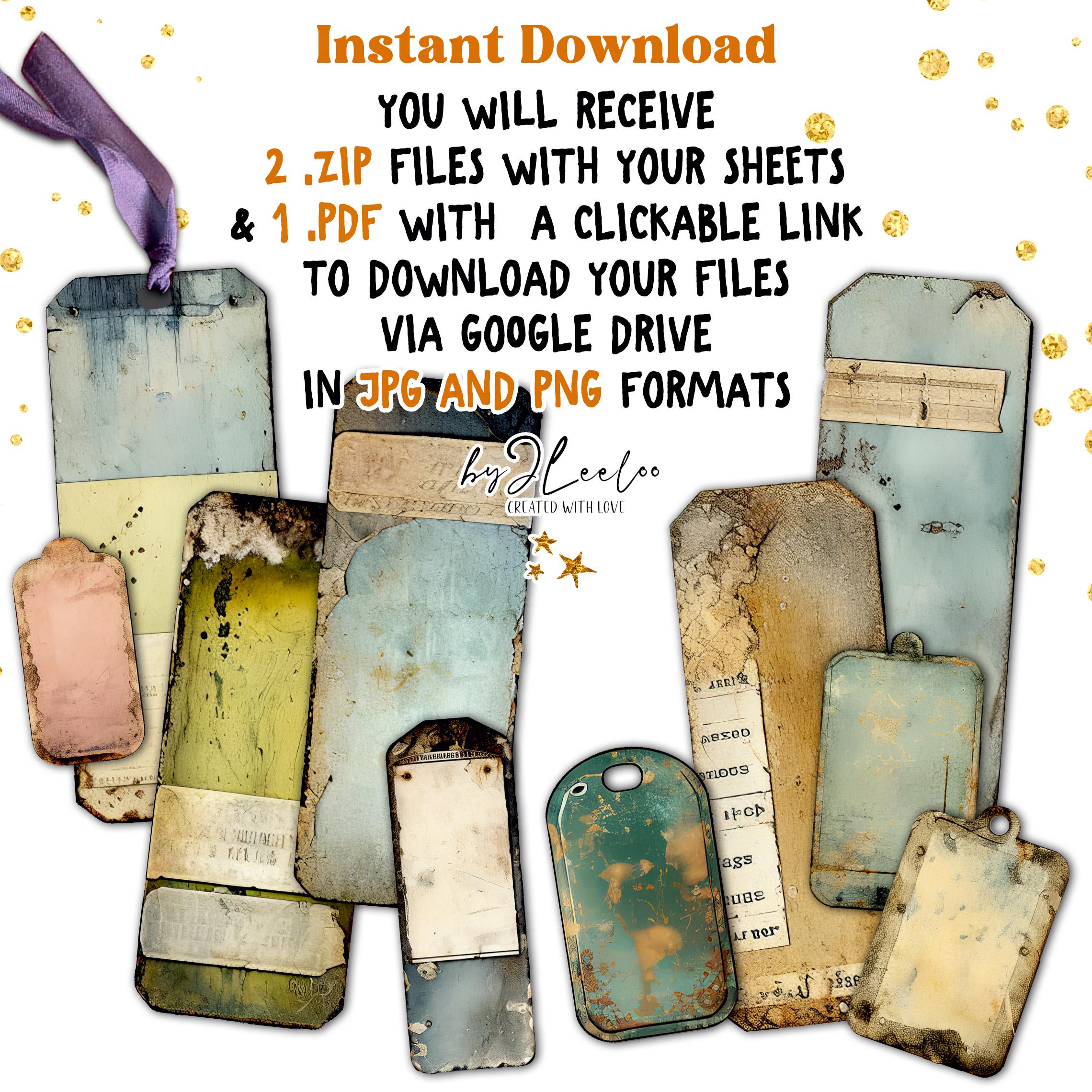 From rusty edges to faded colors, every label tells a little story of its own. Whether you’re layering in a junk journal, adding grit to a steampunk project, or just love that perfectly imperfect vintage vibe, this set has you covered.