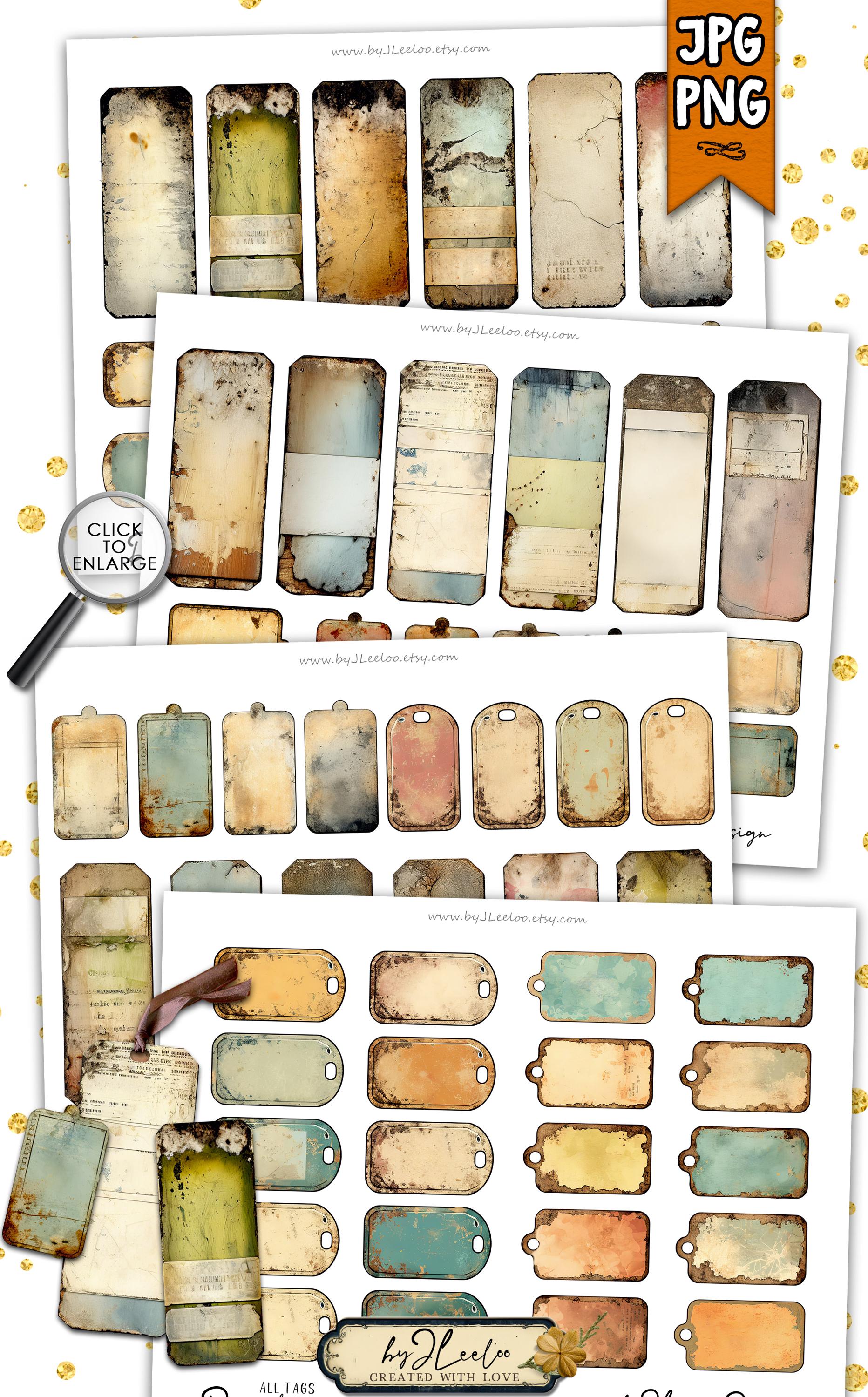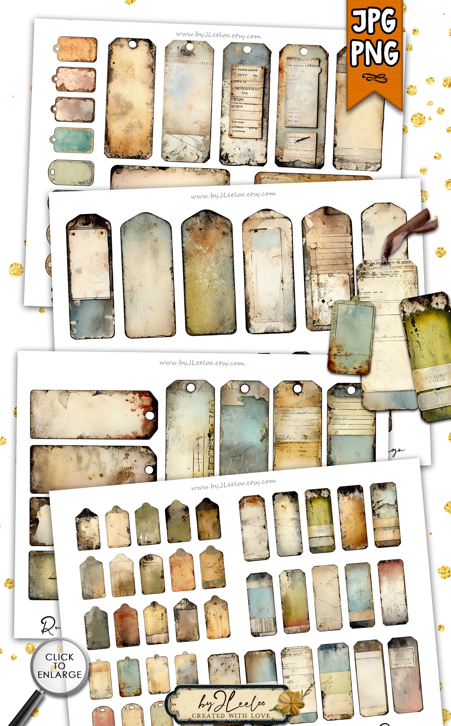 ALL TAGS RUINED grungy vintage labels | industrial steampunk tag ephemera for junk journals | masculine digital collage supplies | tl273
