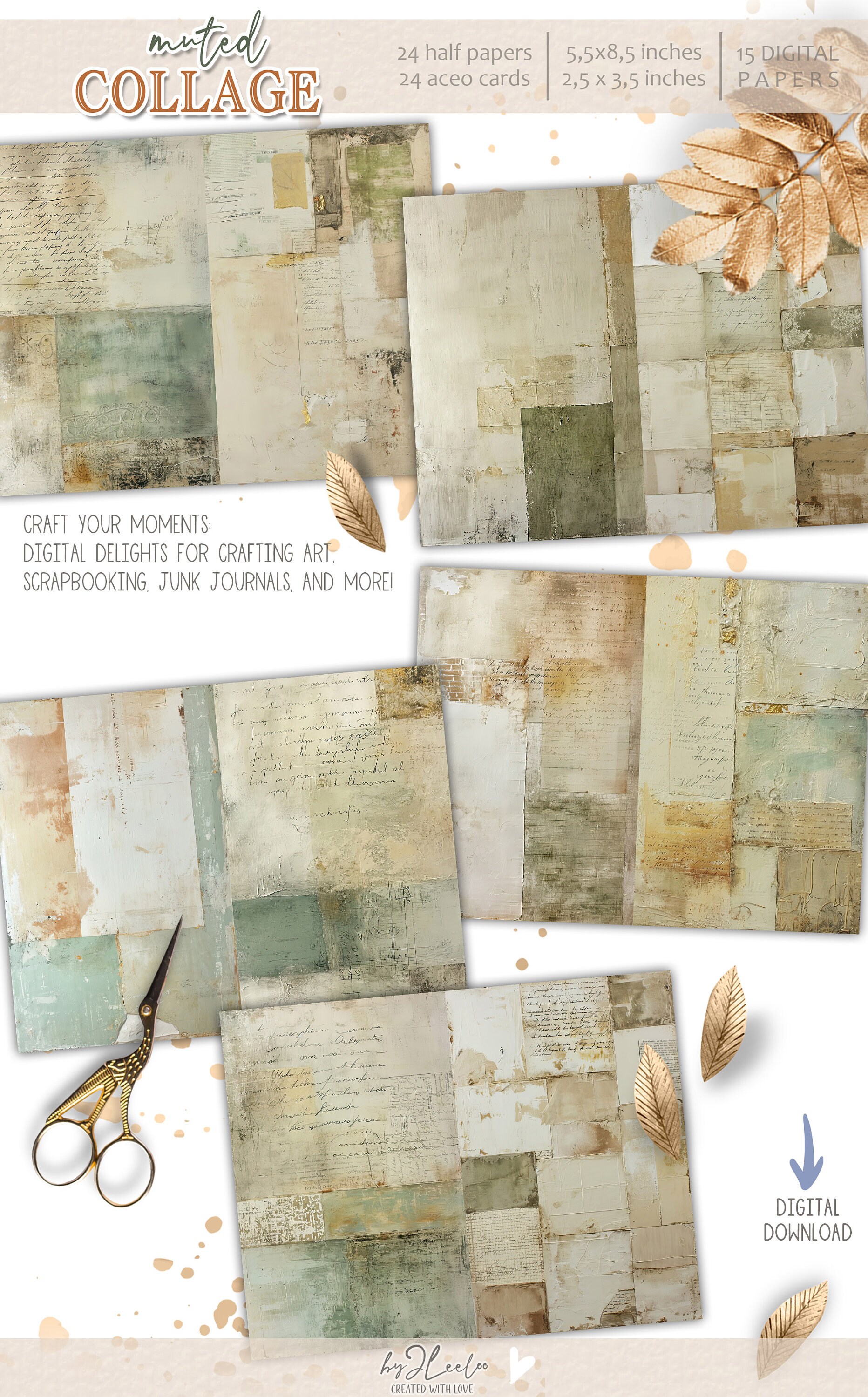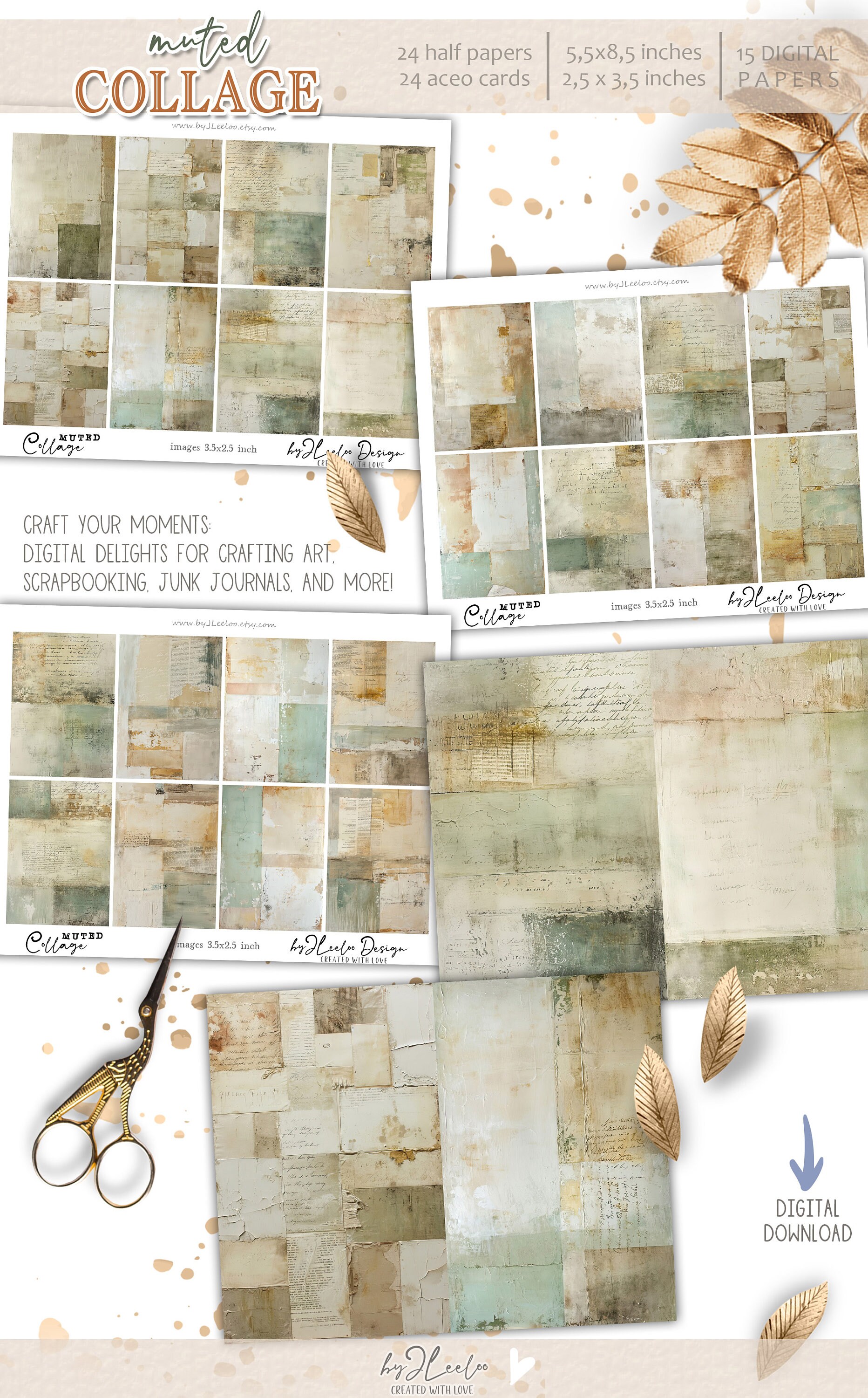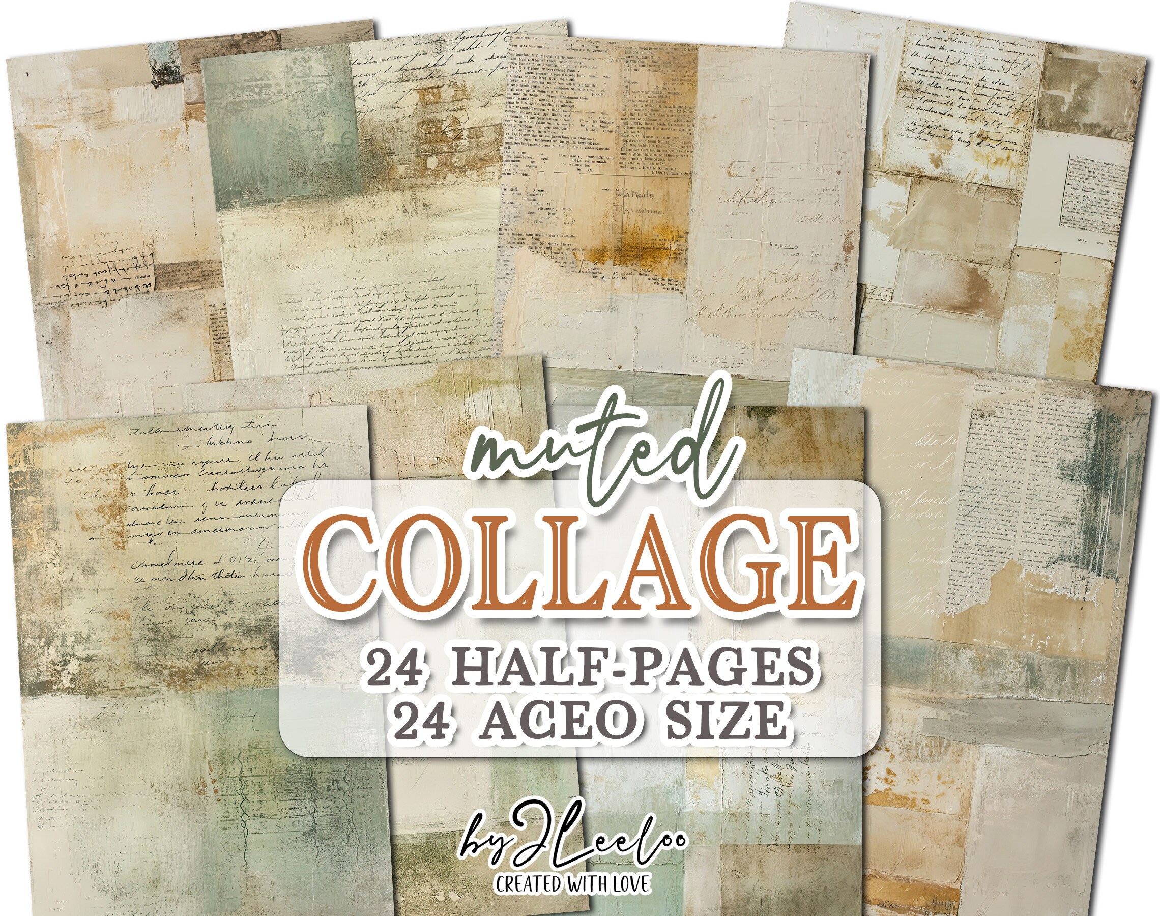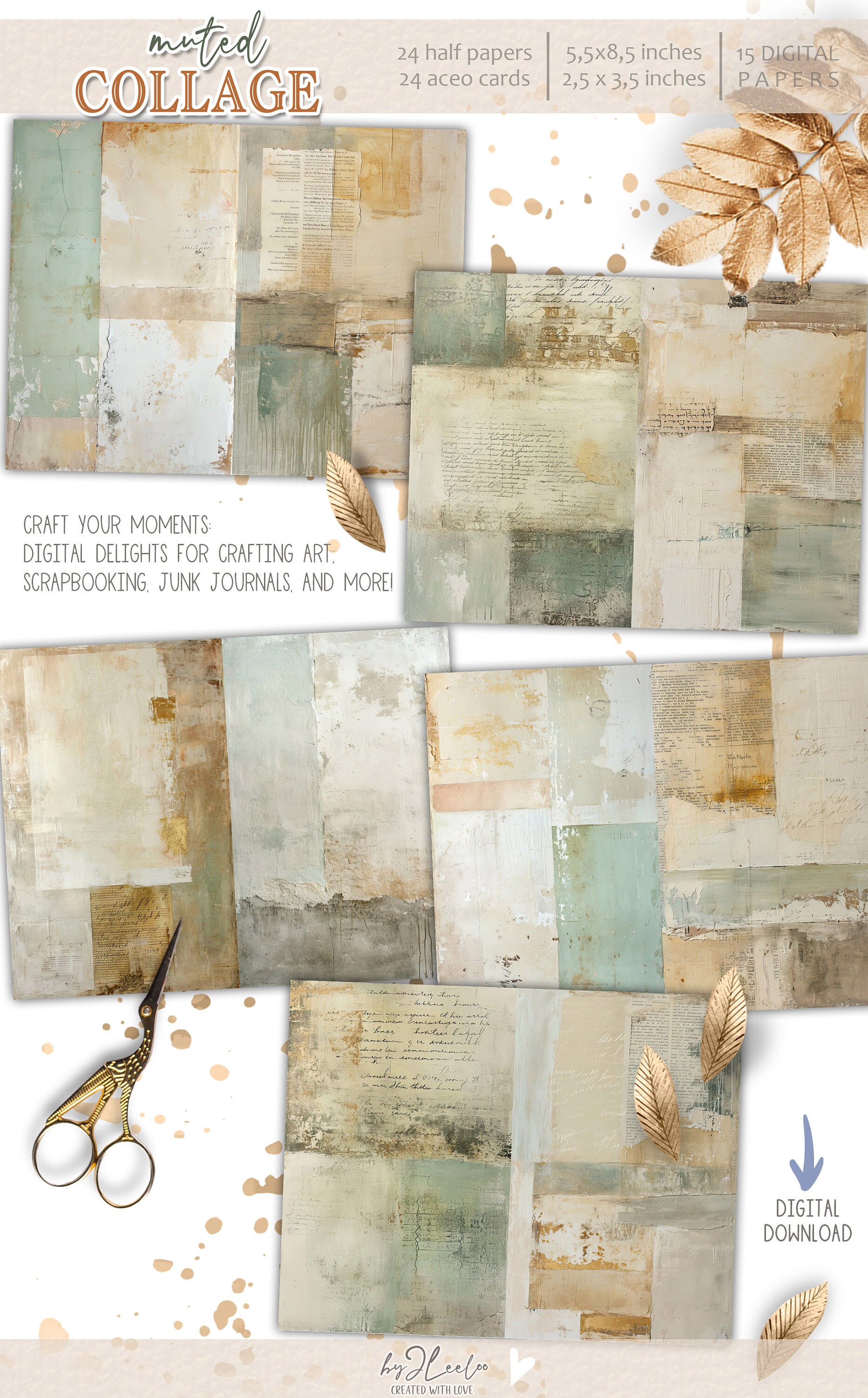 MUTED COLLAGE half pages printable | junk journal Mixed Media supplies | Distressed grunge dirty paper card making collage diary | pp715